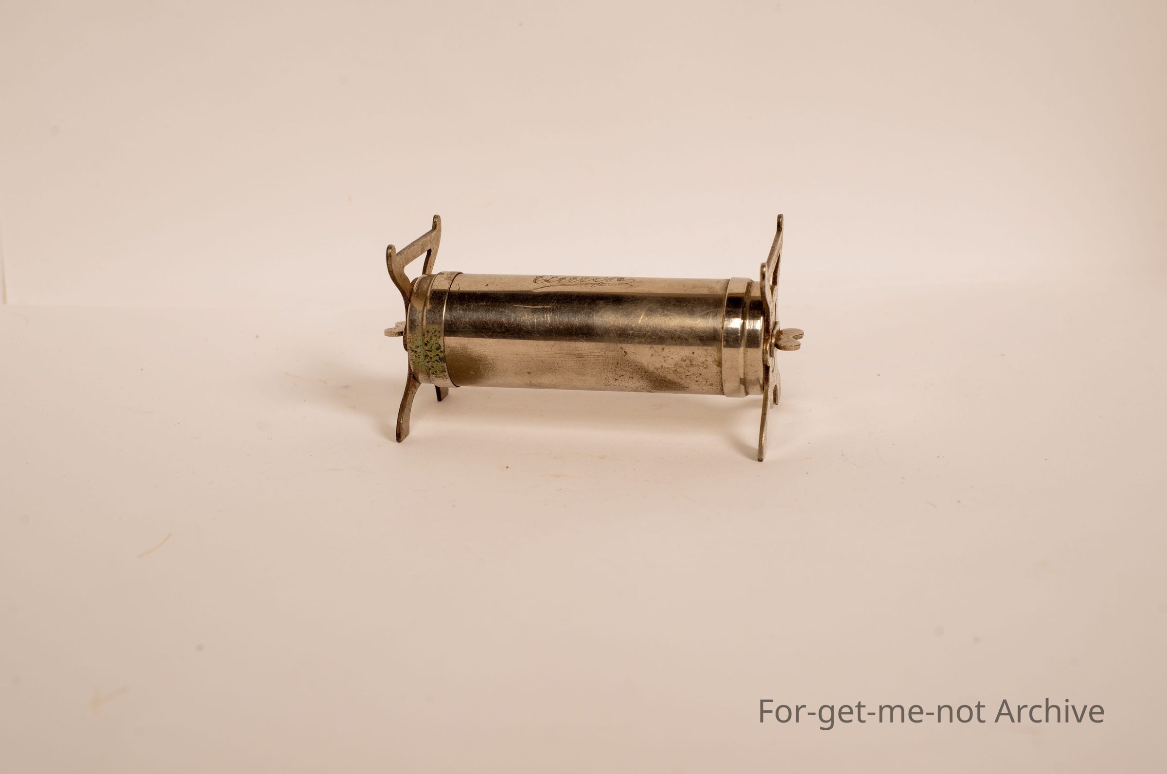Is a chrome plated, possibly a burner. With an engraved quick Maybe ,called Wheels Original Quick. Possibly heat something like a hair curler ??