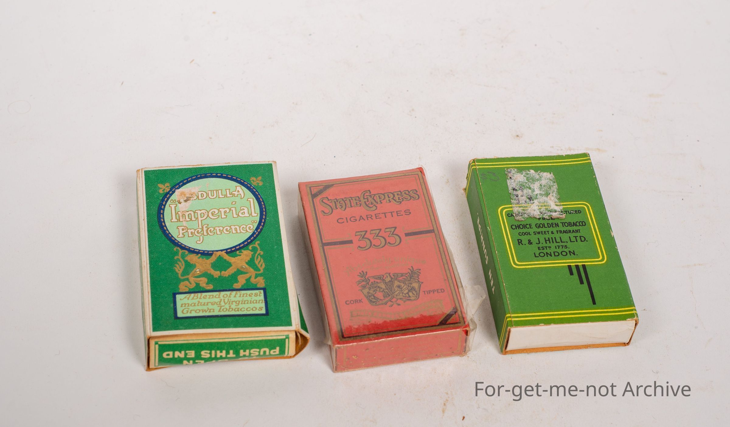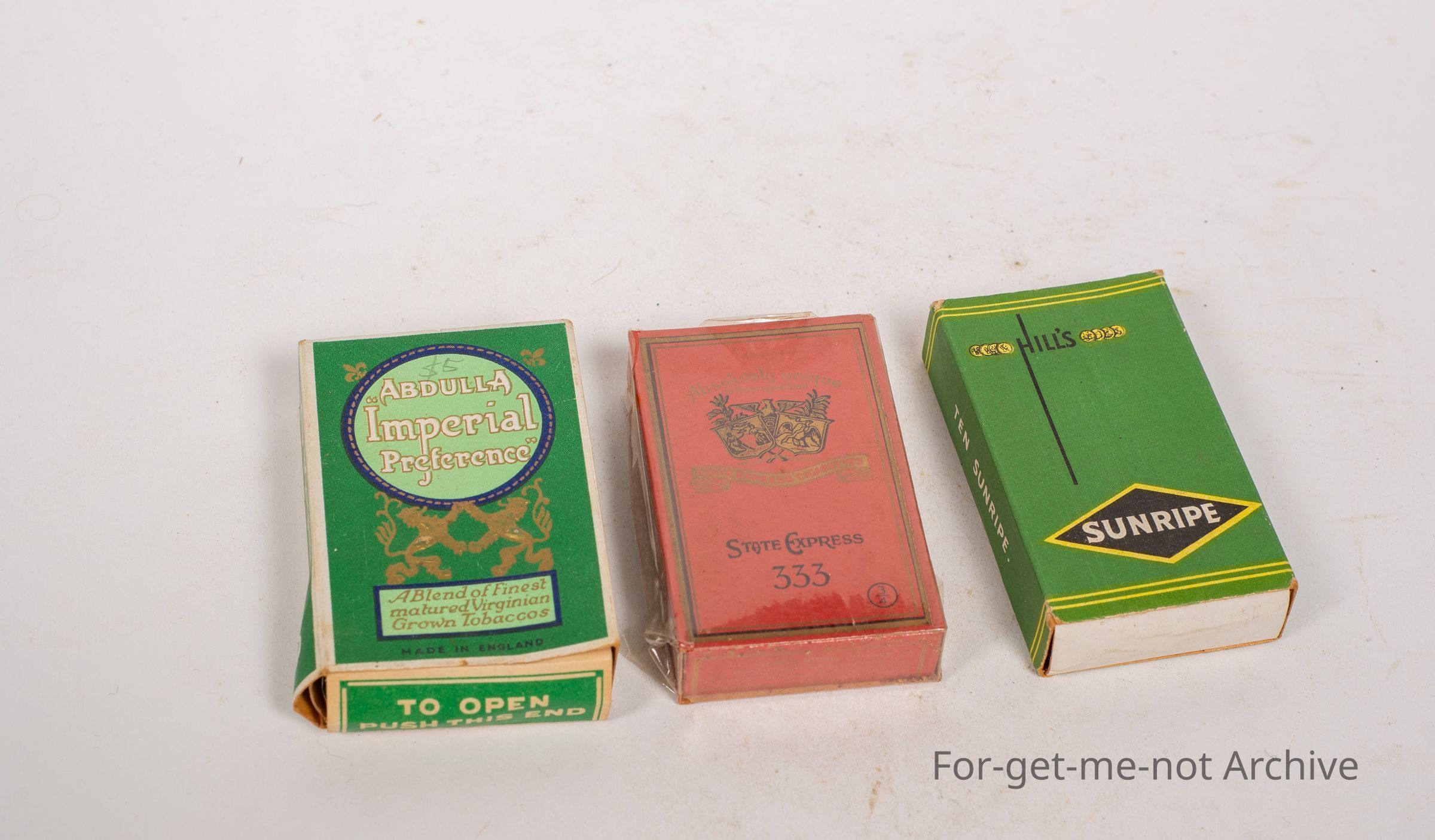 Another group of 3. Cardboard cigarette boxes, Sunripe, State Express, Abdallah.