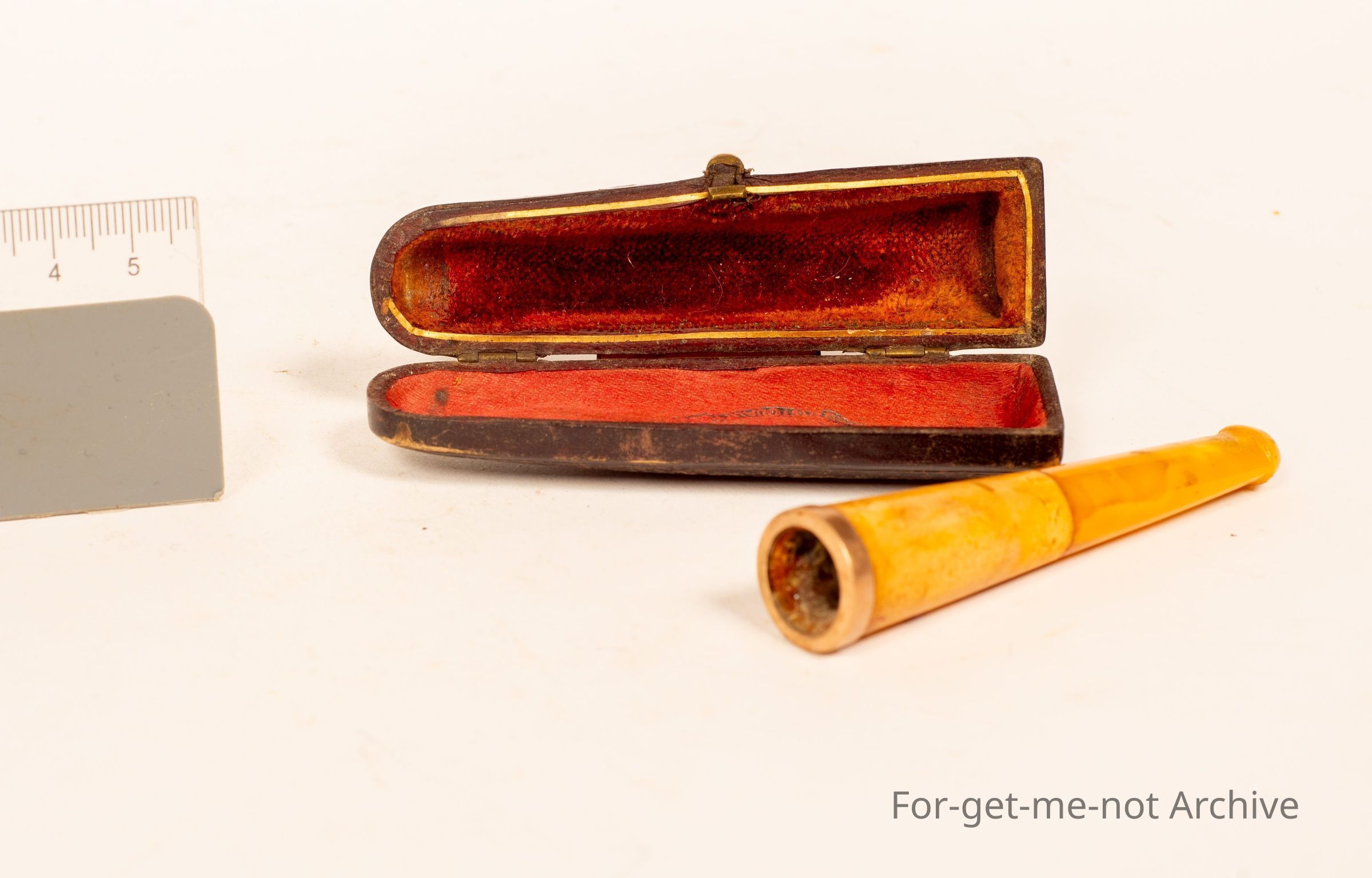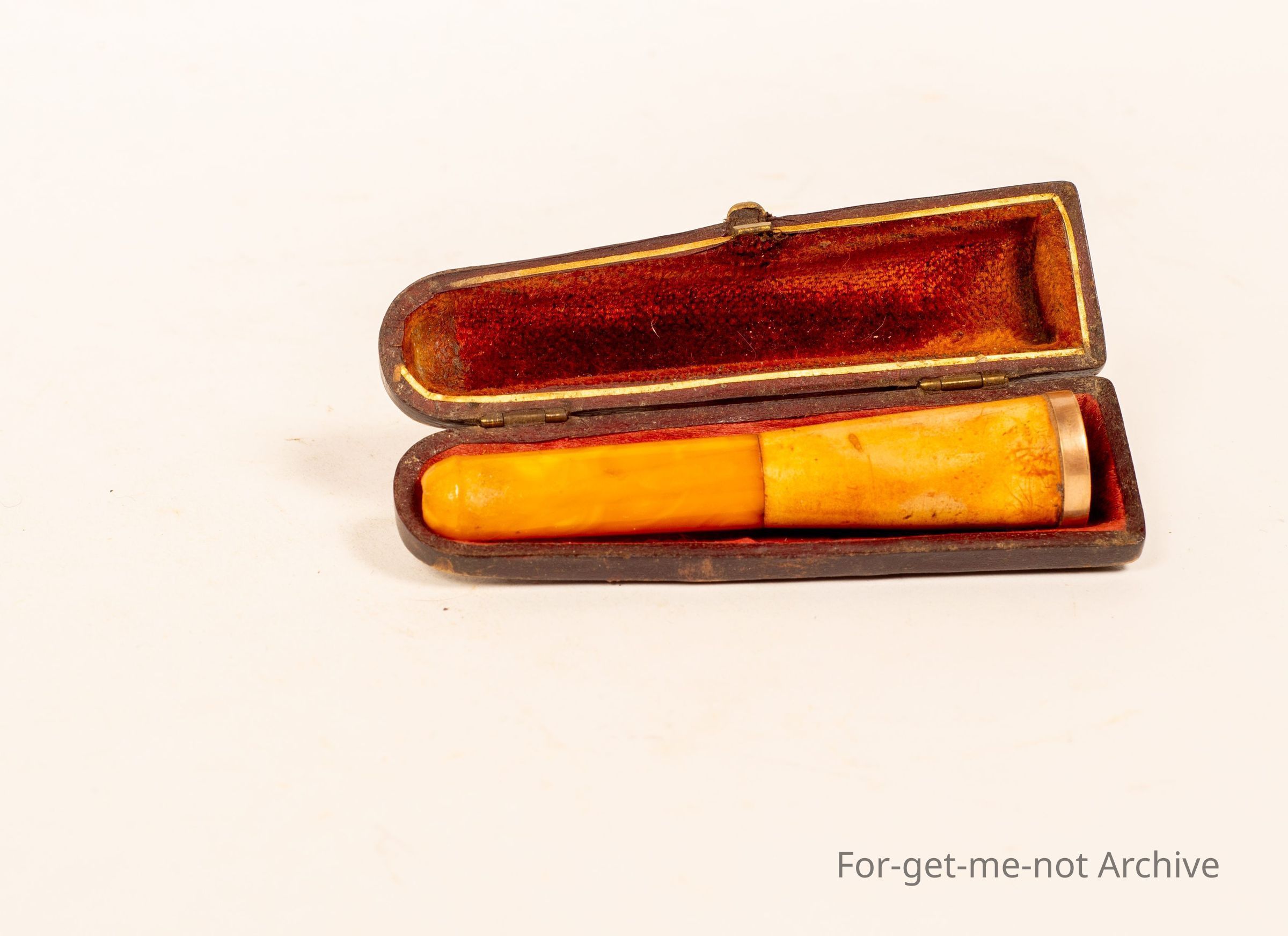 Small cigarette holder, ebony and amber and at least been a beautiful thing in its day.