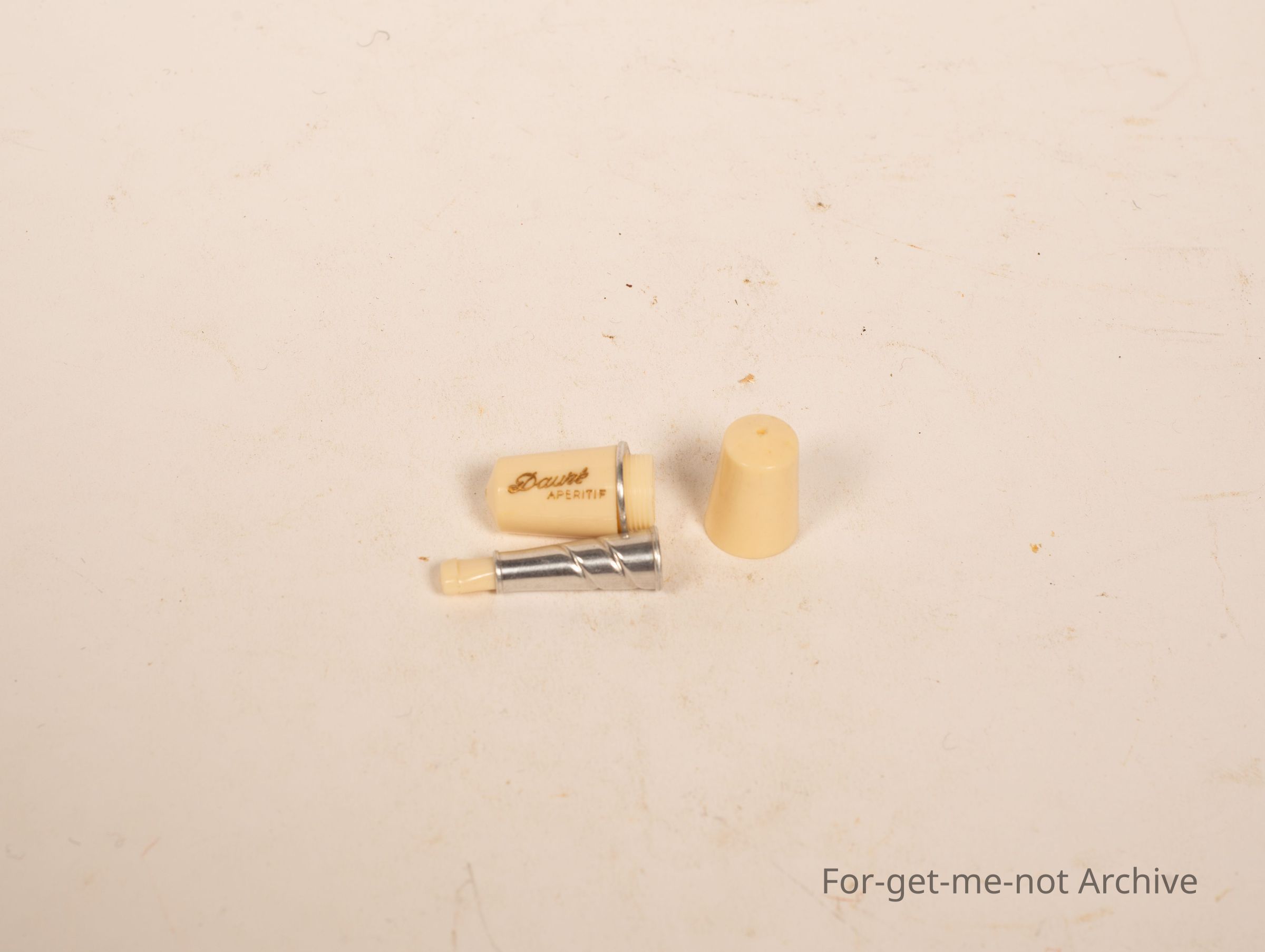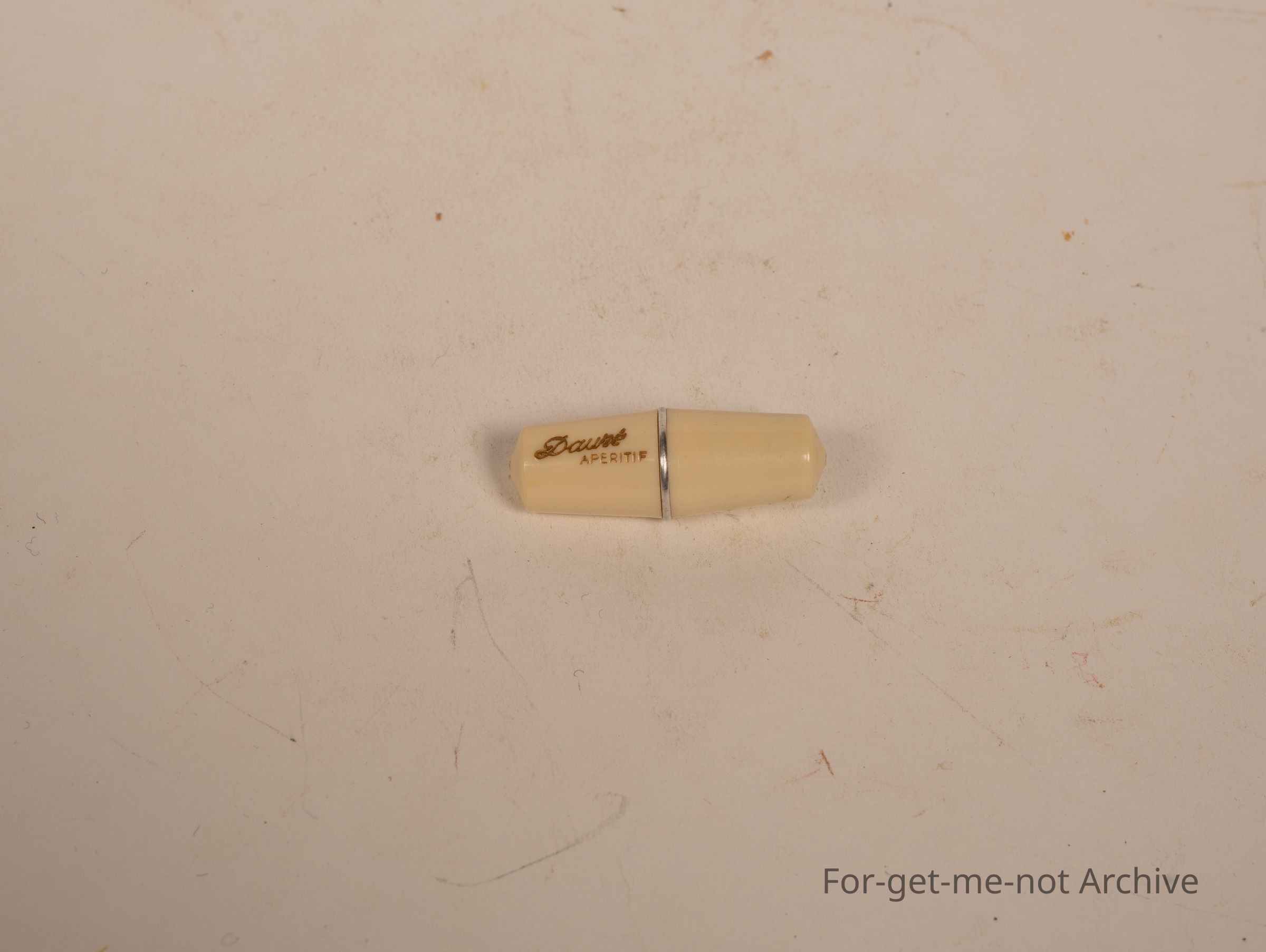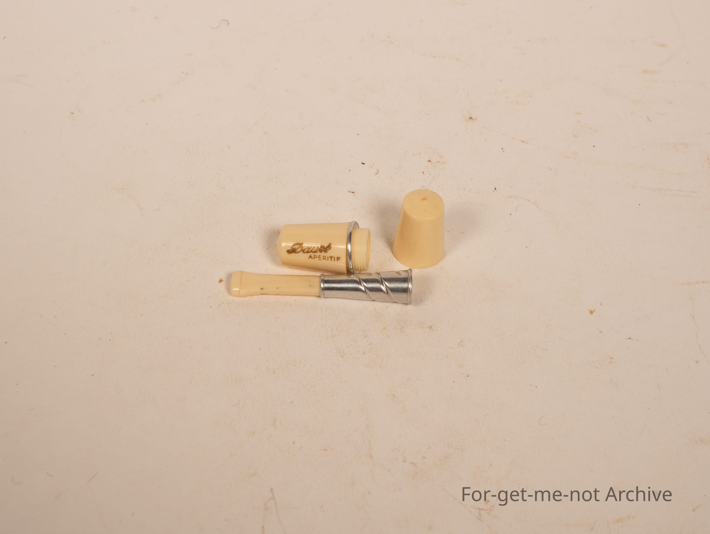 Is a very small plastic container. Maybe French, when you unscrew it, it holds a lady cigarette holder. Very dainty, a quaint little piece.