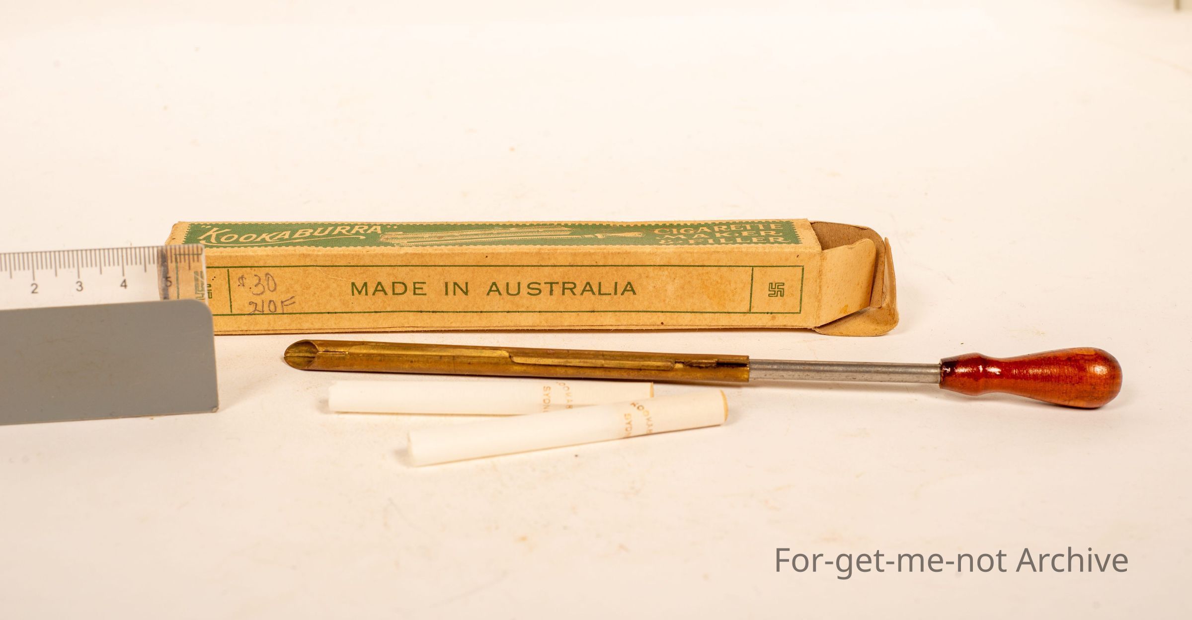 Two cigarette sleeves ready to put through a cigarette machine that puts the tobacco into the sleeve. These ones are made in Sydney.