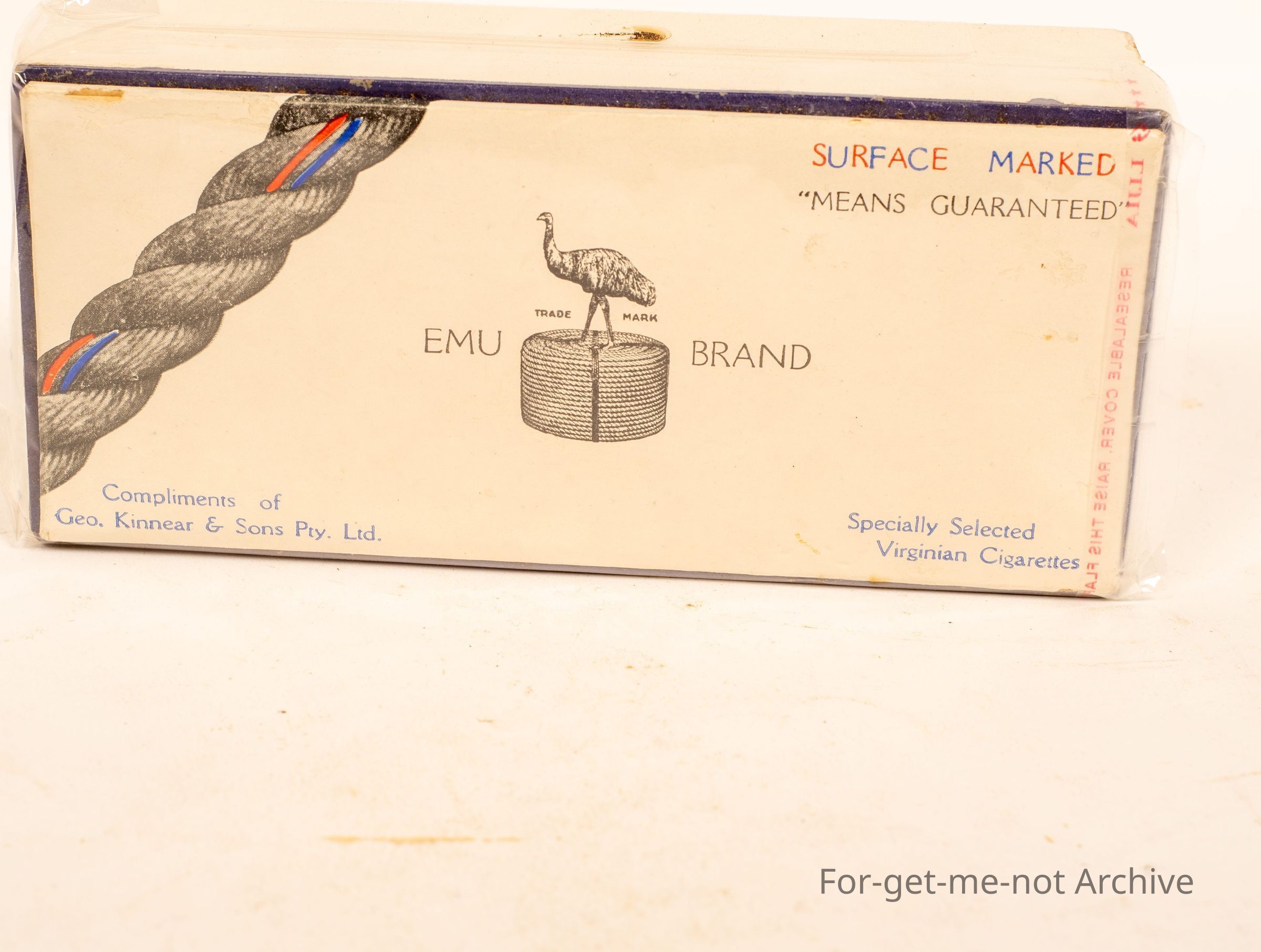 Is a packet of cigarettes, compliments of George Kinnear and Sons who were rope makers. These are advertising for a new brand, specially selected Virginian Cigarettes.