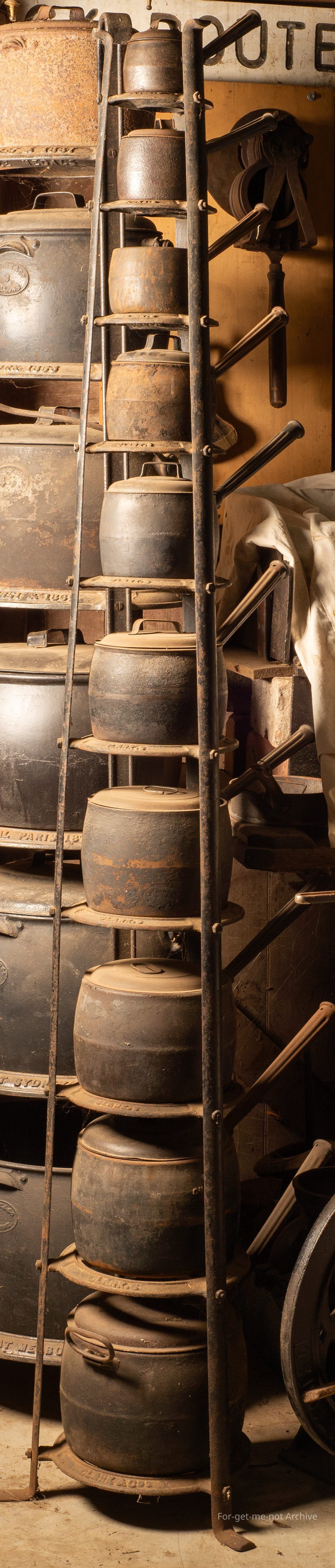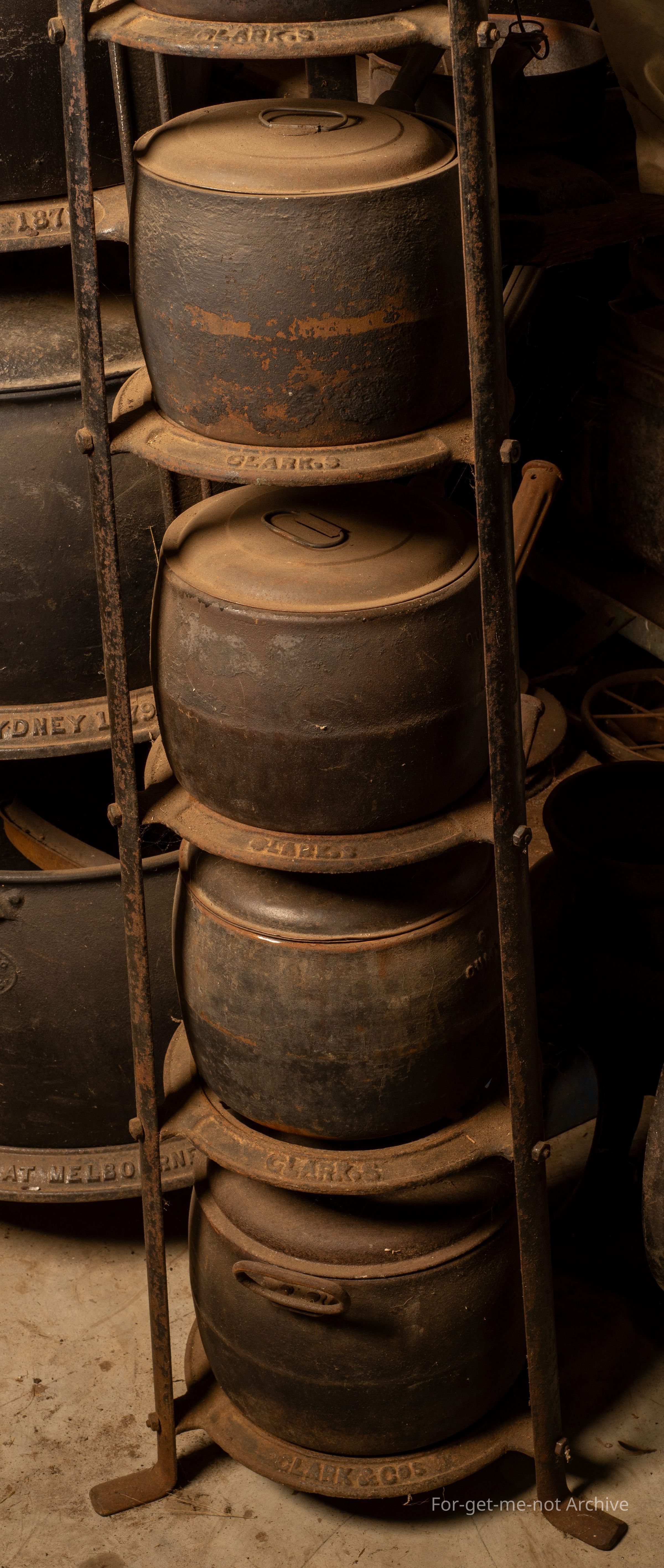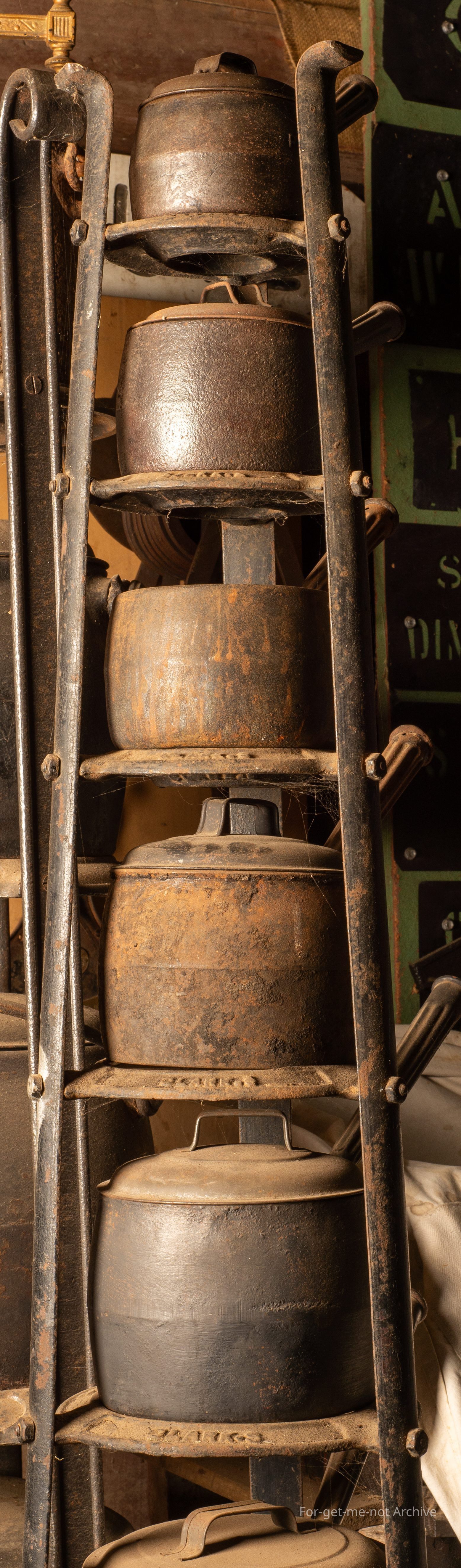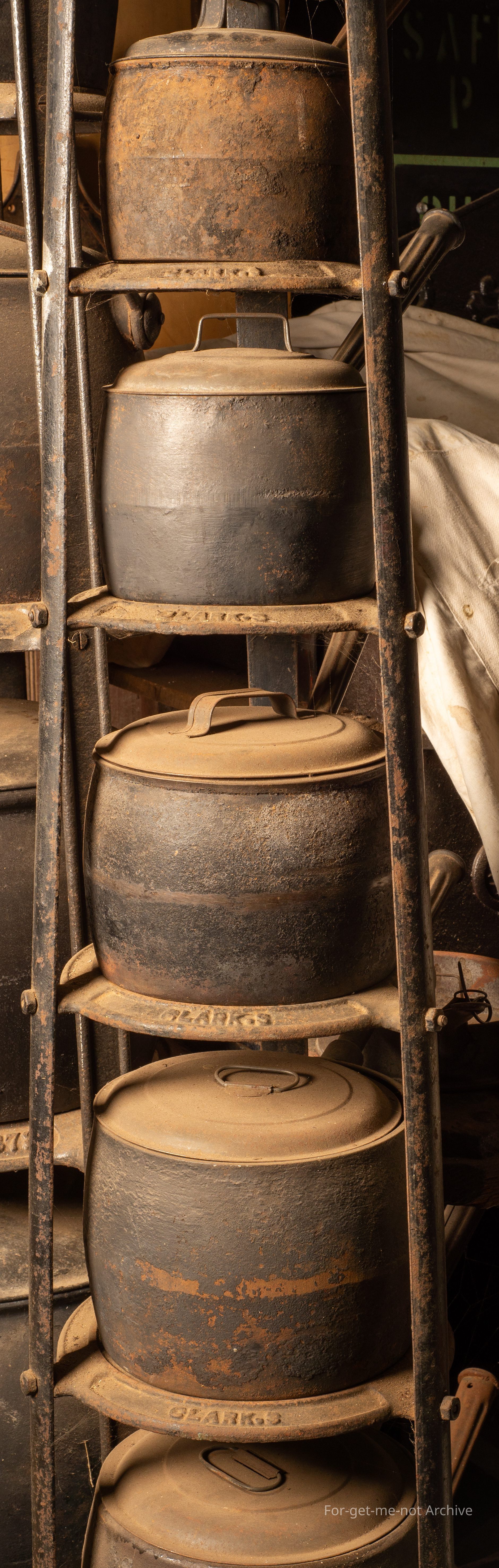 this is a Clark, saucepan stand from top to bottom with original Clark Pots of all the right sizes and very good condition with the description of each size on each ring from top to bottom.Collection