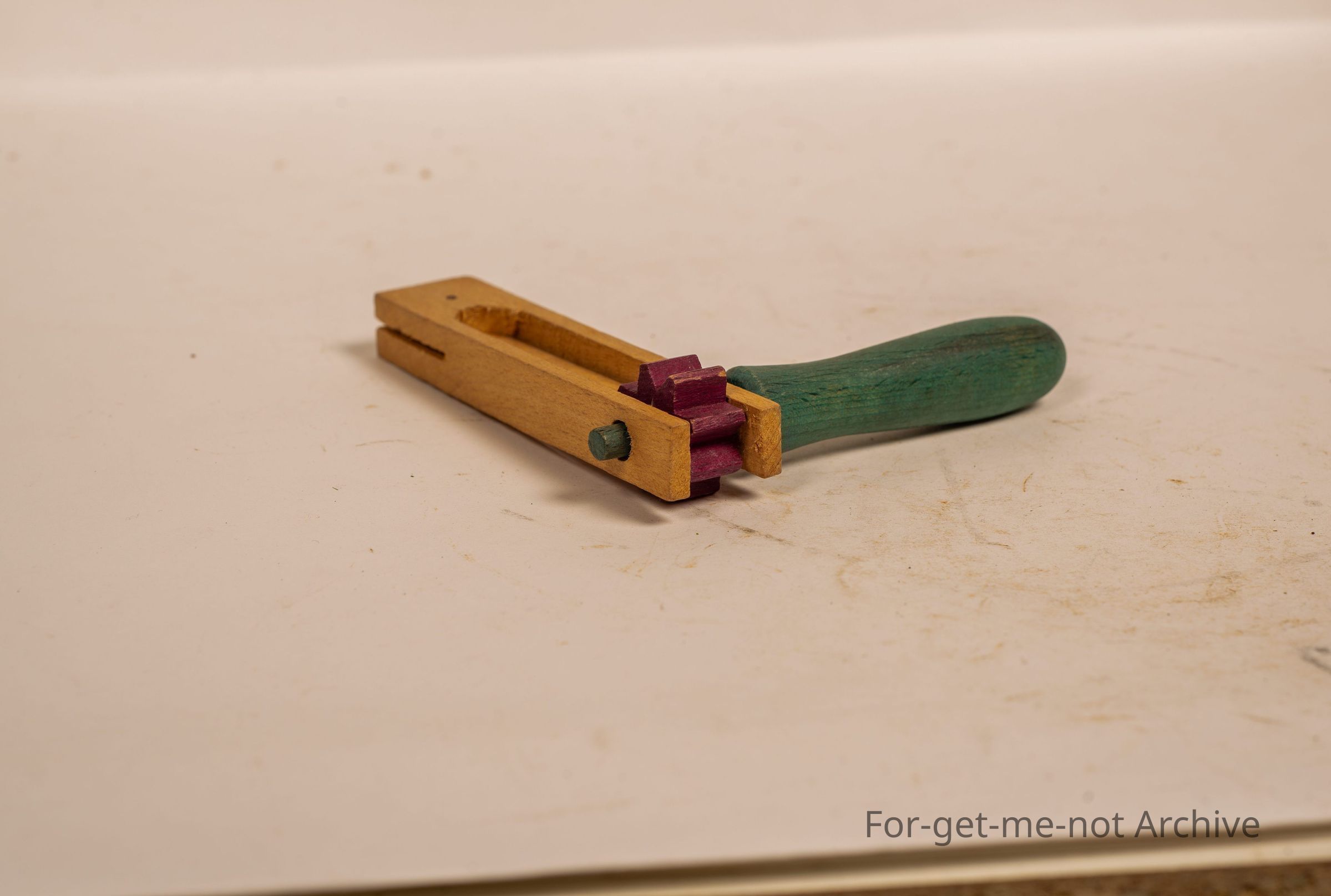 Is a small size, clicker used by kids, possibly a show bag piece.