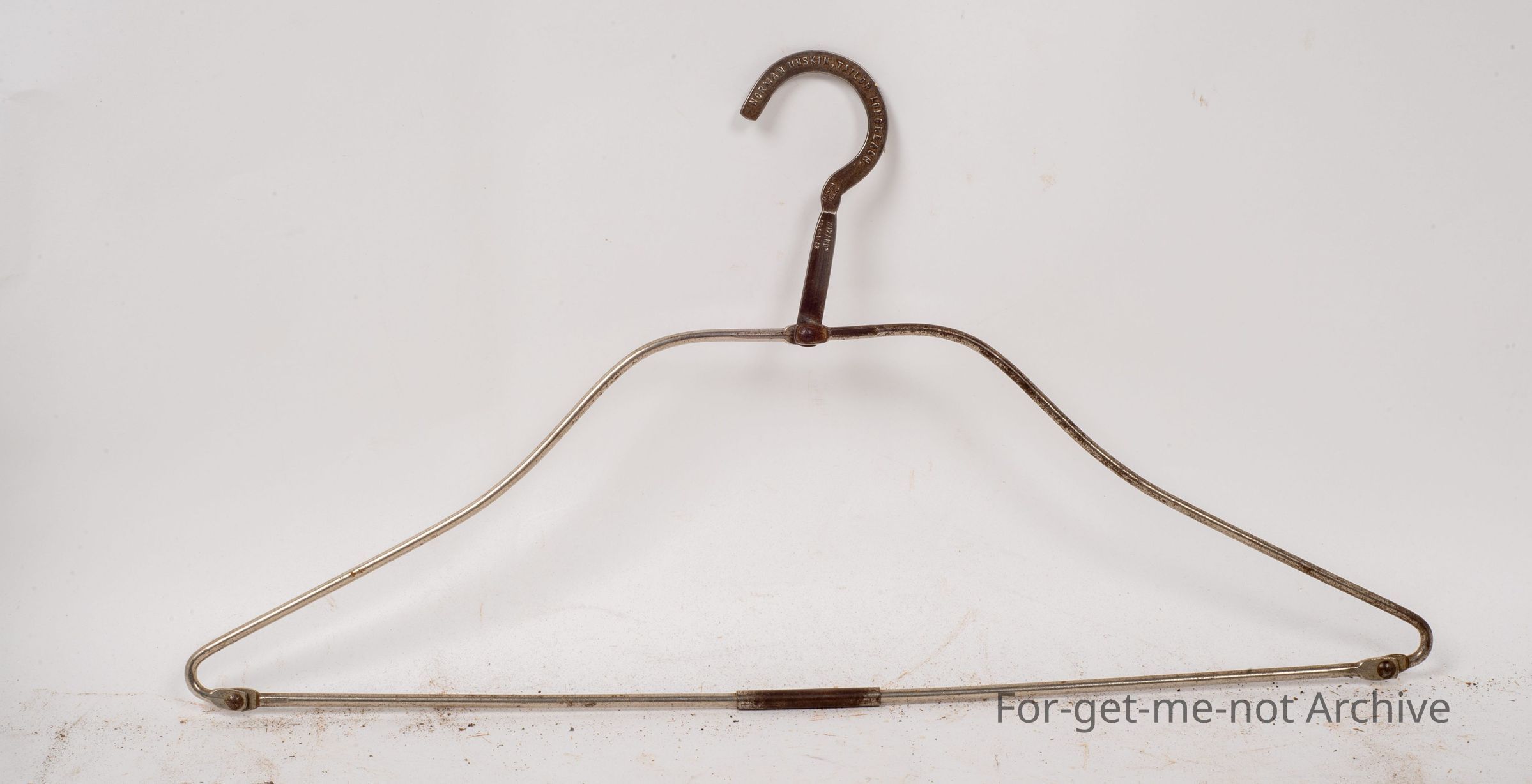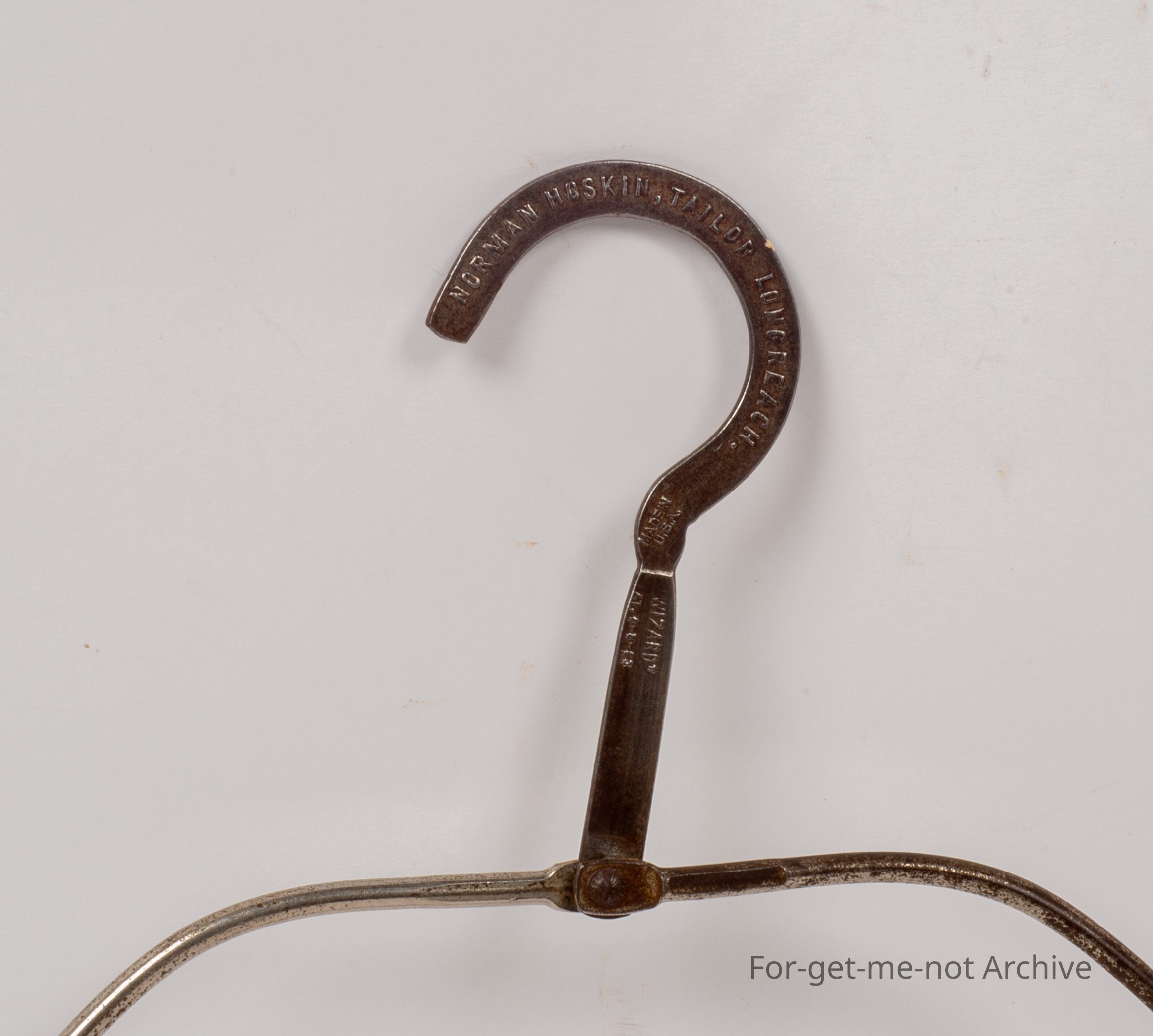 This is another fold up coat hanger. This one with advertising stating Norman Hoskin. Taylor. Longreach, Queensland. Very good condition.