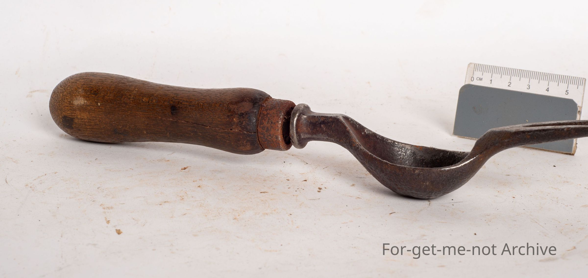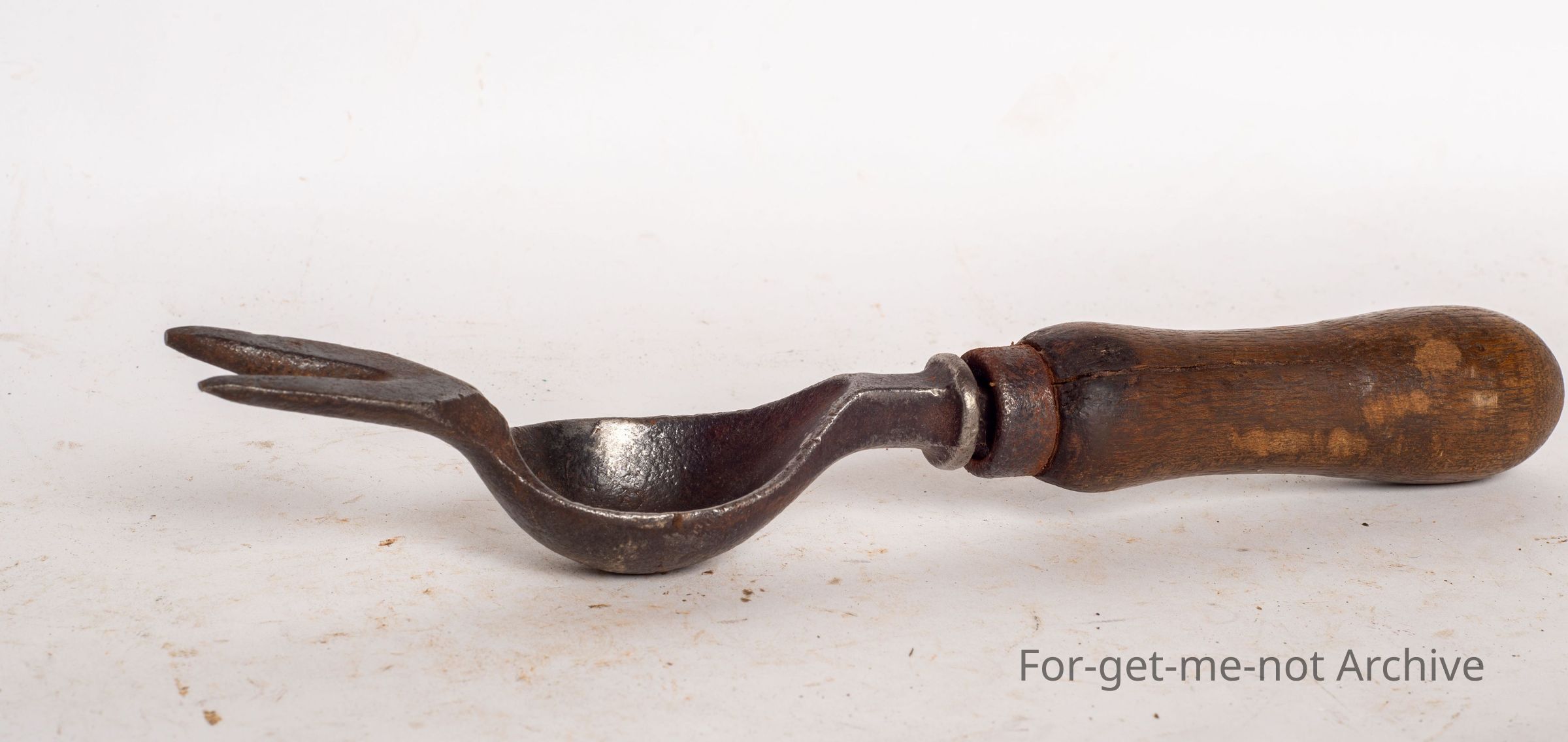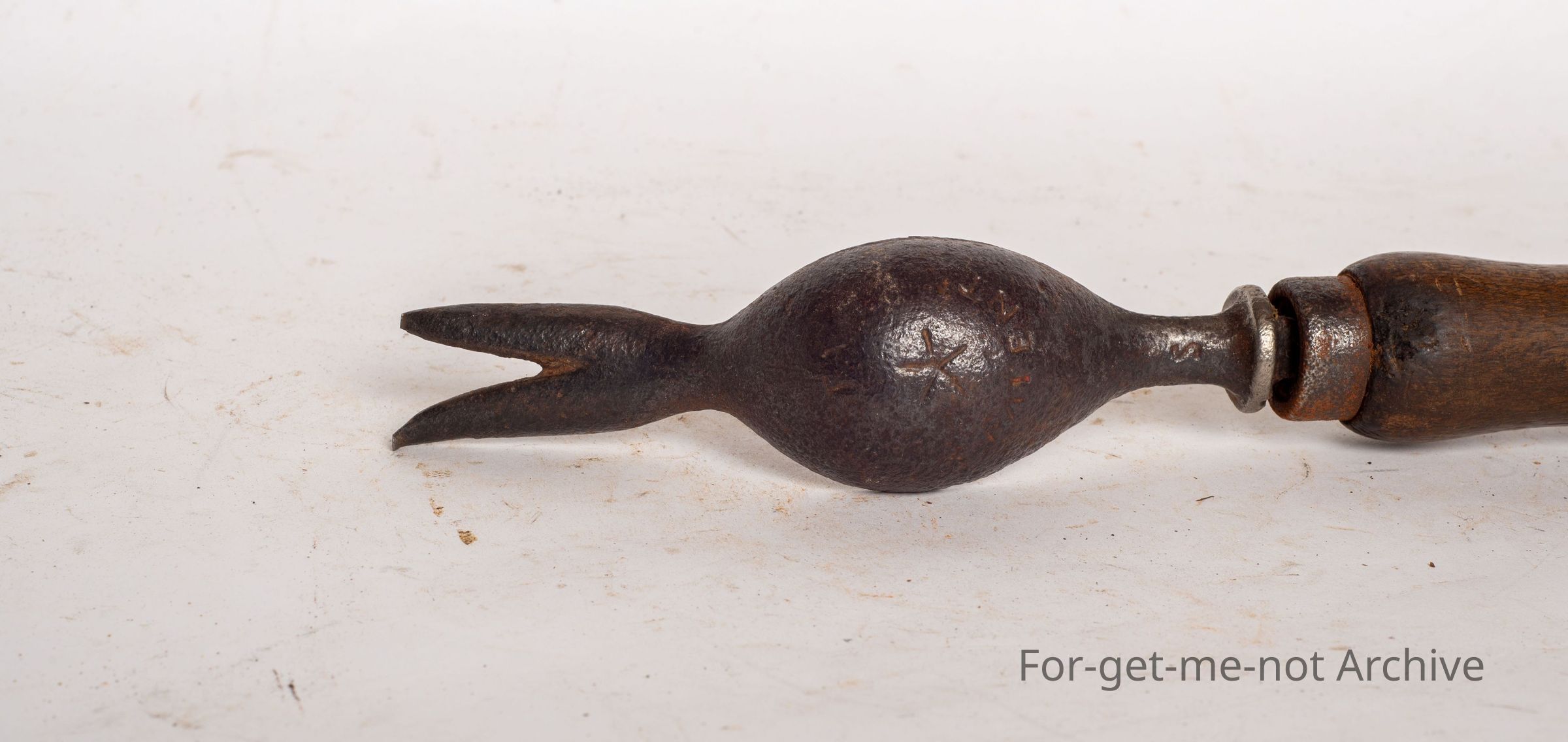 This is believed to be a cobbler's tool for pulling out hobnails and leather On the back or the underside of the bowl, it has got star patent with a star in the centre, a number 5 or an s just below the wooden handle. Lovely early piece.Collection