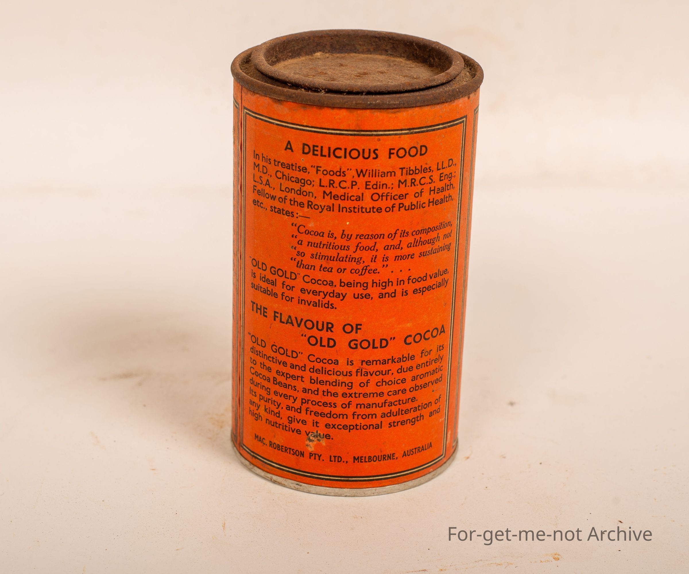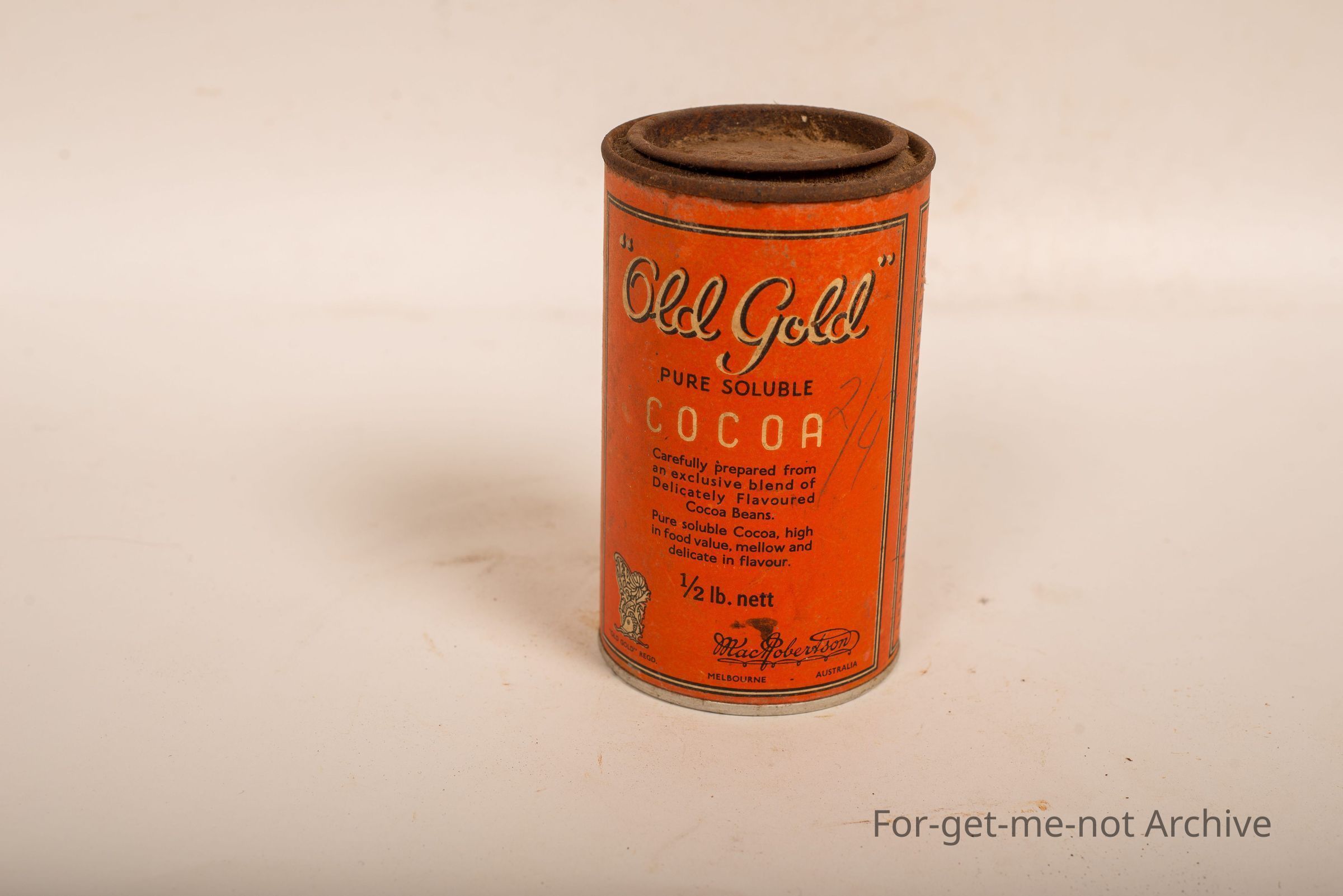 Tin of all gold pure soluble cocoa packed by Mac Robinson Malvern Half Pound Tin in very good order