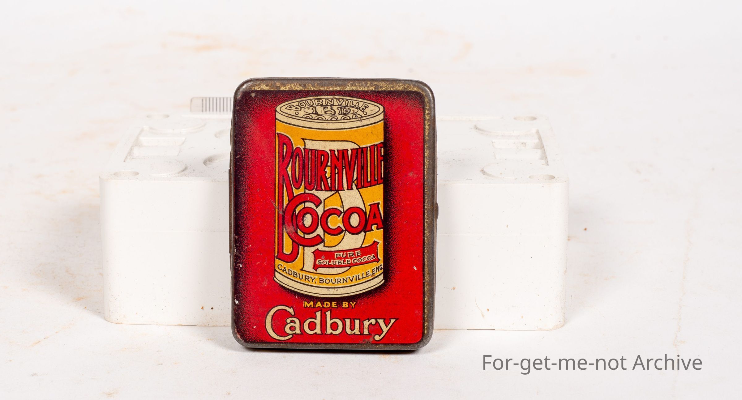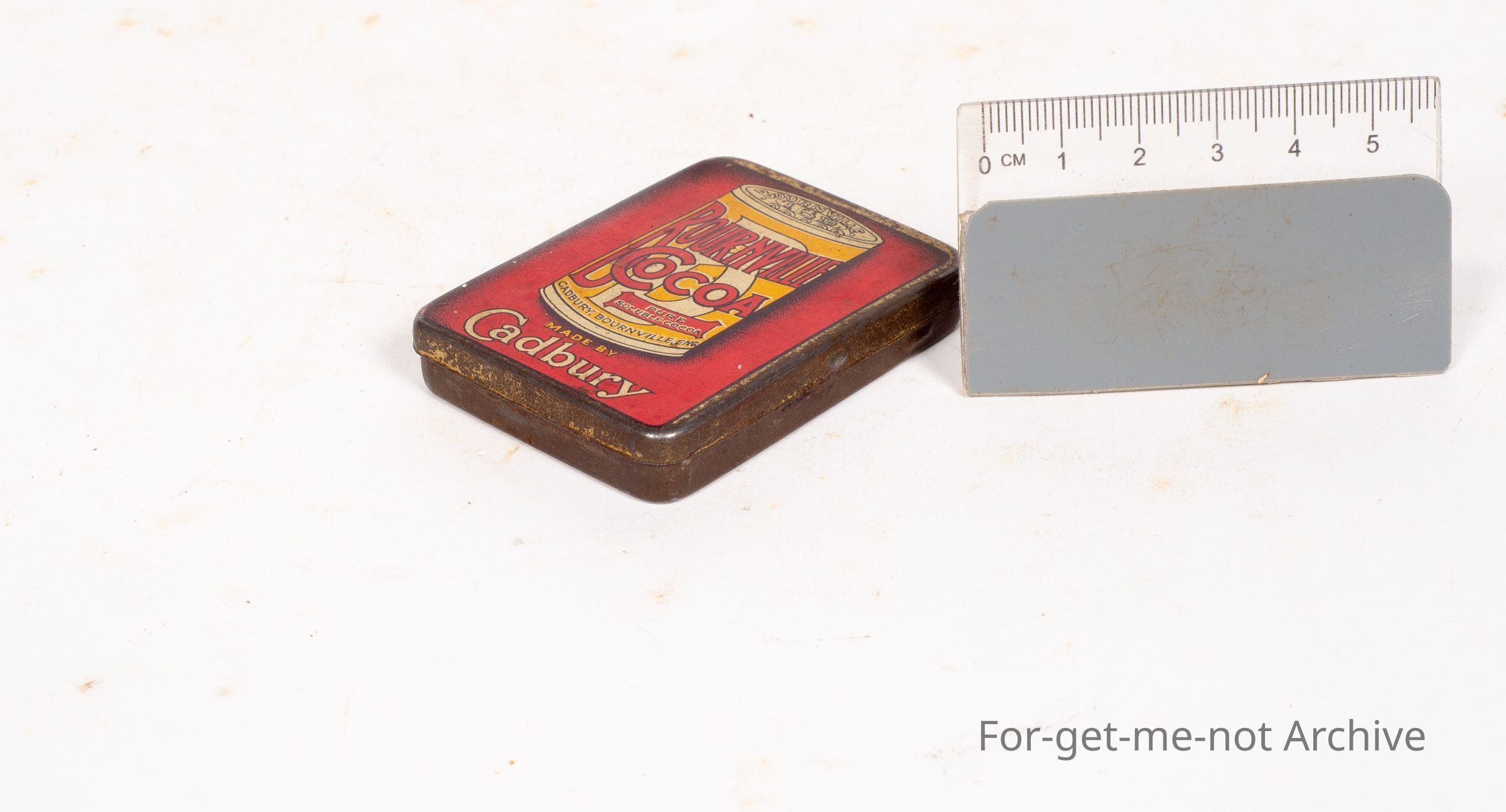 This is another sample tin from Bournville Cocoa. This one is a Flat Tin with a Striker on the back, Embossed Cadbury Bournville in the base. This one is in very good condition