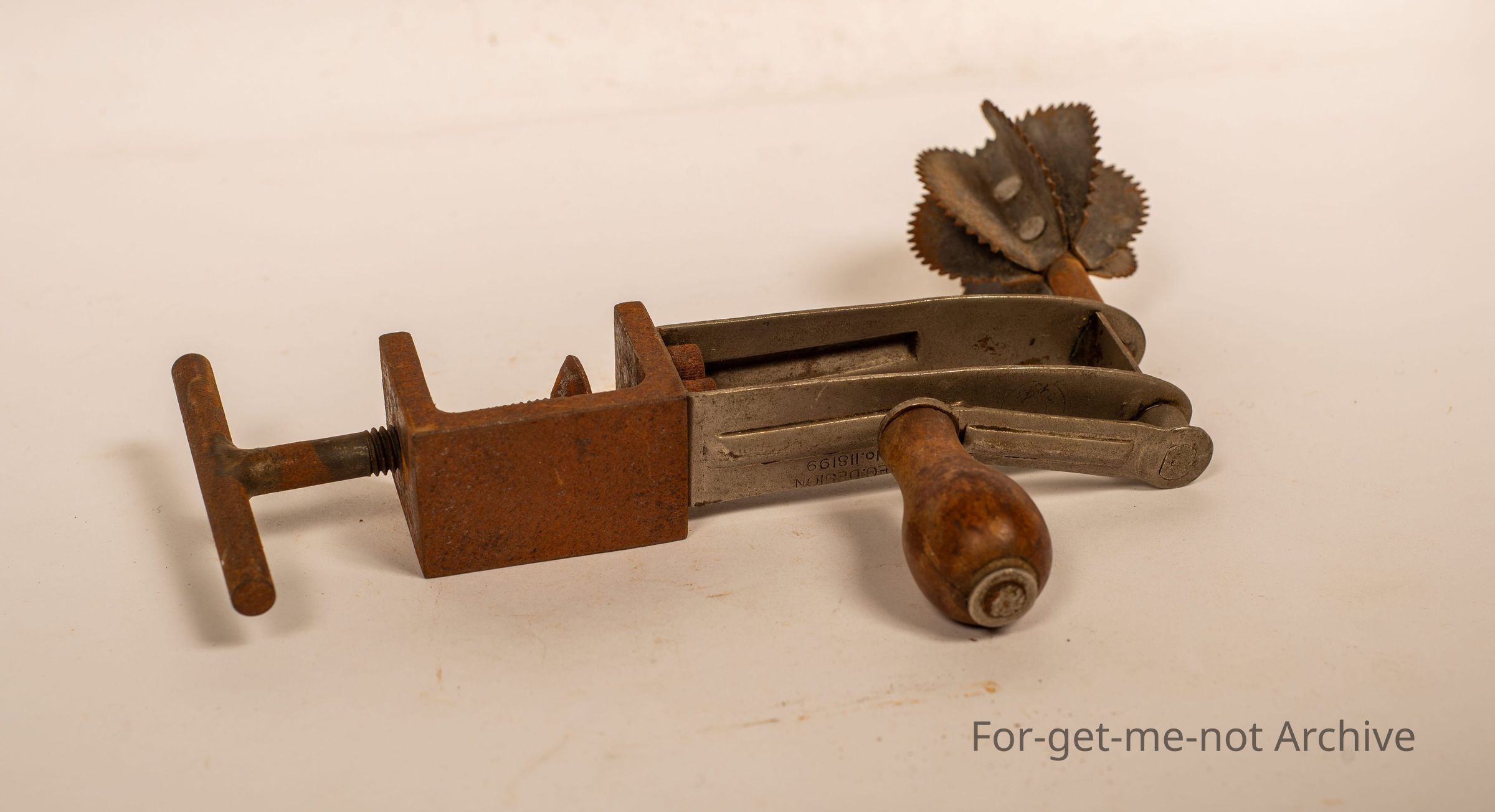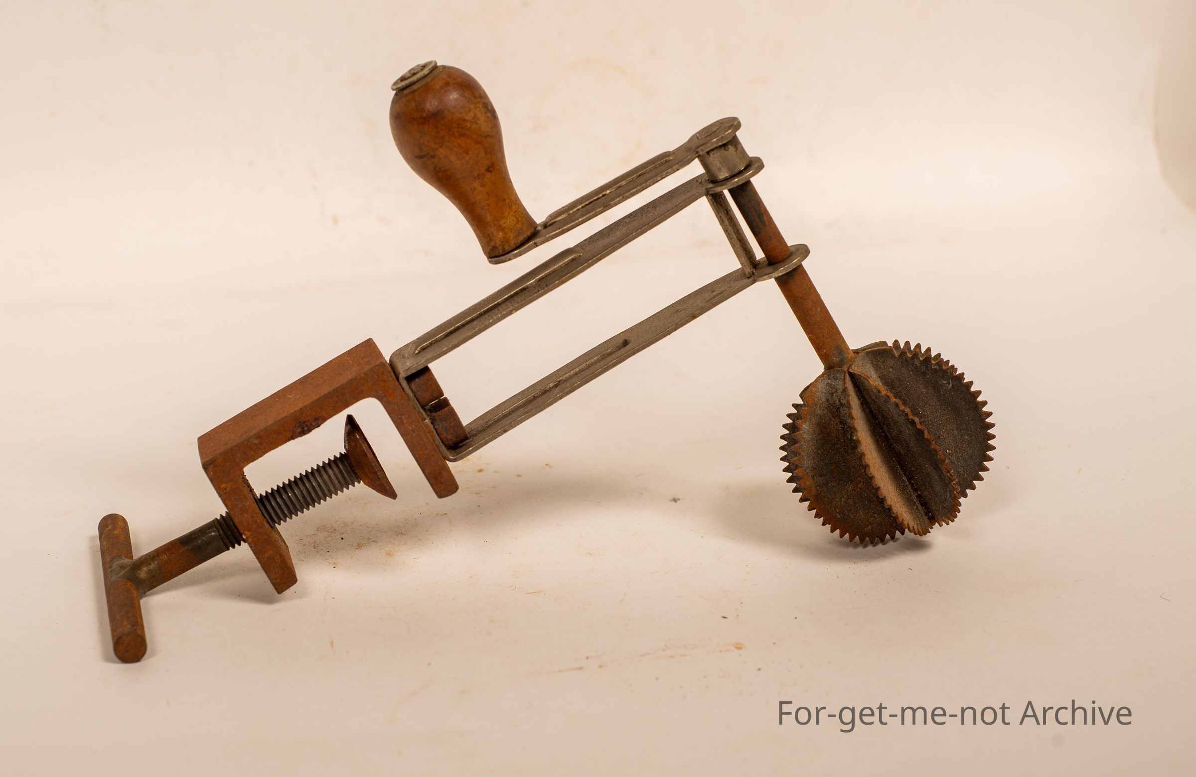 Is a metal hand turned coconut shredder that clamps onto a table.