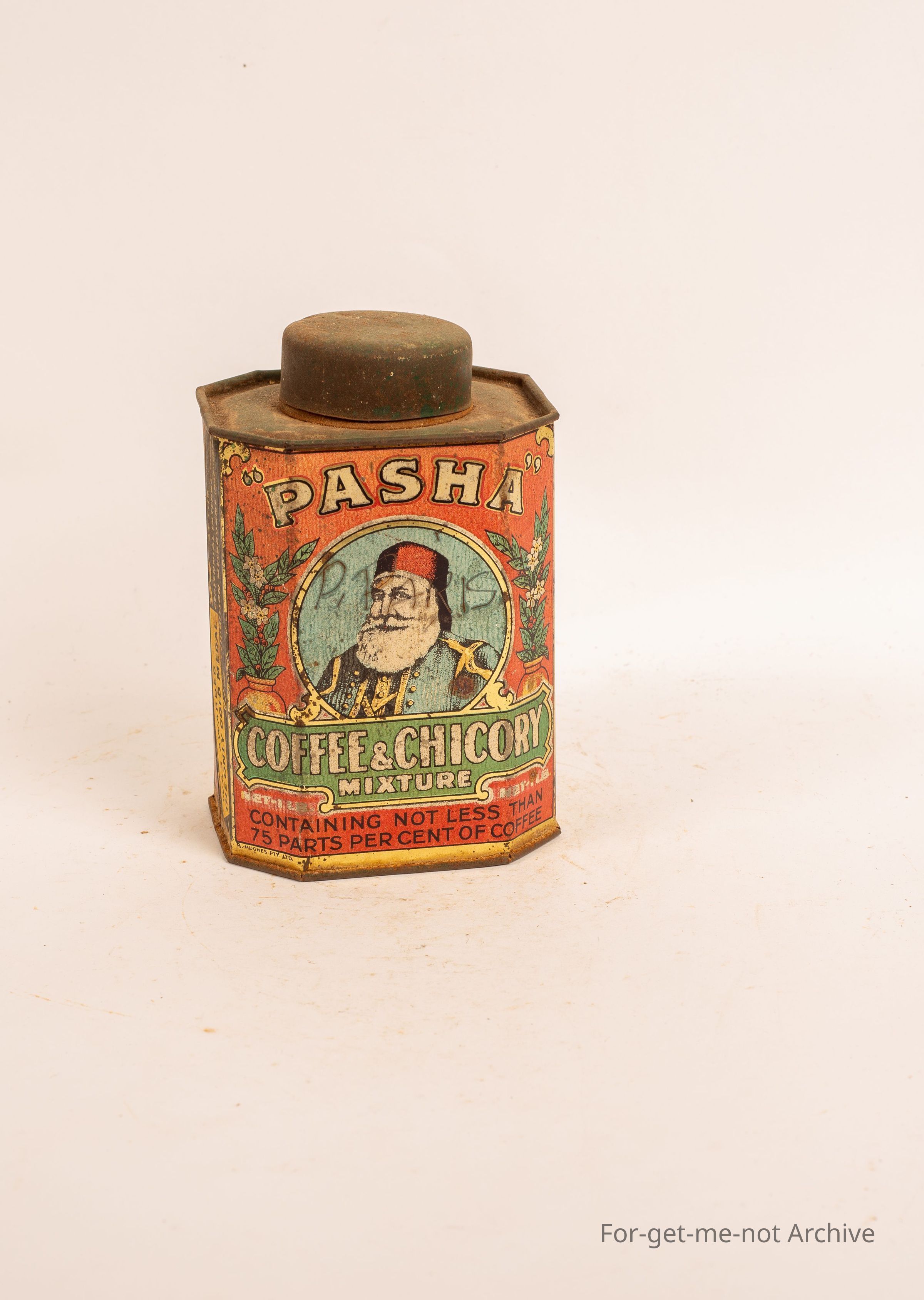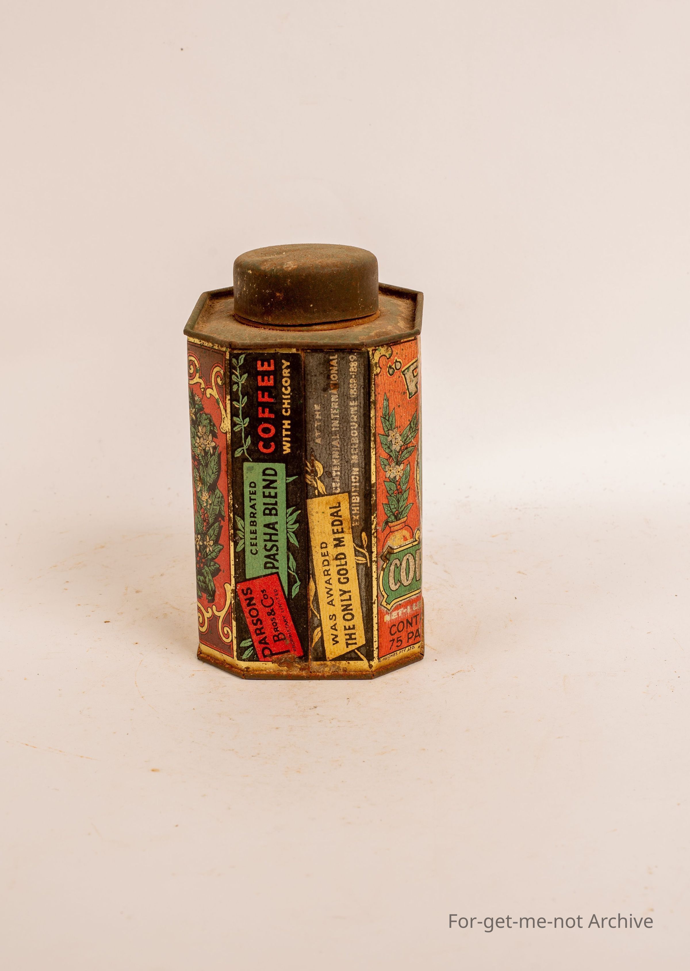 Pasha, coffee and chicory. Pictorial scenes all around. Packed for Parsons and Co, Sydney, Australia.