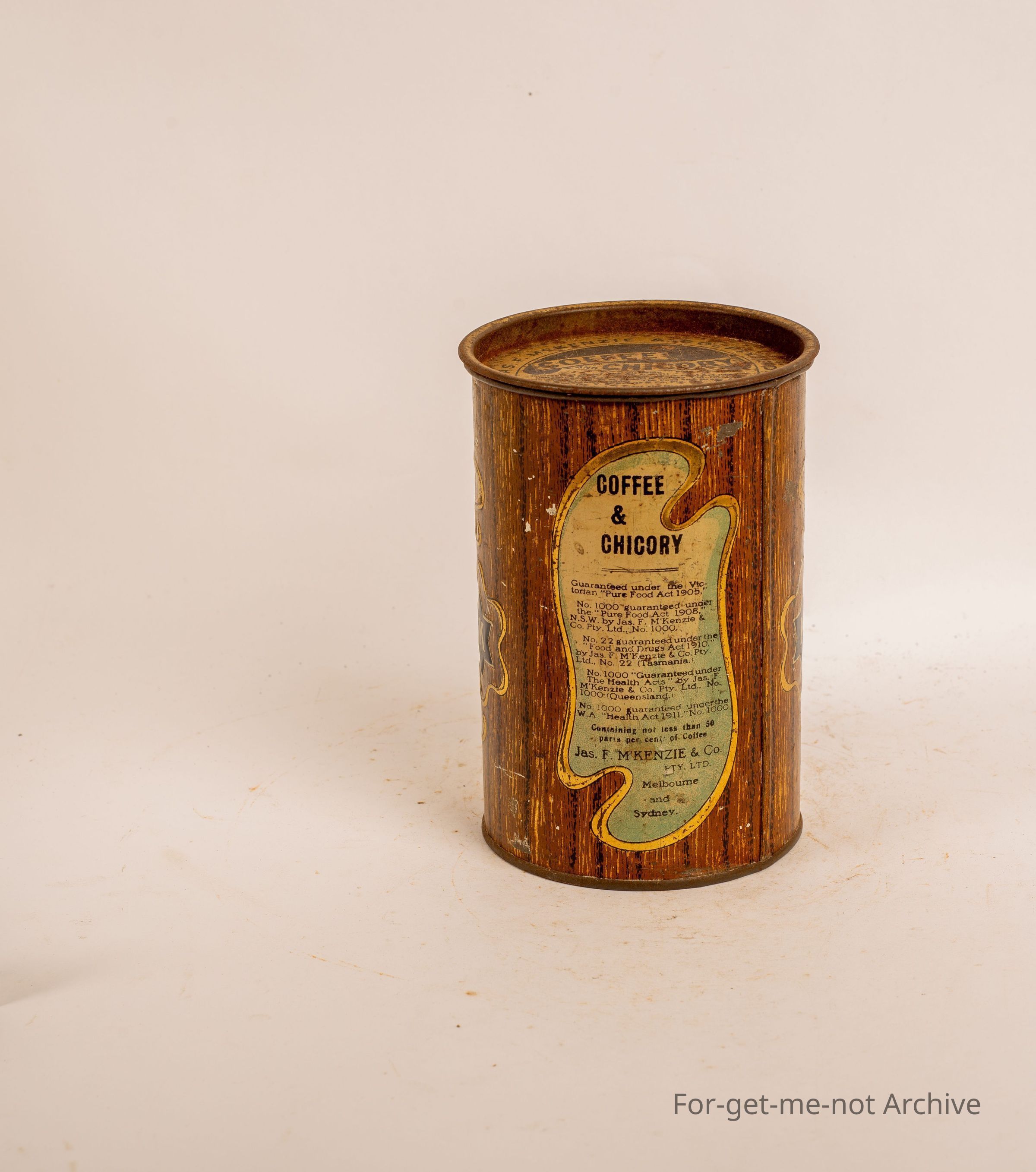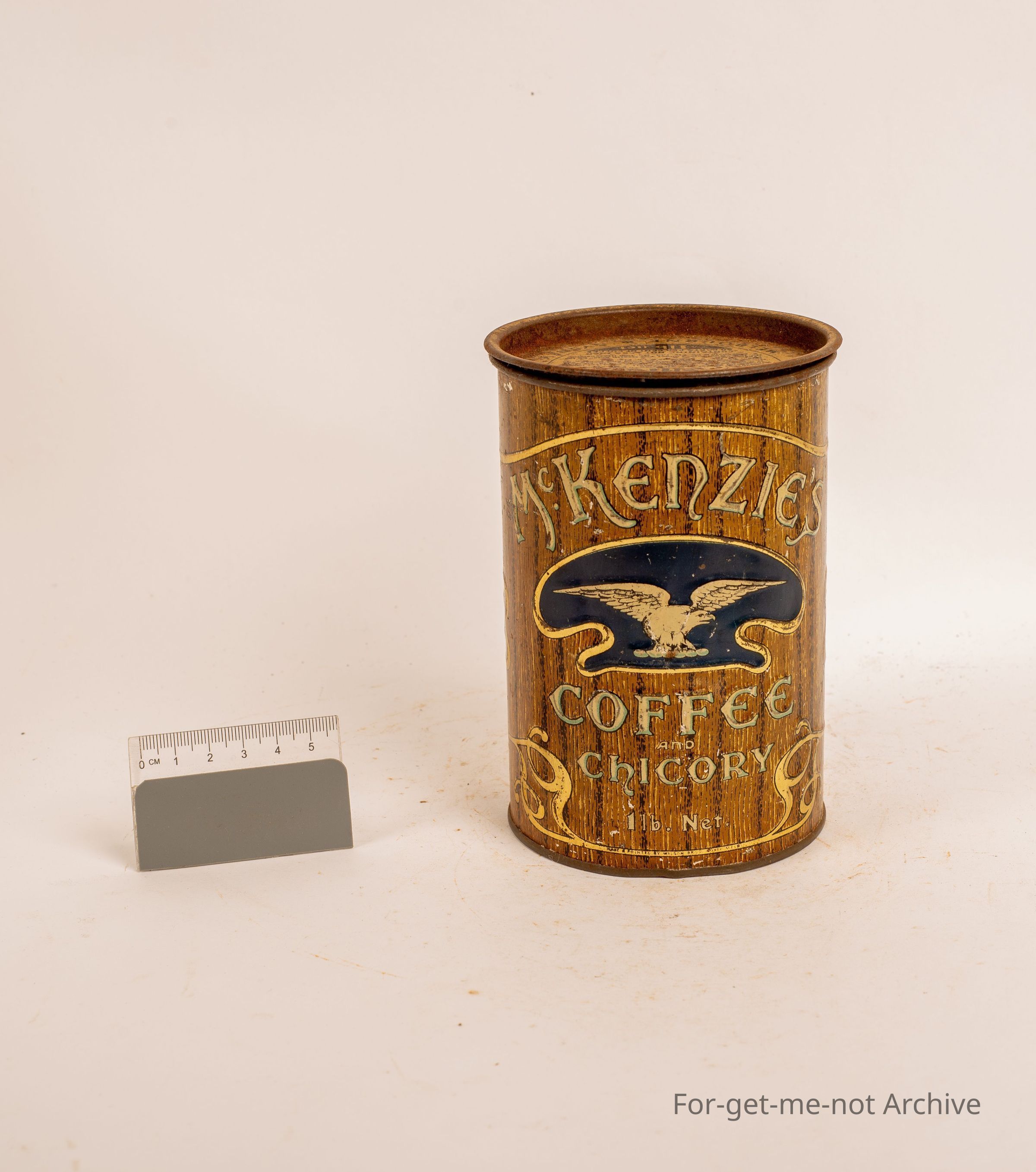 Mackenzie's tin for coffee and chicory at 1 lb capacity in reasonable order.