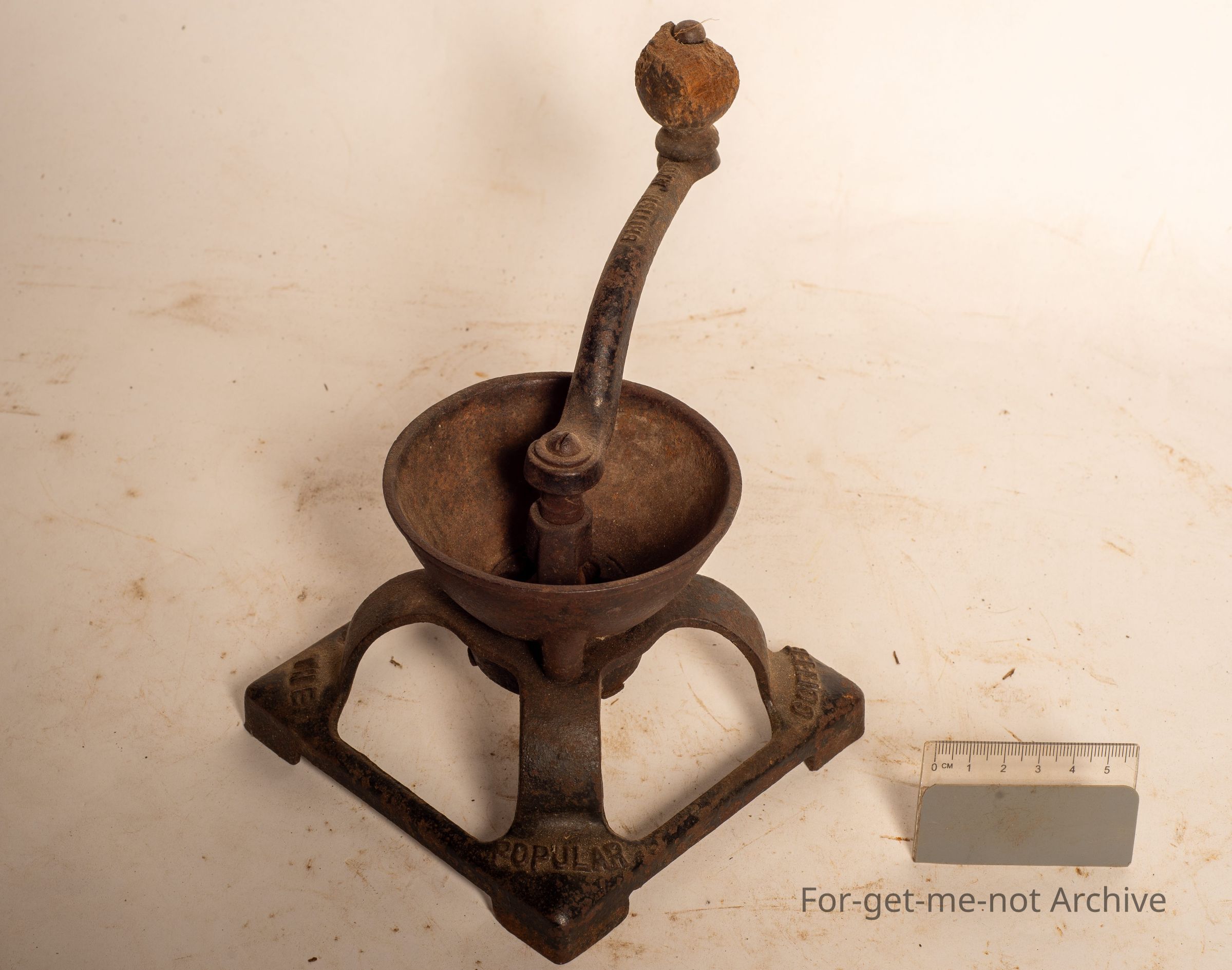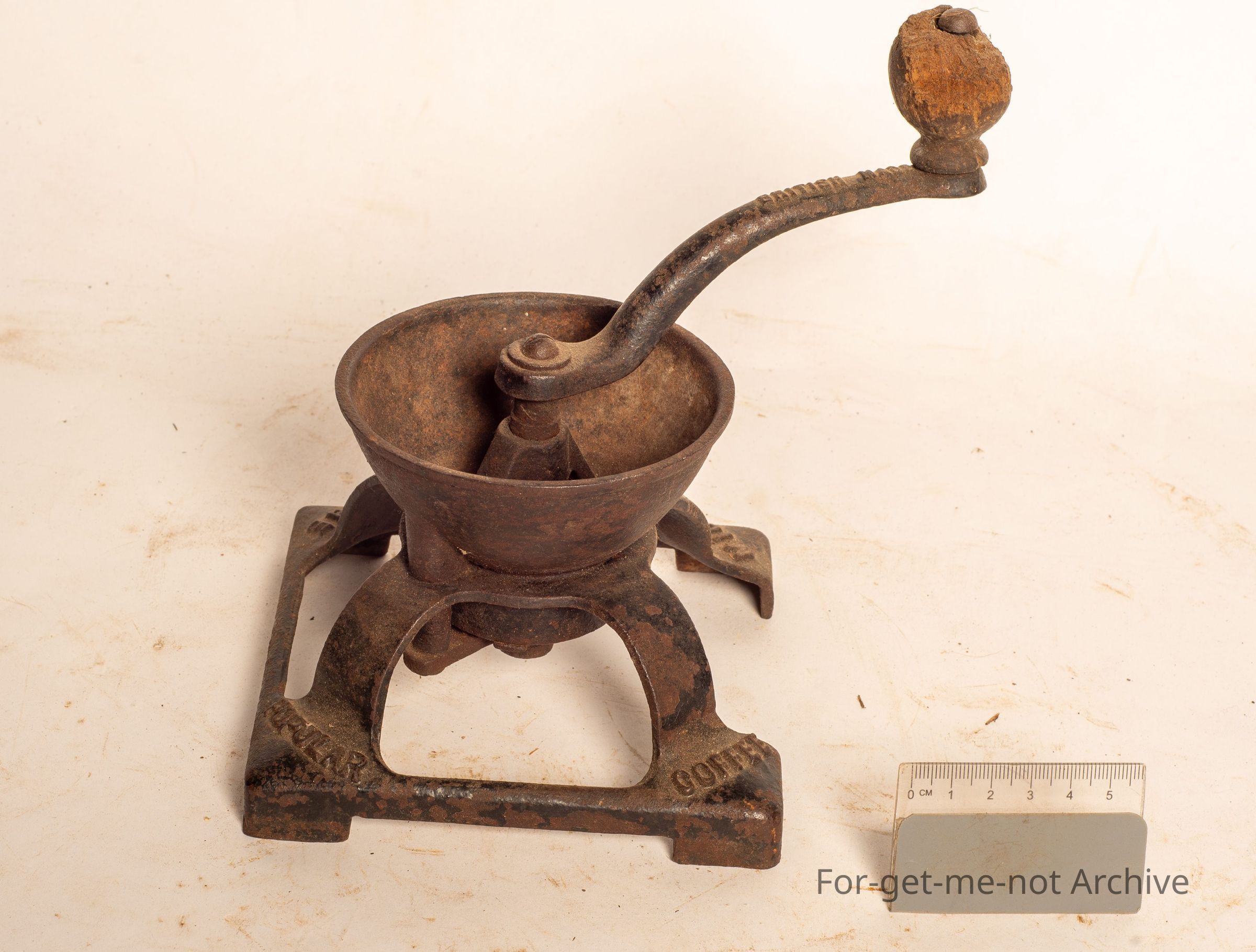 This is a small, coffee grinder made by Beatrice England. Hand operated, small cast iron frame underneath. Just a small scale coffee mill.