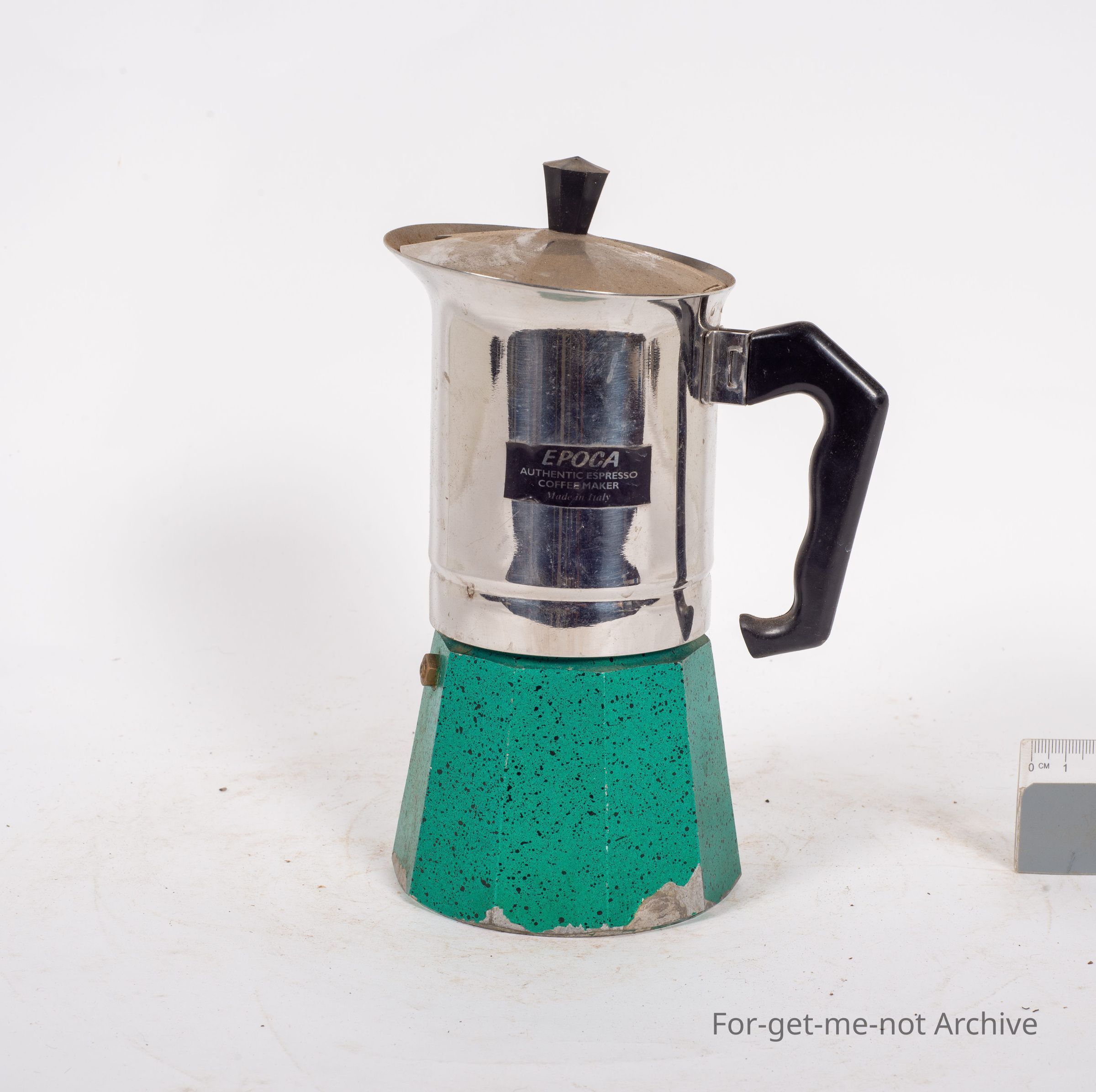 This is a coffee percolator metal. Has a brand called Epoca Authentic Espresso Coffee Maker made in Italy. Has an aluminium tank at the bottom, the rest is chrome tin, workable condition, but has done very little work at all.Collection