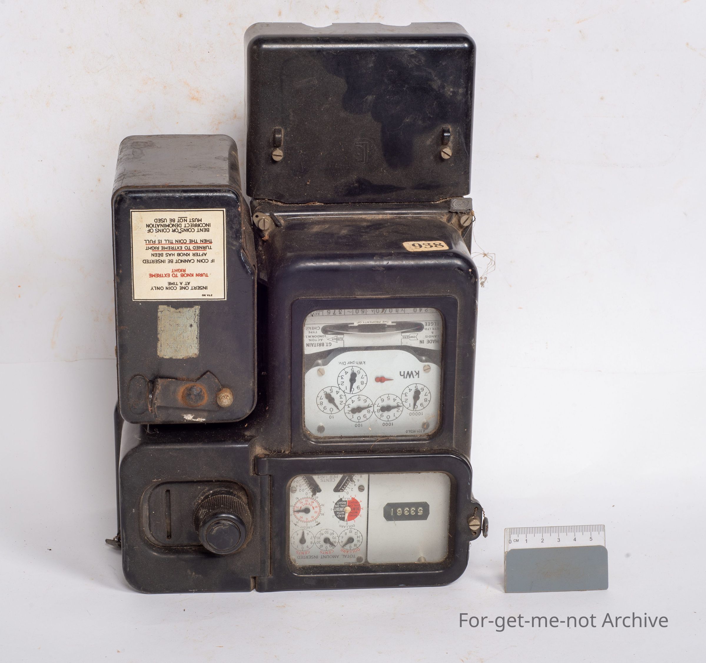 The household coin in slot meter for electric use, description. These, are old world meters, pre to the smart meter. Beautifully made. Served their purpose in time. The feature of this meter is that its a coin operated meter for electricity, has the cash box in it which is still full of coins and, from a long ago era,Collection