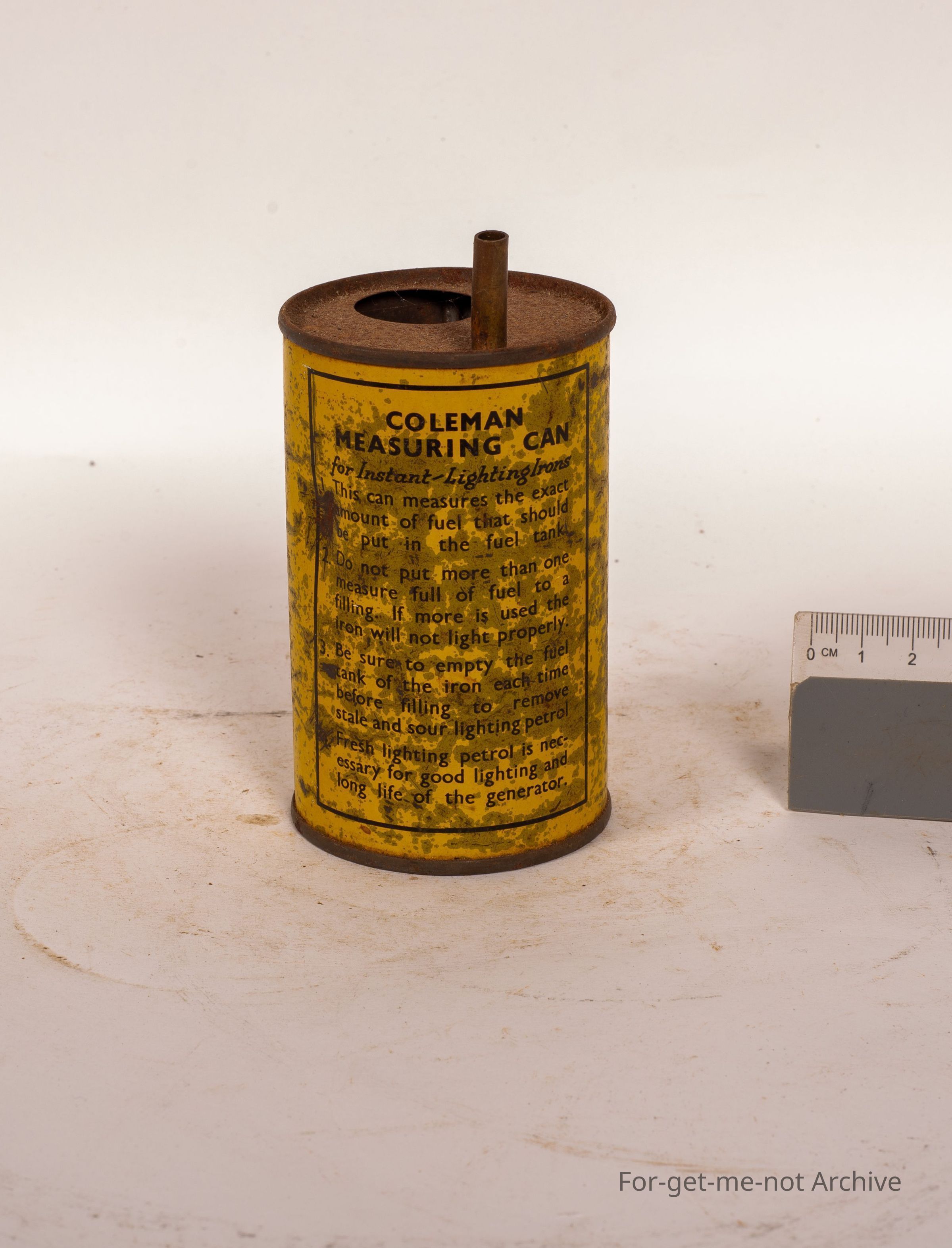 This is the Coleman measuring can, for refilling the lighting of, petrol irons. This is a measured amount to go into the iron. It has a hole on the back to alter the flow,Collection