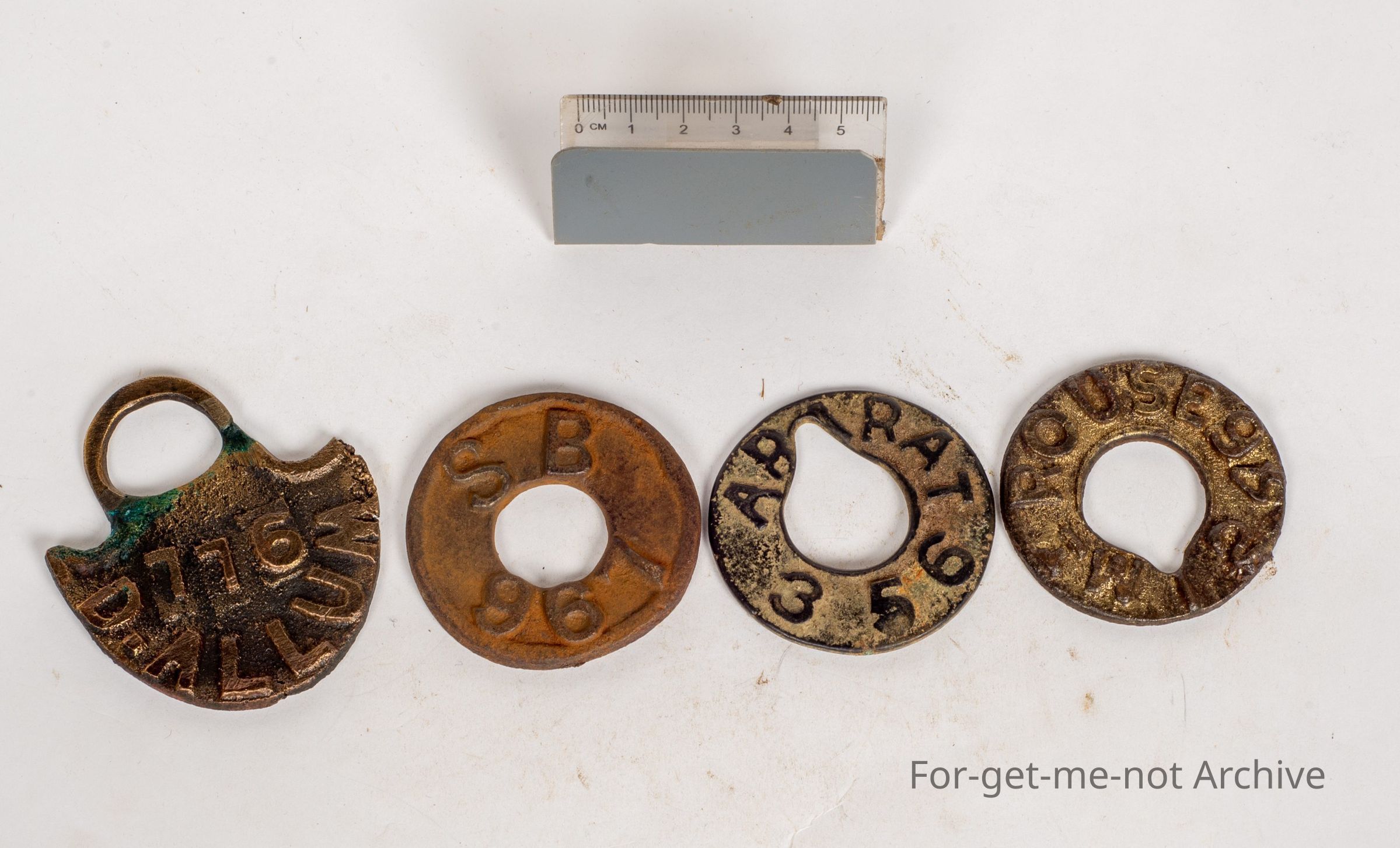 These are the tags put on a cow's neck when they were on a common. these commons were set up as a social welfare, act to enable people that weren't landholders to run a cow so that they could rear their kids on milk. The first one, Derrinallum. The second one, extremely rare, Mount Rous, near Hamilton. The third one, Ararat, Victoria. This the 4th one is South Barwon.Collection