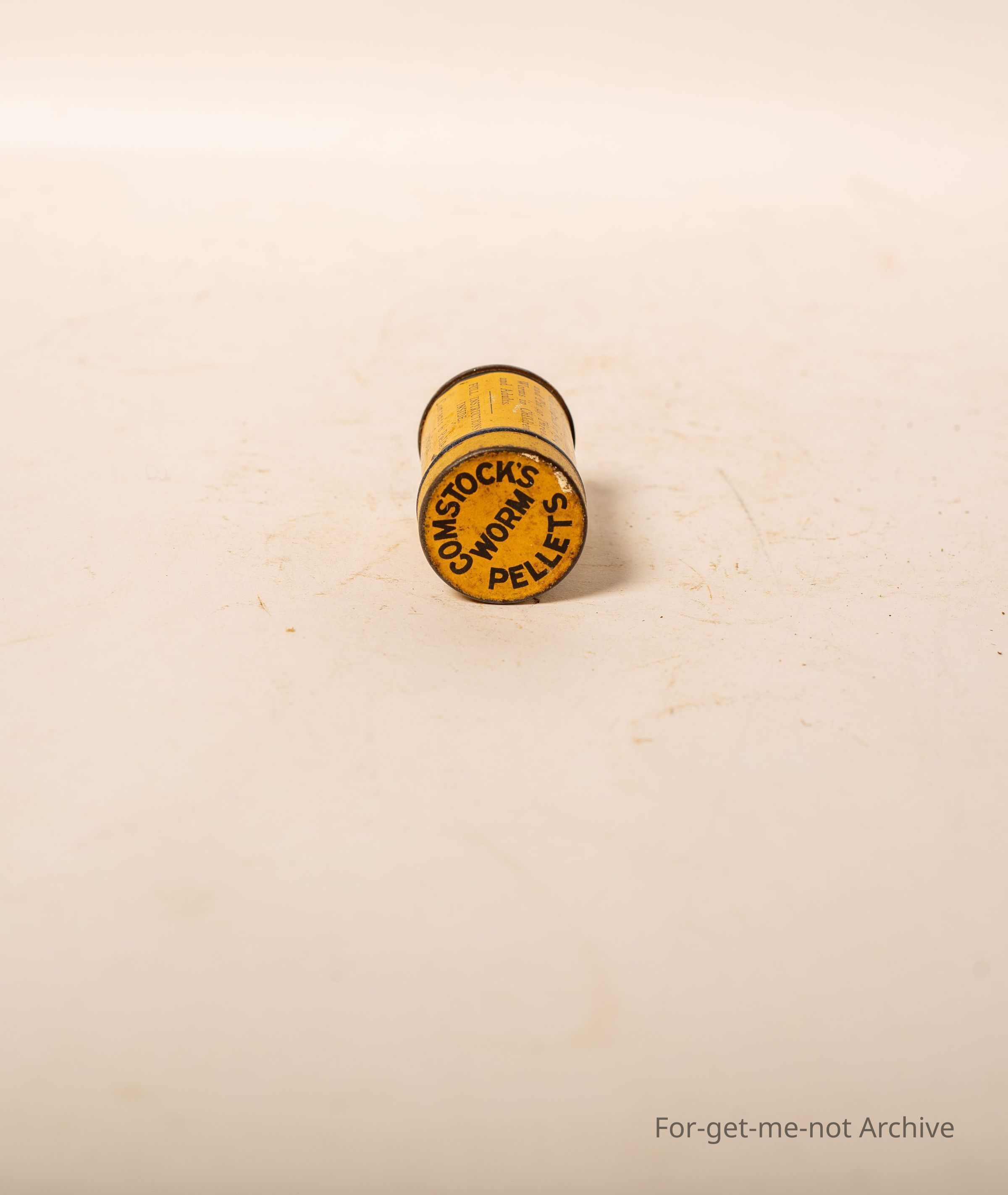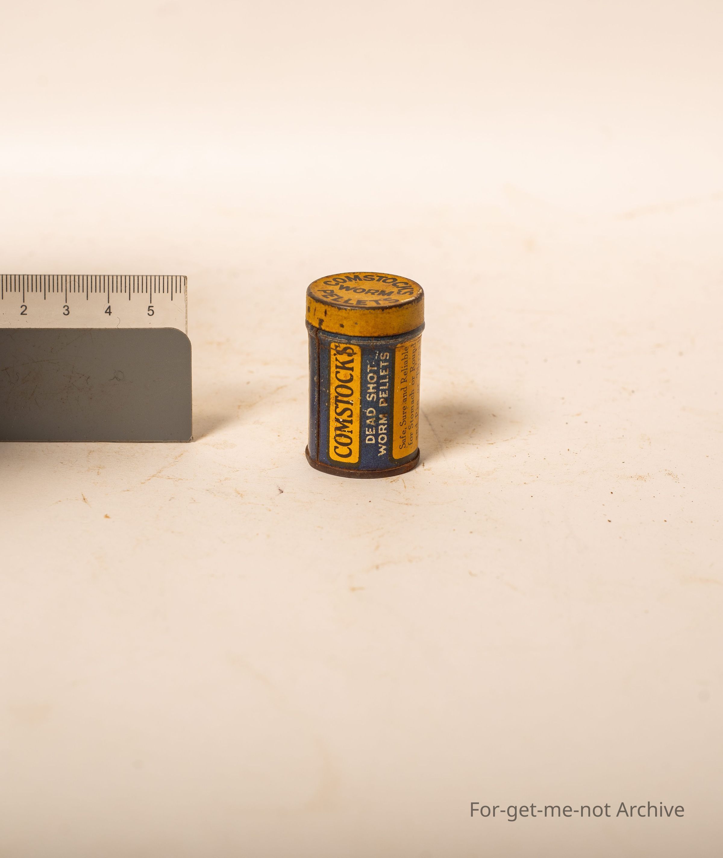 A small tin of Comstock's dead shot worm pellets. These are useful in children and adults. Contents. 6 pallets for 2 shillings. Made in made by Comstock Limited Sydney.Collection