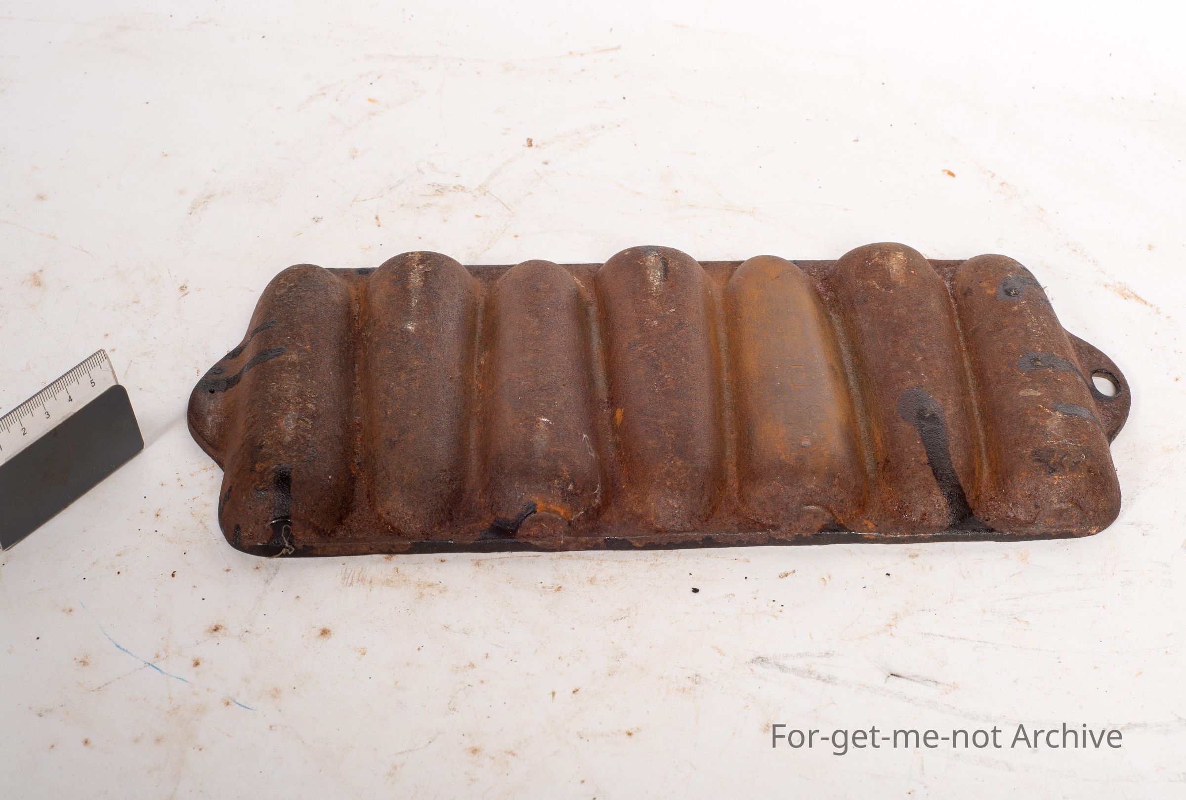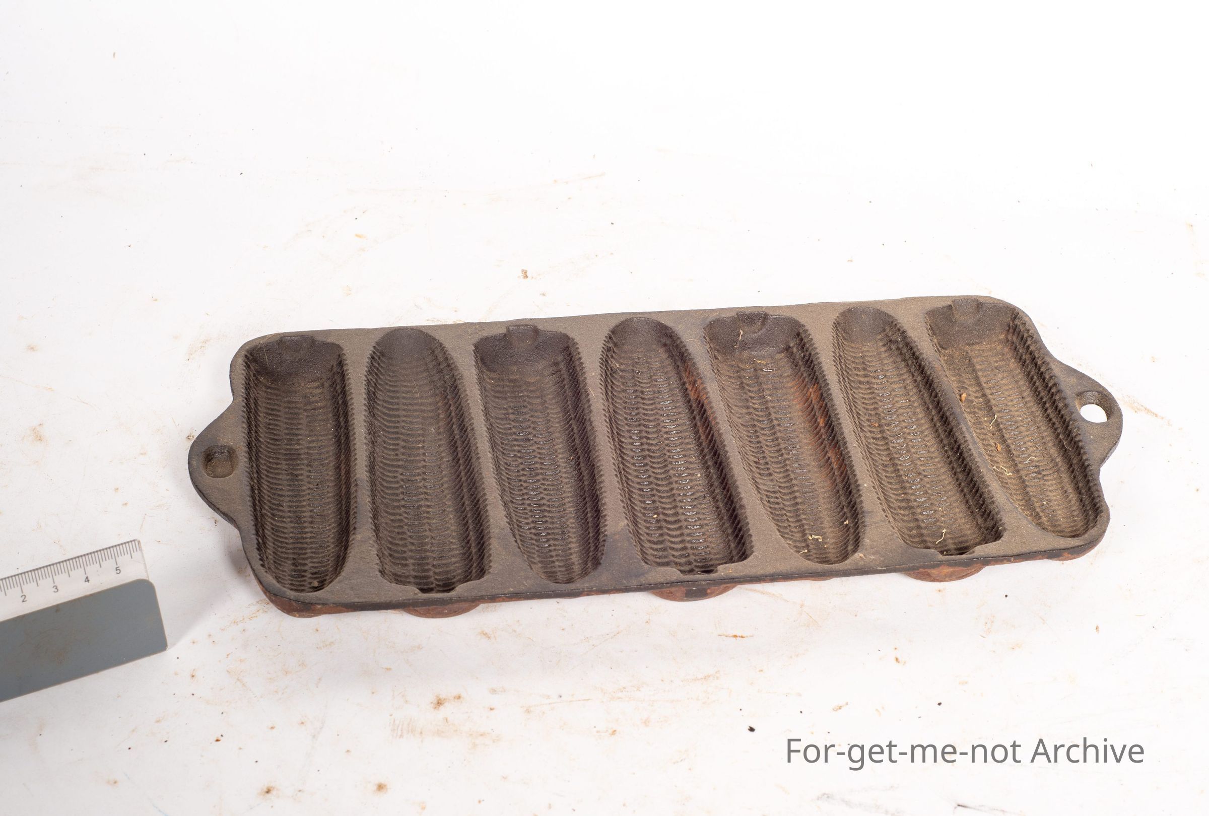 Cast iron, cooking vessel, does 7 pieces of probably a pastry mixture to create the effect of the appearance of the corn cob. Good order. Very solid