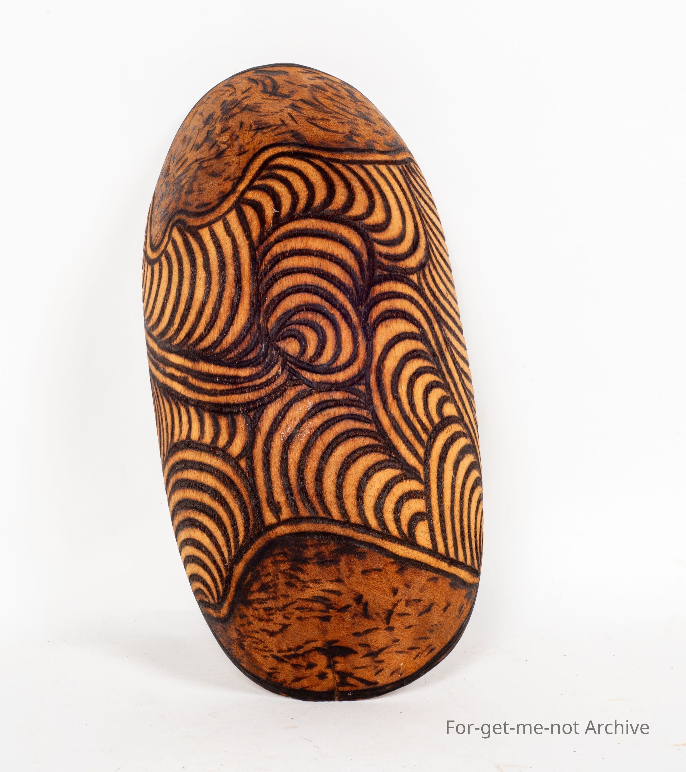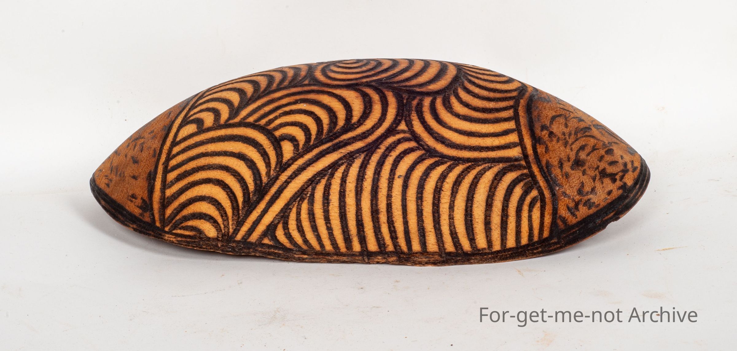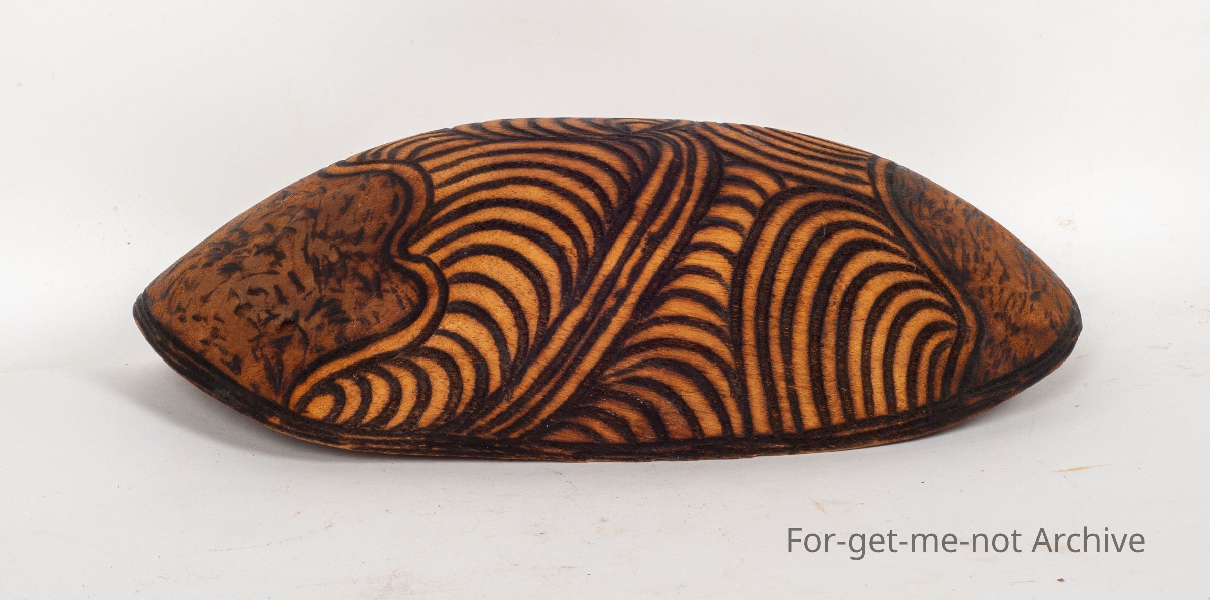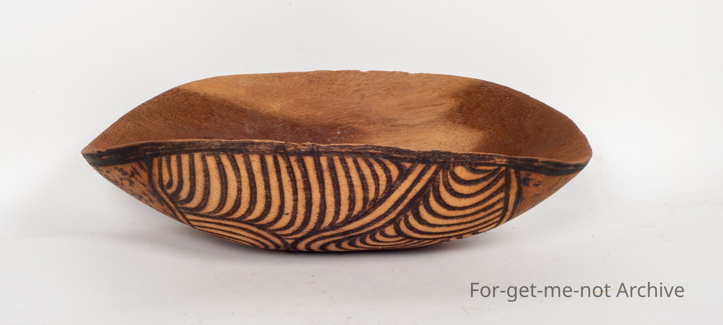 Small Coolamon, indigenous craft item with pokerwork inscribed on outside