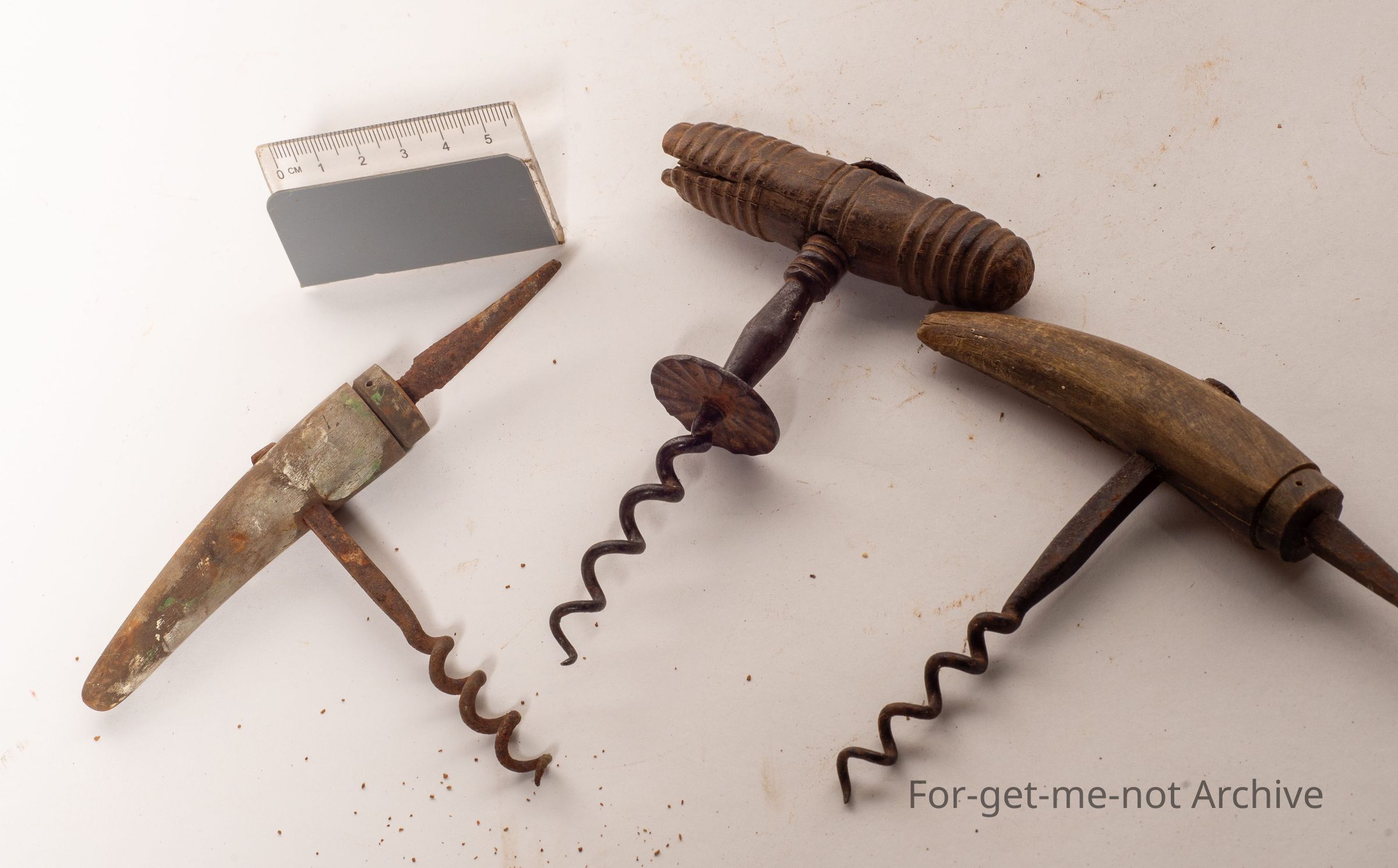These are 3 hand operated cork screws, with the cork screw, wooden handles, all in pretty good they're cleaned up.