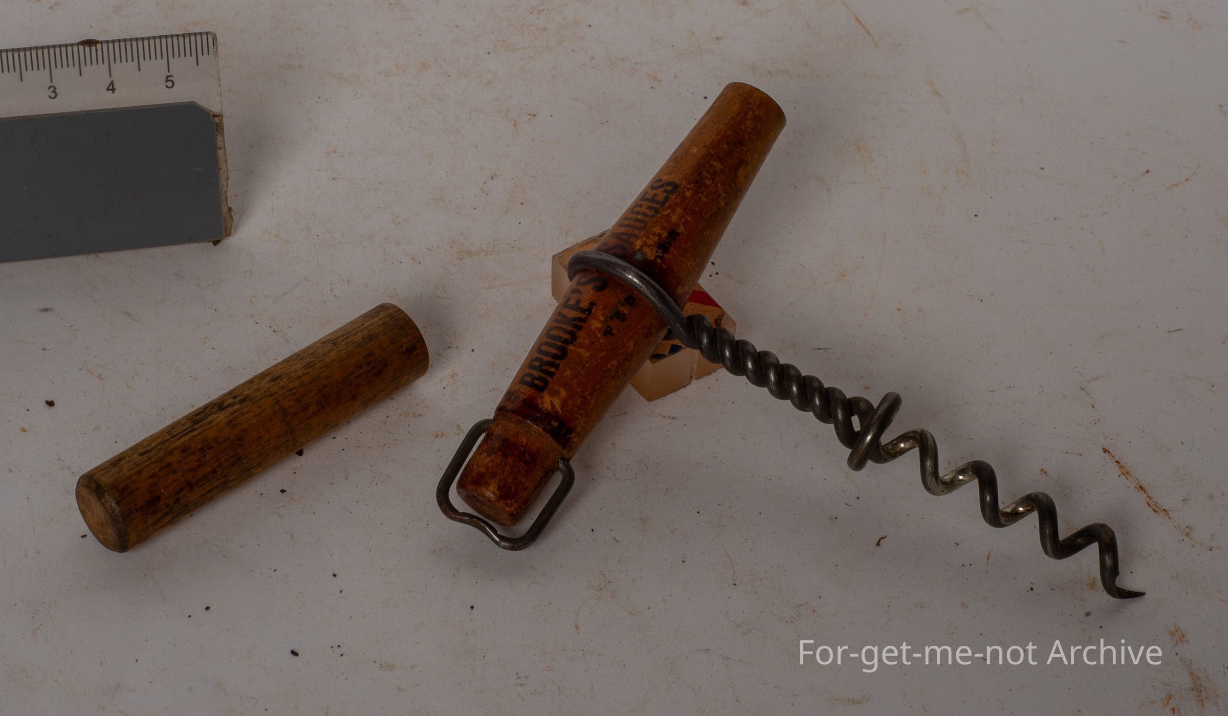 Wooden handle and a wooden protector for the corkscrew. This is an advertising one for Brooks sausages, coffee essence, and Brooks Lemos cordial. All Australian, very good conditionCollection