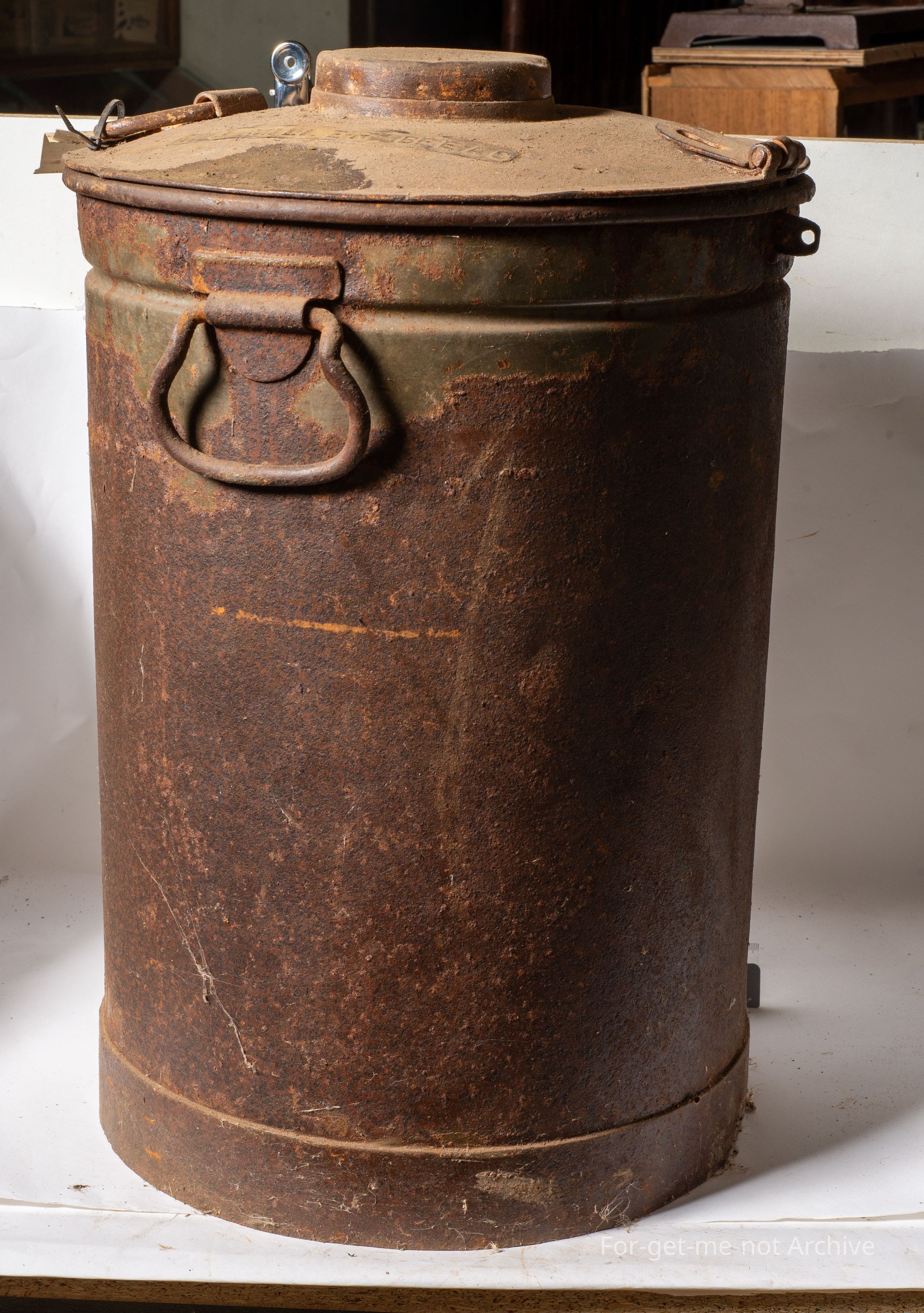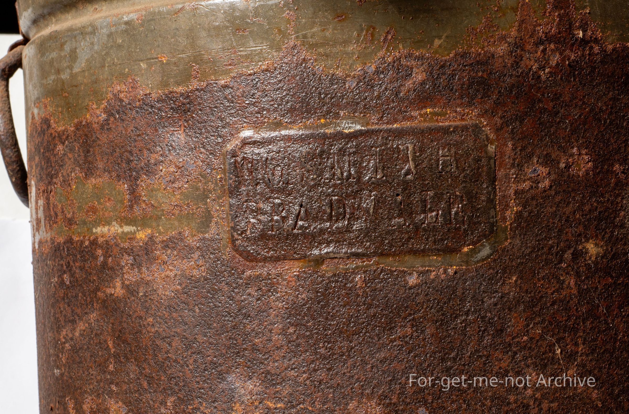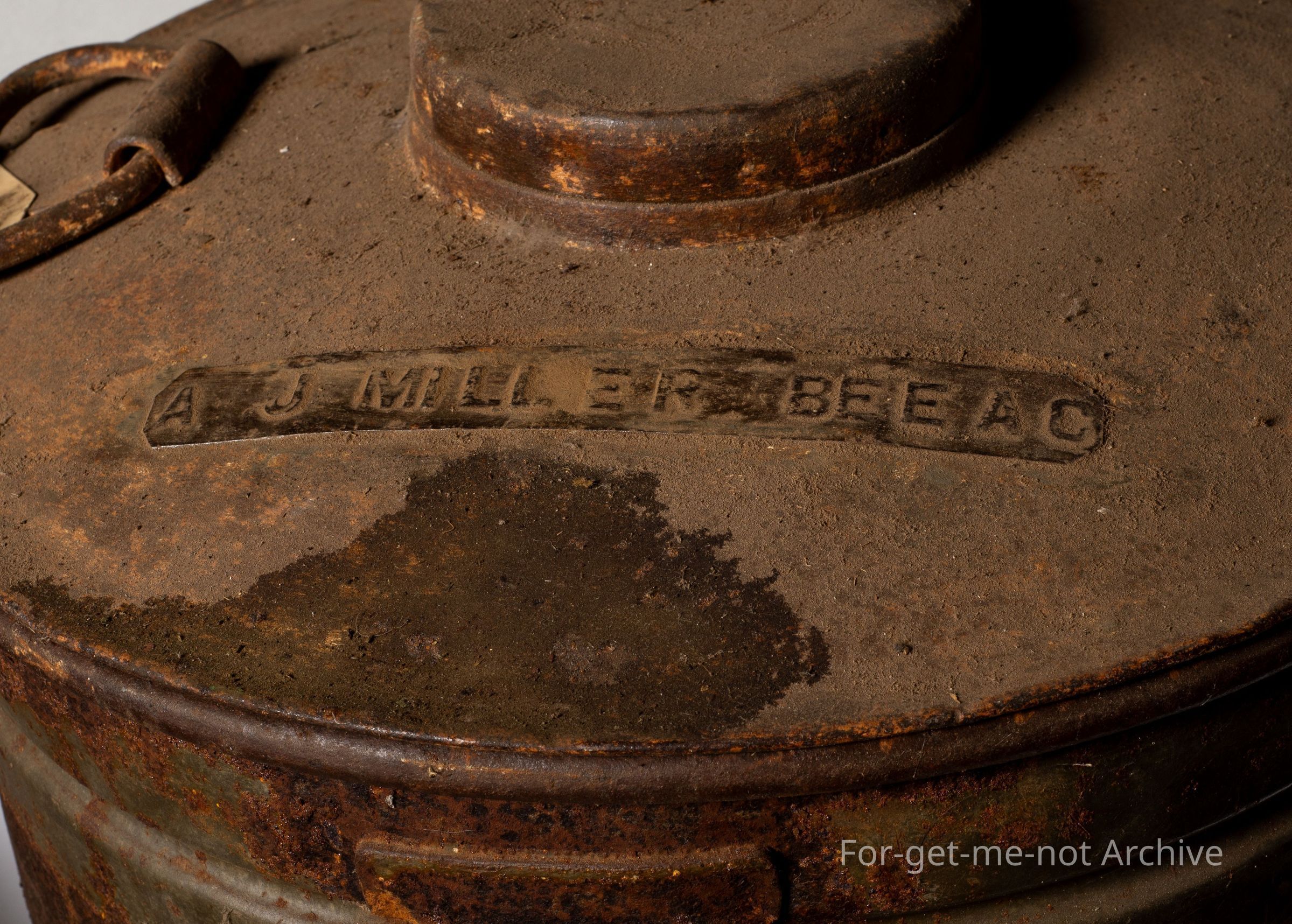 A large cream can, open top which is hinged. The brass label is for A J Miller Beeac. The lid has AJ Miller Beeac. The can itself has Smith Bradvale. These plaques are soldered on to the lid and the actual cream can. Not sure how this works as Beeac and Bradvale are 40kms apartCollection