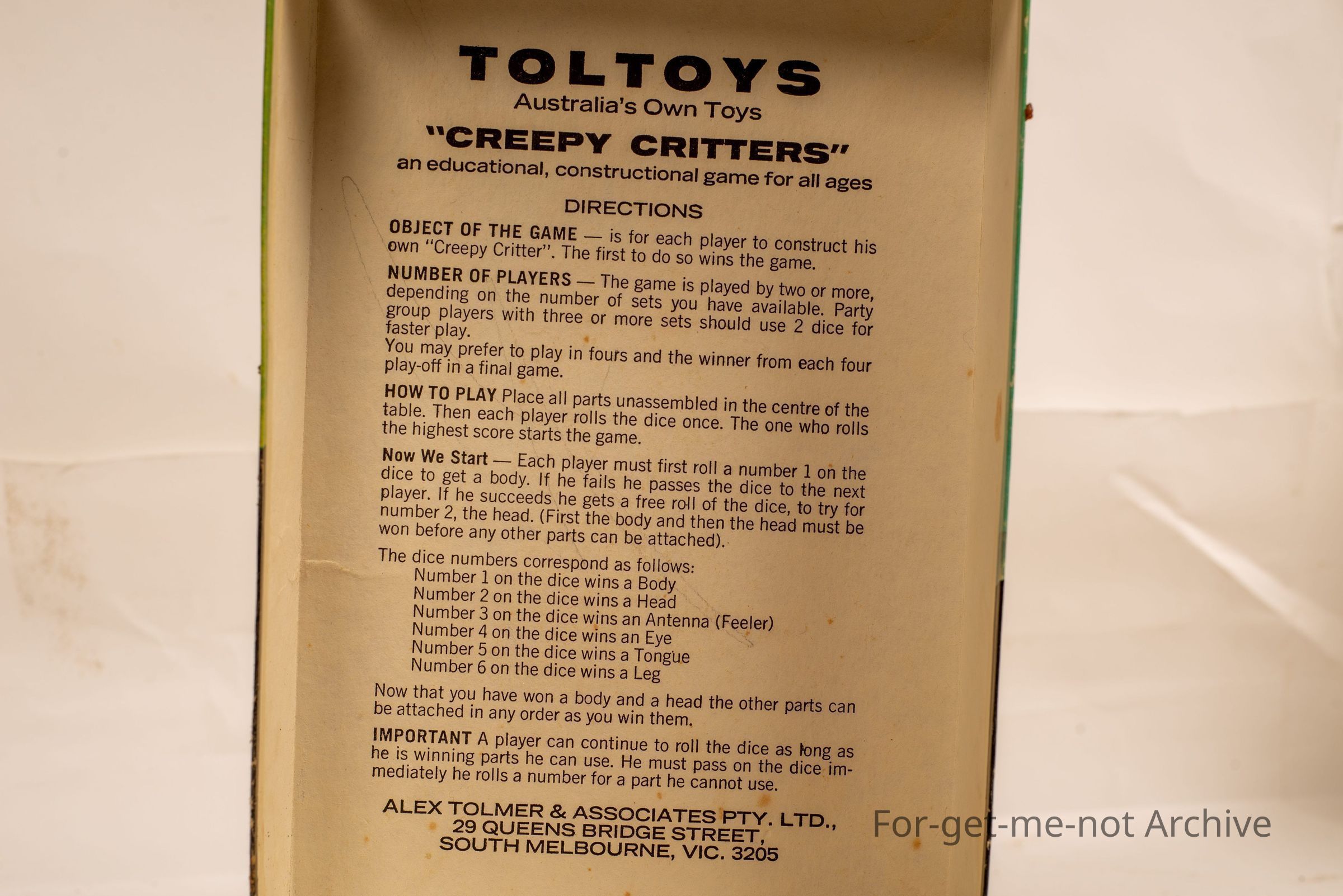 Cardboard box children's game for 2-4 players based on a sensational tv game and made by 'Toll Toys'.