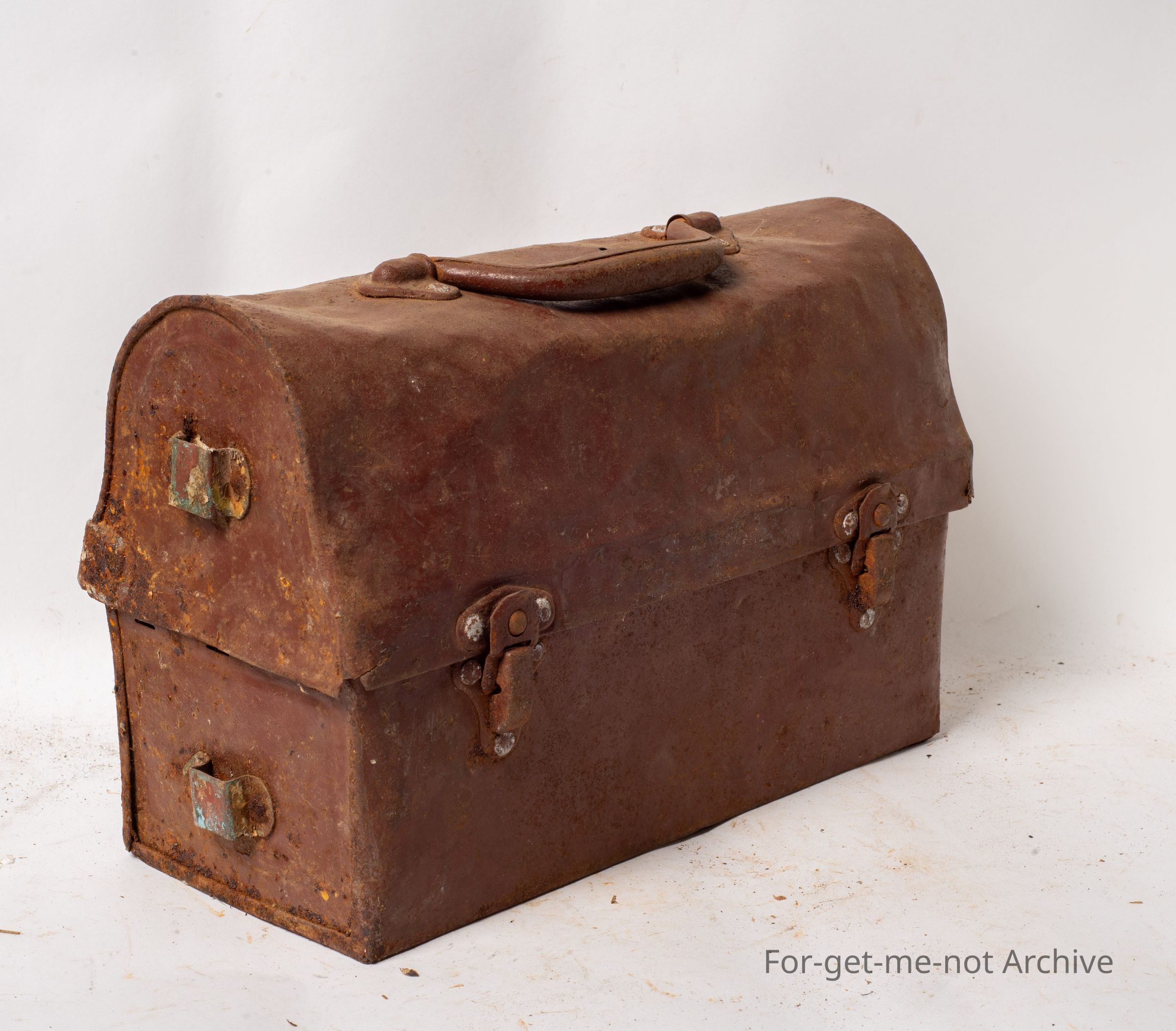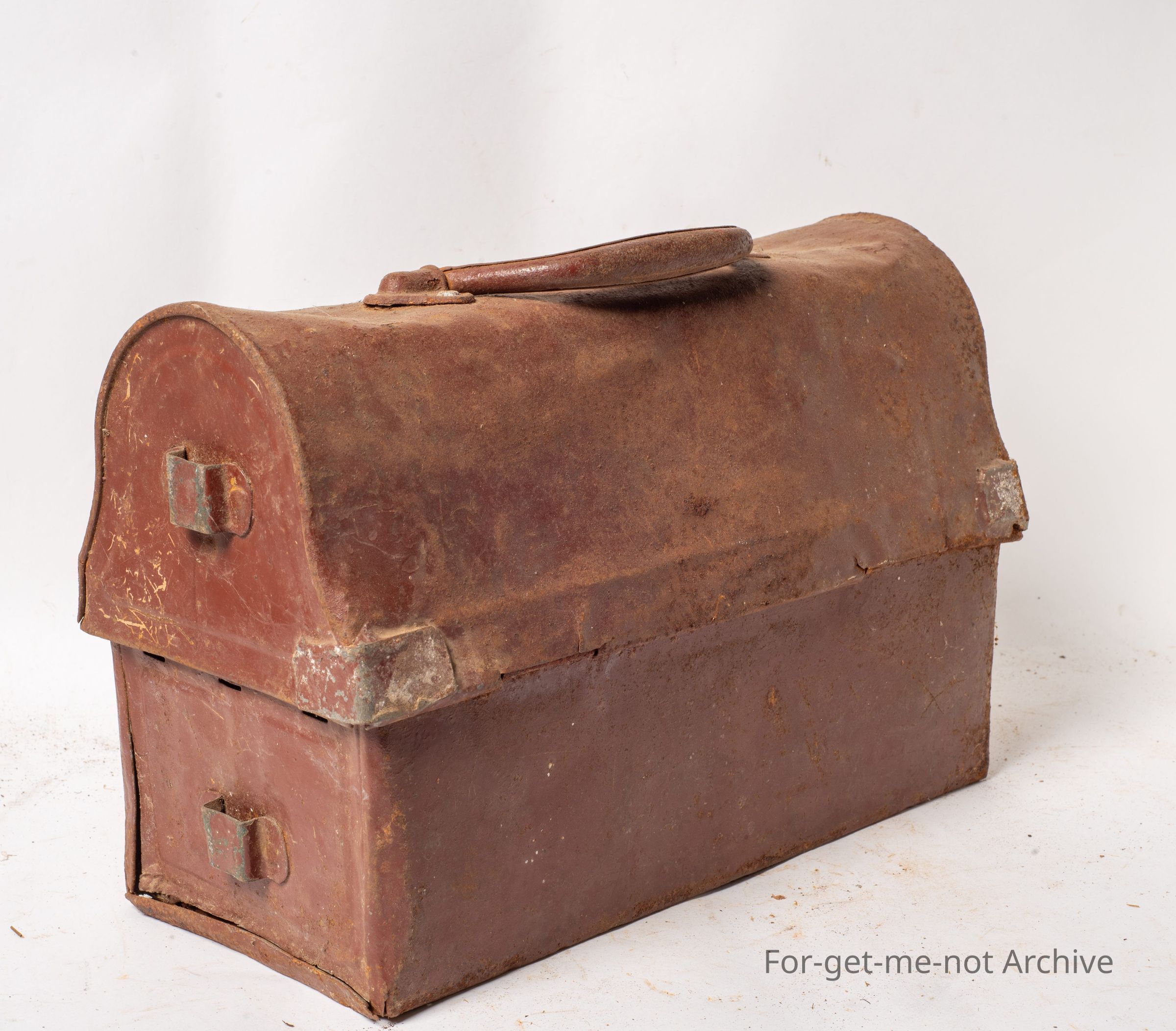 This is a bit of improvisation. This is a crib box, possibly from Brokenhill Hill or some other mining area. This one looks like it's homemade, but well done. Handle, catches, it's even got little attachments for putting a strap around it too.Collection