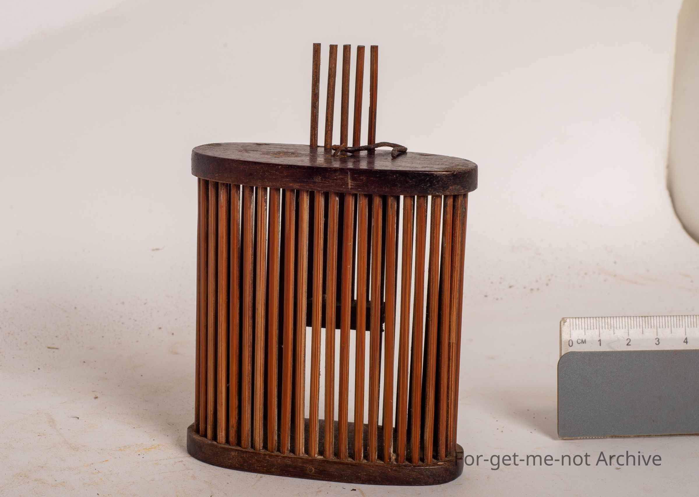 This is one of the small Asian wooden cricket cages, sliding, door to get the cricket in or out when it dies. Beautifully made.