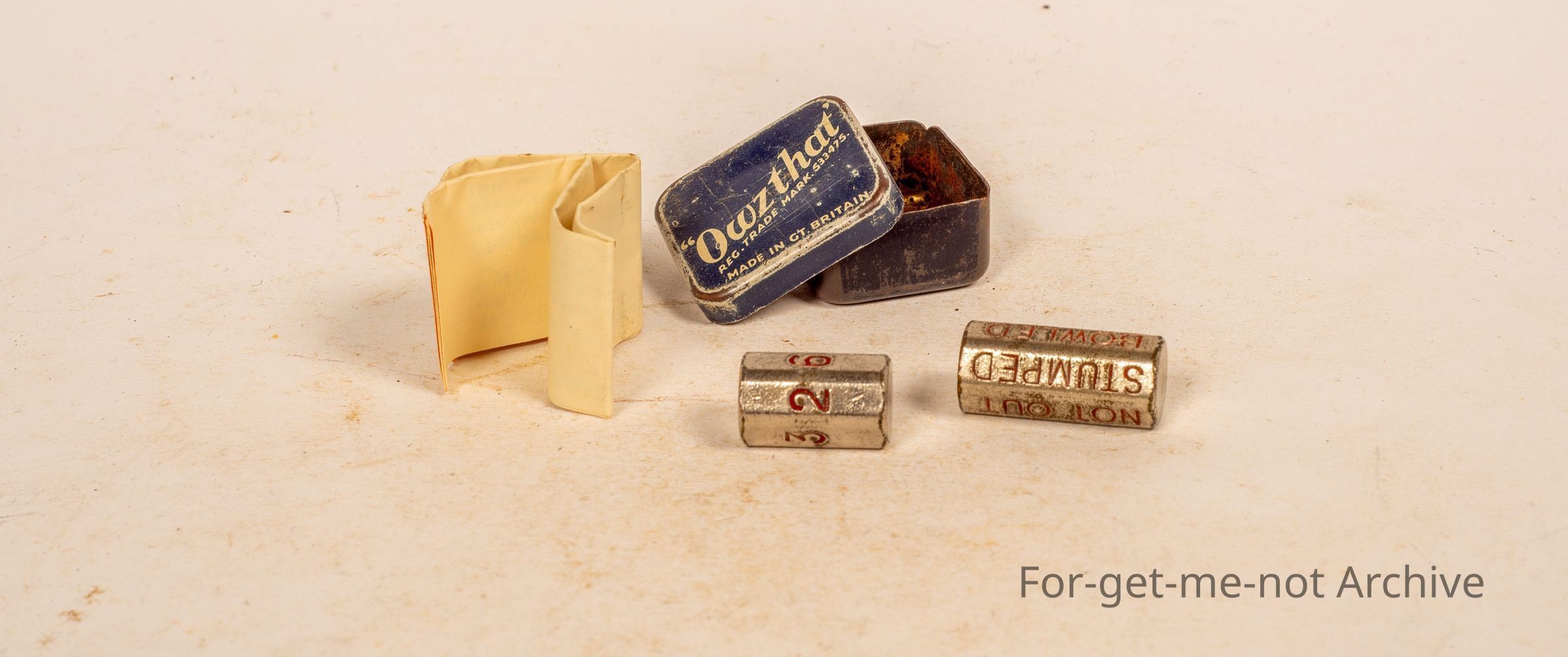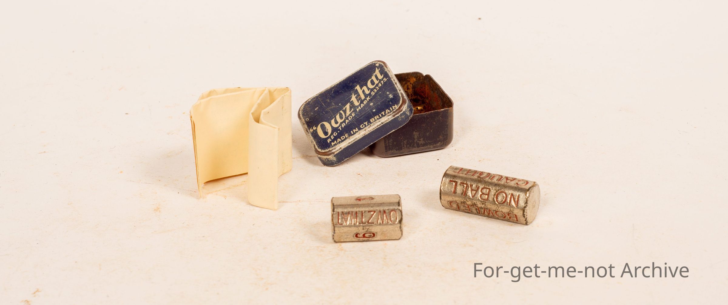 Cricket related, small tin for the cricket game, Owzthat , this was a game with a rolled dice that indicated your score or whether you went out, made in Great Britain with on the front. Complete with instructionsCollection