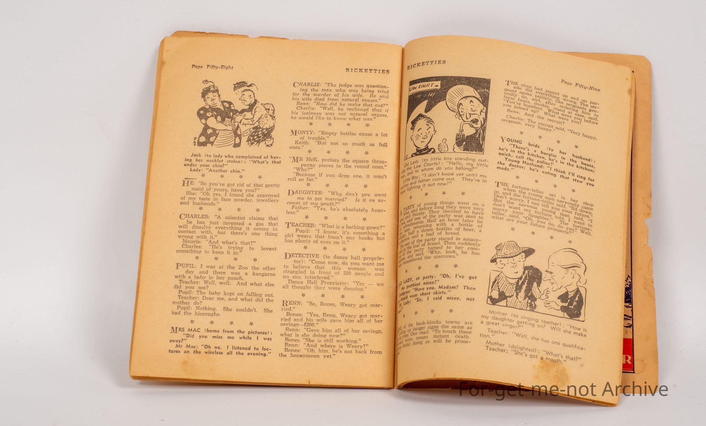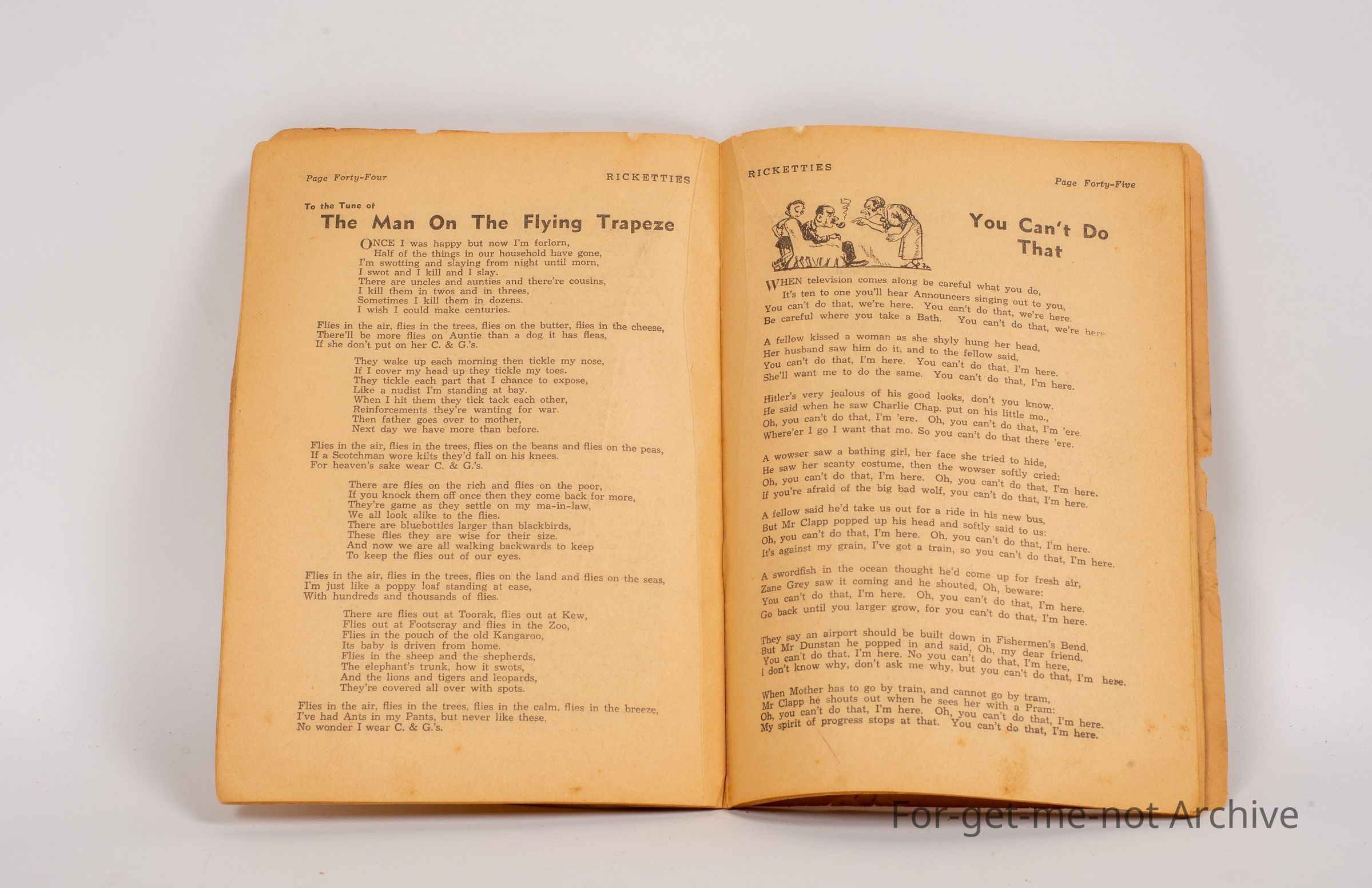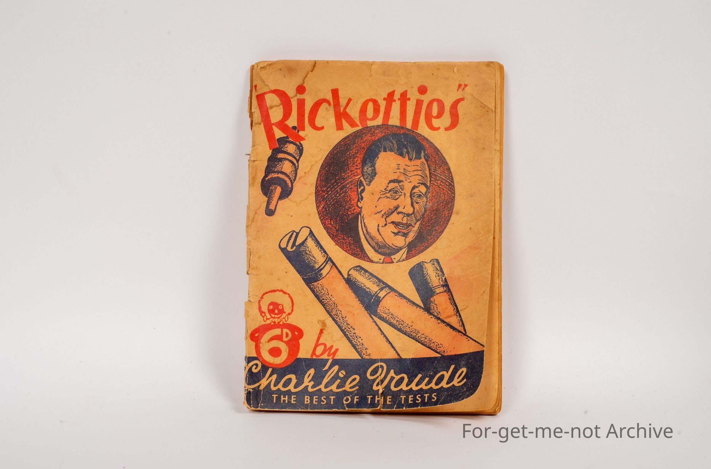 A booklet called Ricketties, by Charlie Vaud, the best of the test. This is obviously, a cricket commentators booklet. The price on it is 6p.