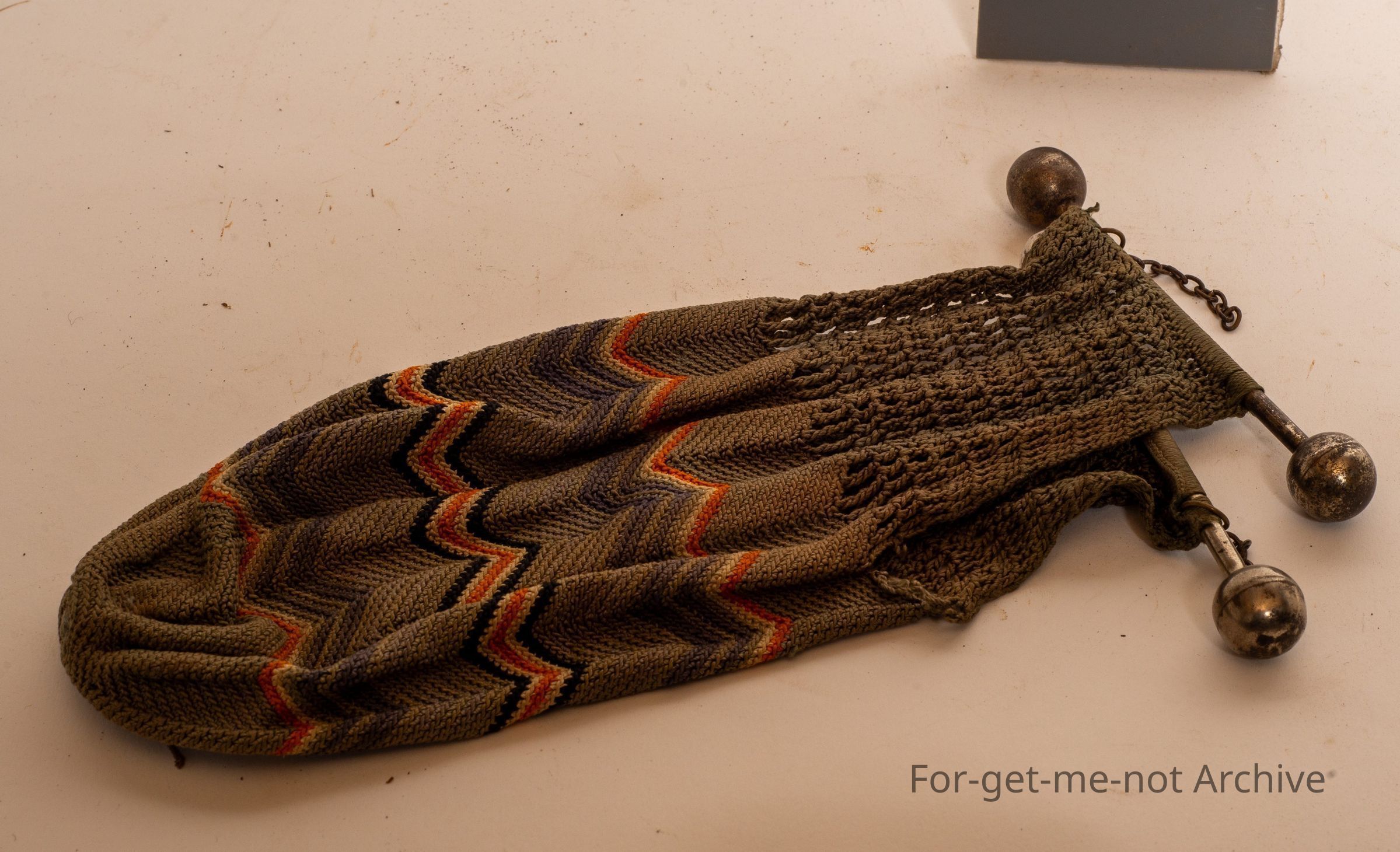 This is another beautifully crocheted, Victorian era bag with 2, metal handles which are held by chain. These two these pieces are, real craft pieces.