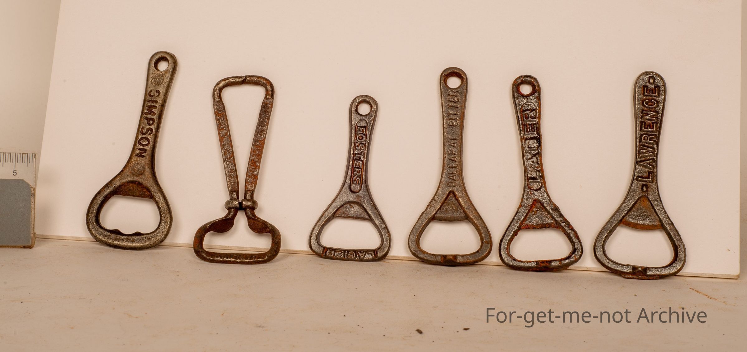 Cast iron, all advertising different drinks or breweries, all in reasonable condition.