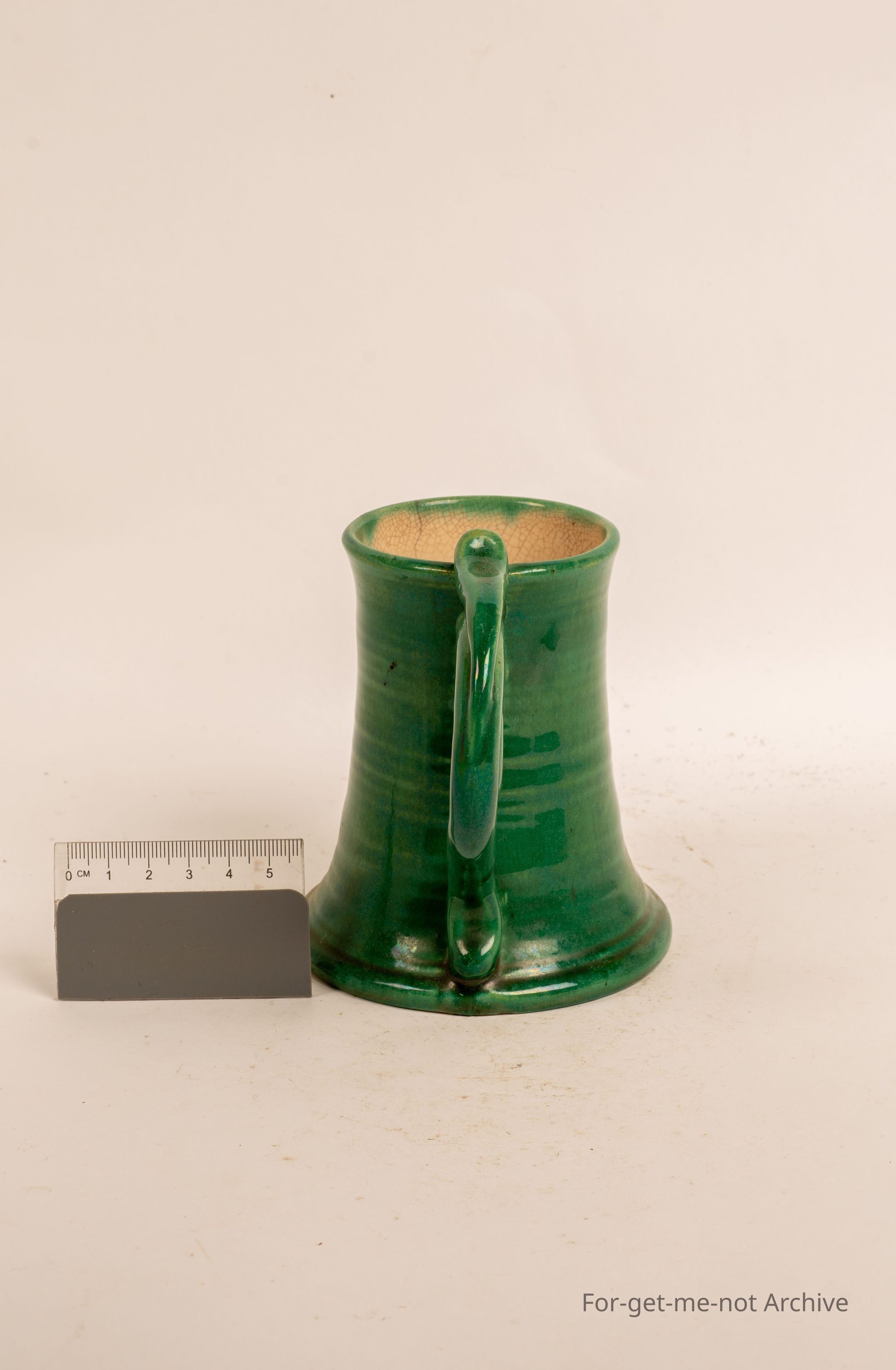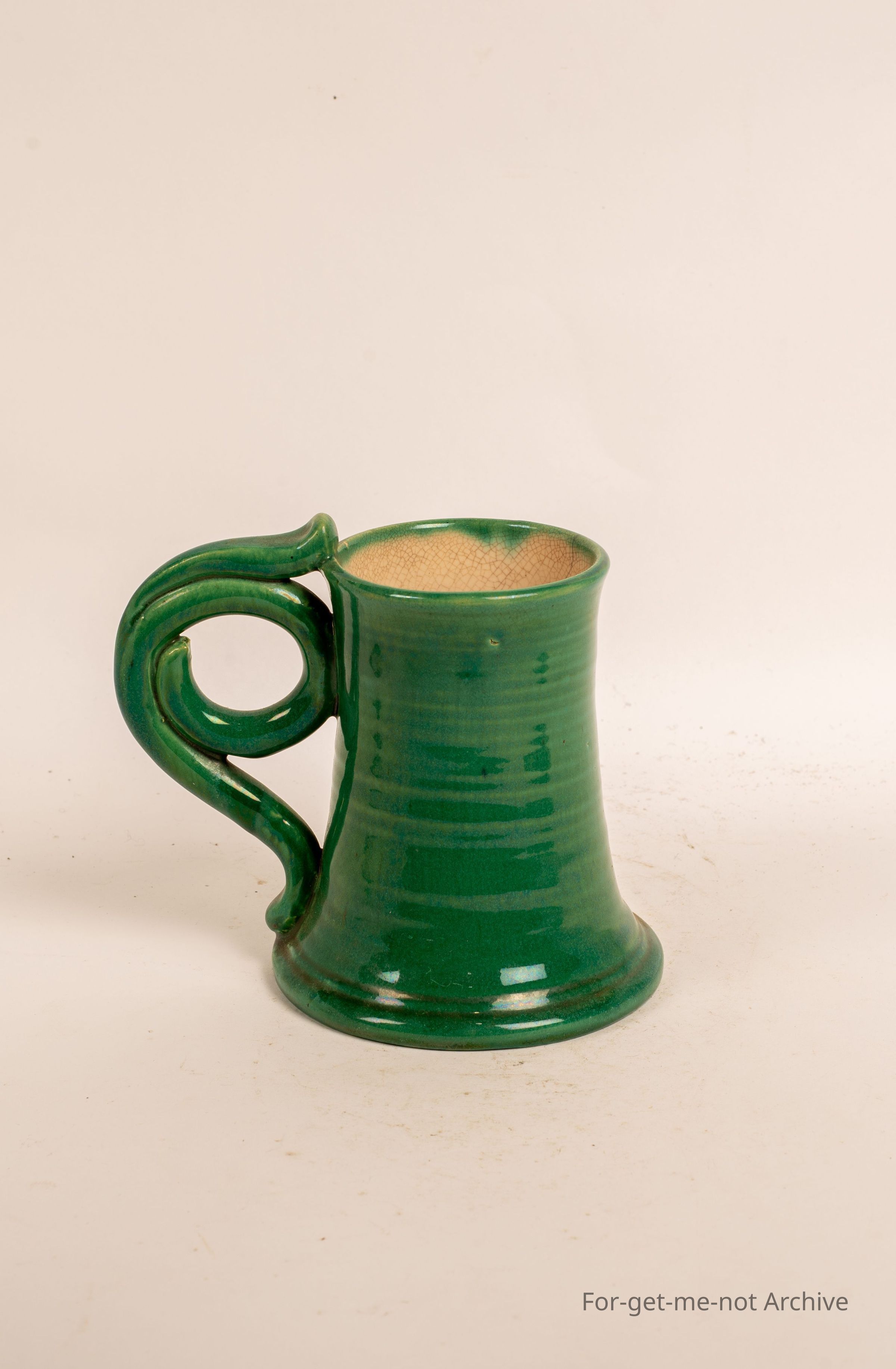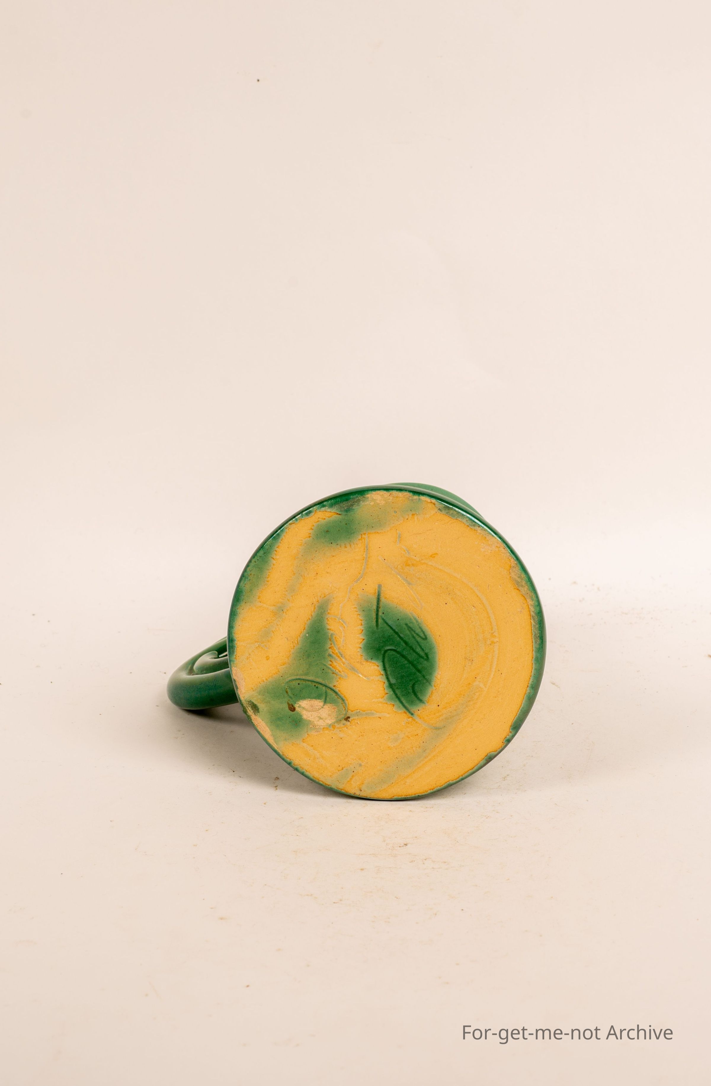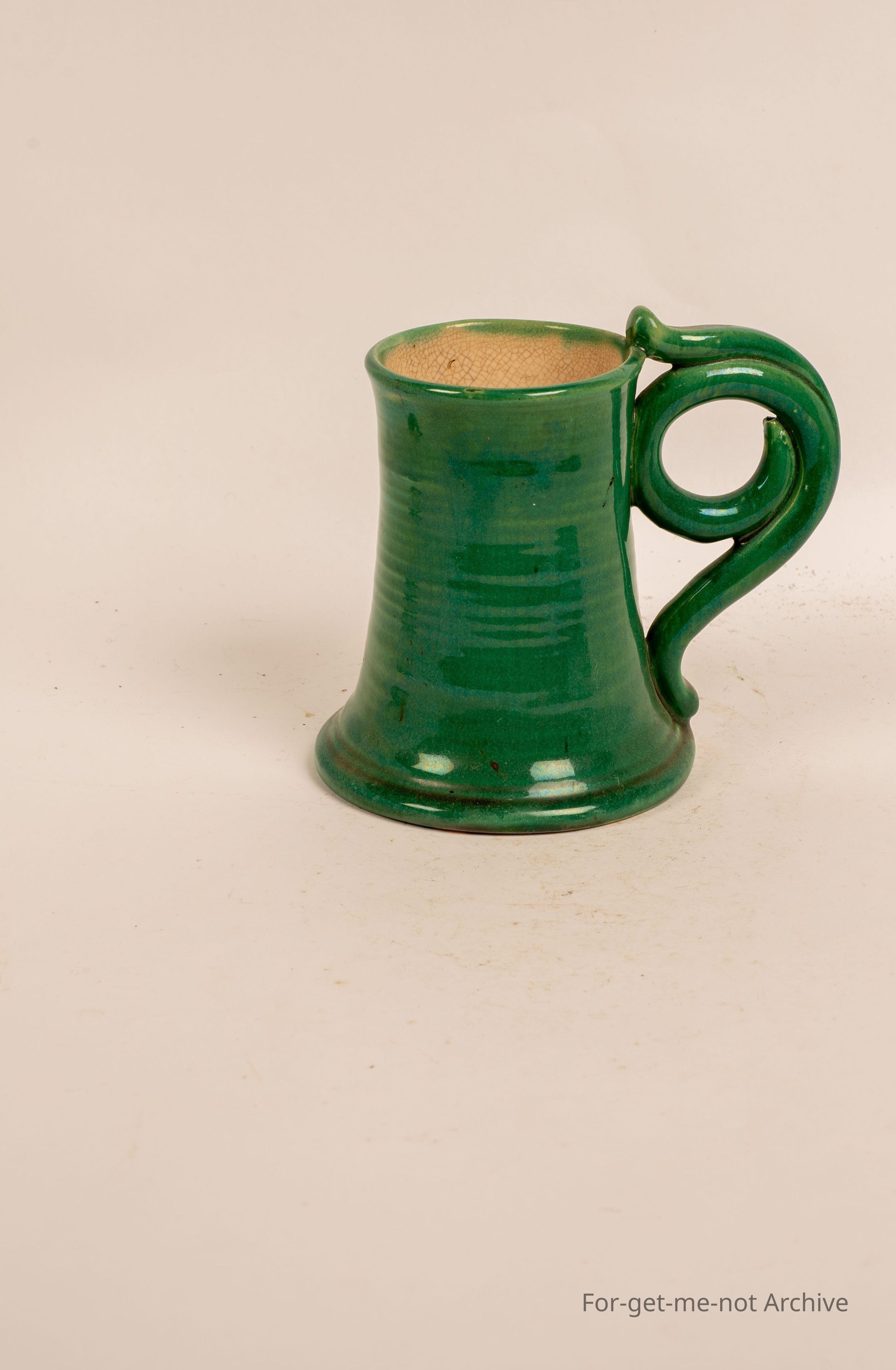 Classical Dyson Studio Cup with ornate handle, green glaze