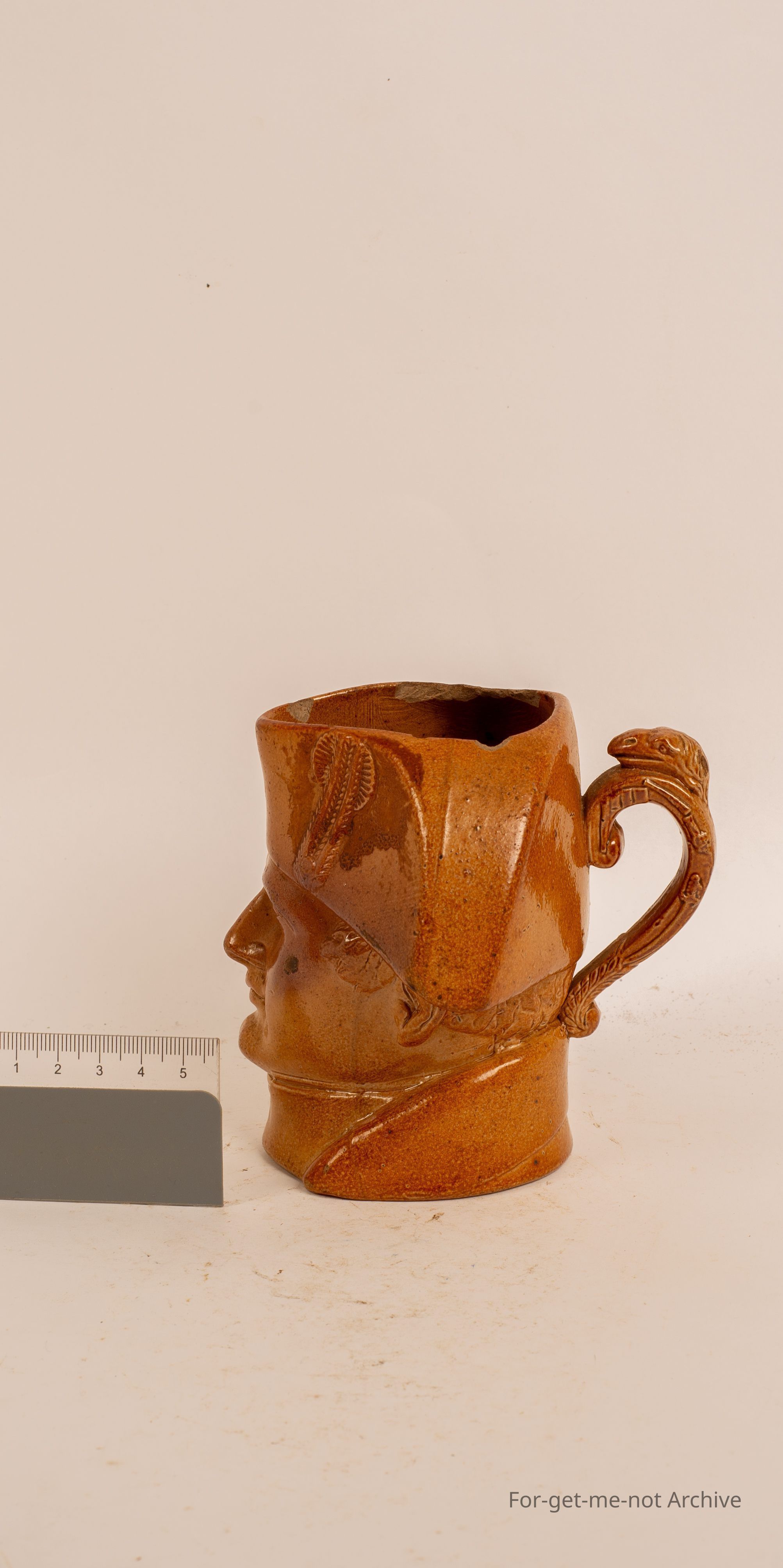 Cup in, depicting Napoleon with Mariners hat, dated 18 fifties, probably English made.