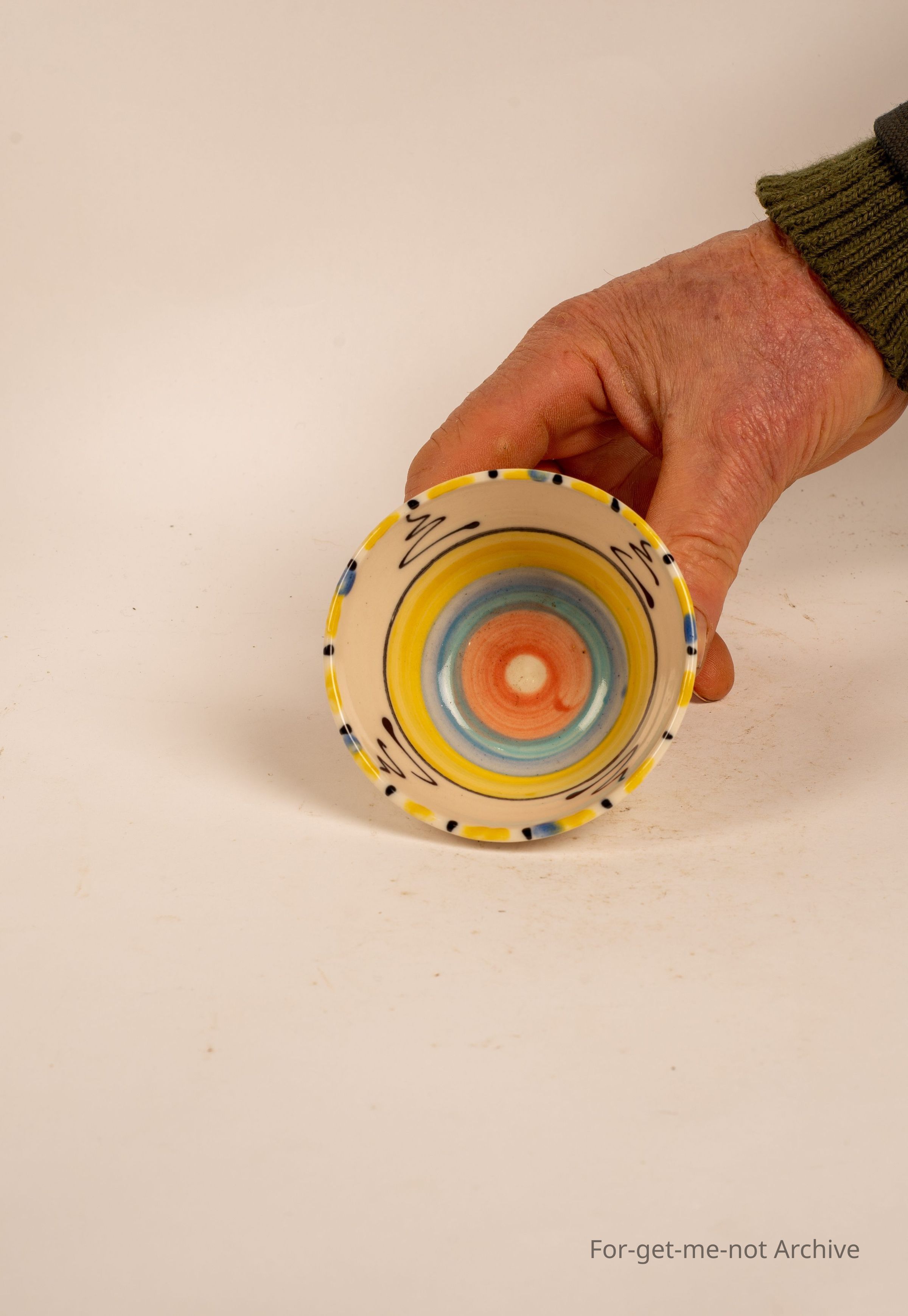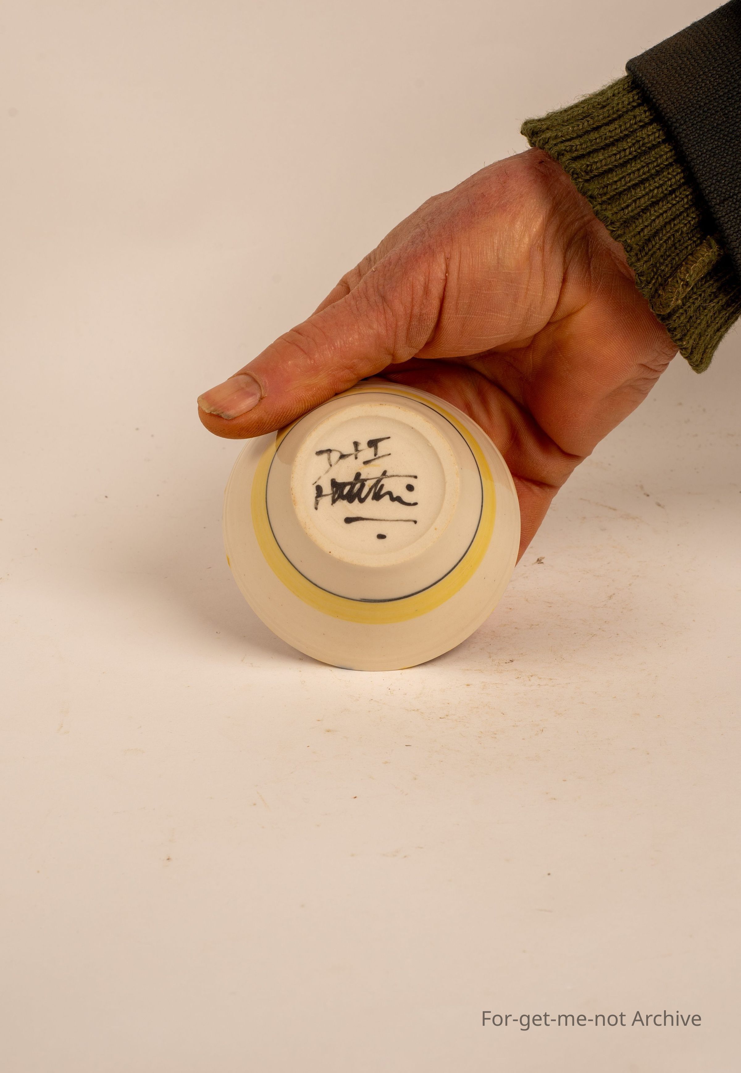 Small cup, ink stamped, " D and I Halpin". A very artistic design
