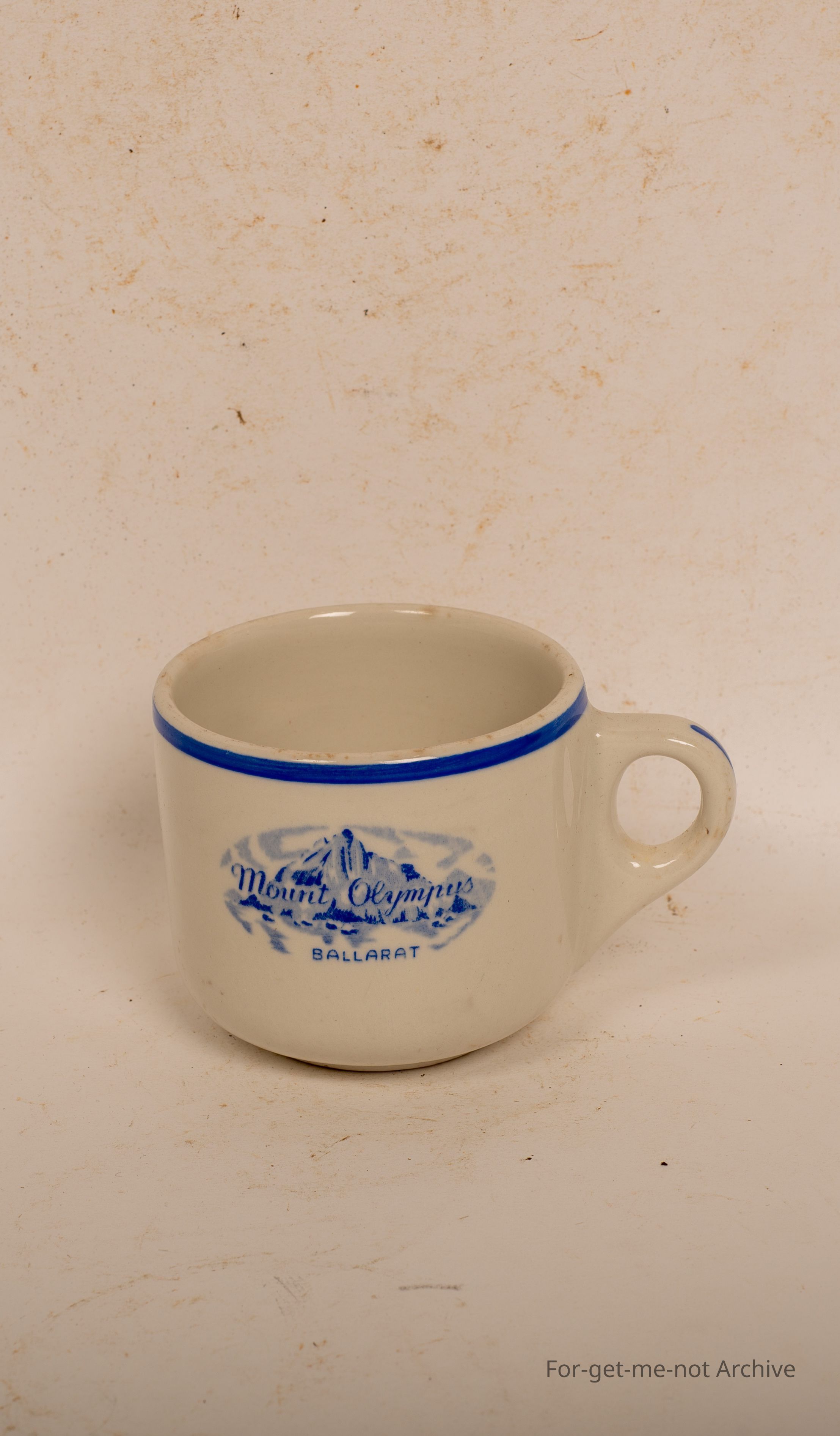 Ceramic cup, from Mount Olympus Tea House Ballarat. Made in England for a Ballarat Cafe.