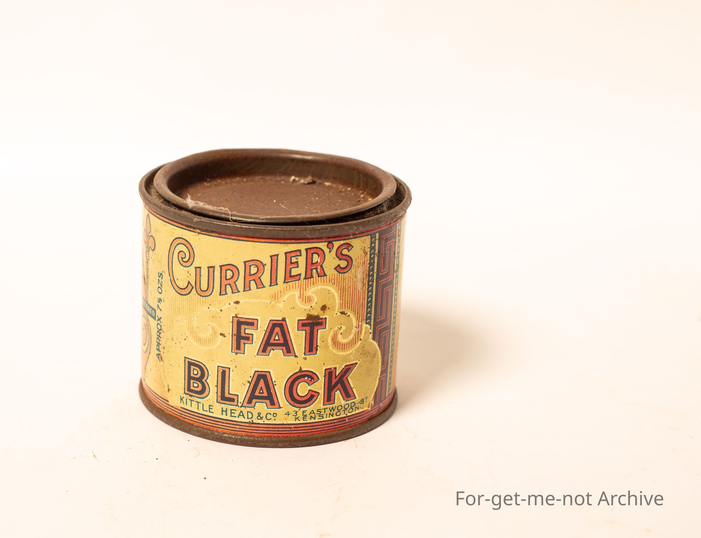 Grafnax brand, Currier's fat black beautiful tin, 7.5 oz, made by Kittle head and Co. Kensington
