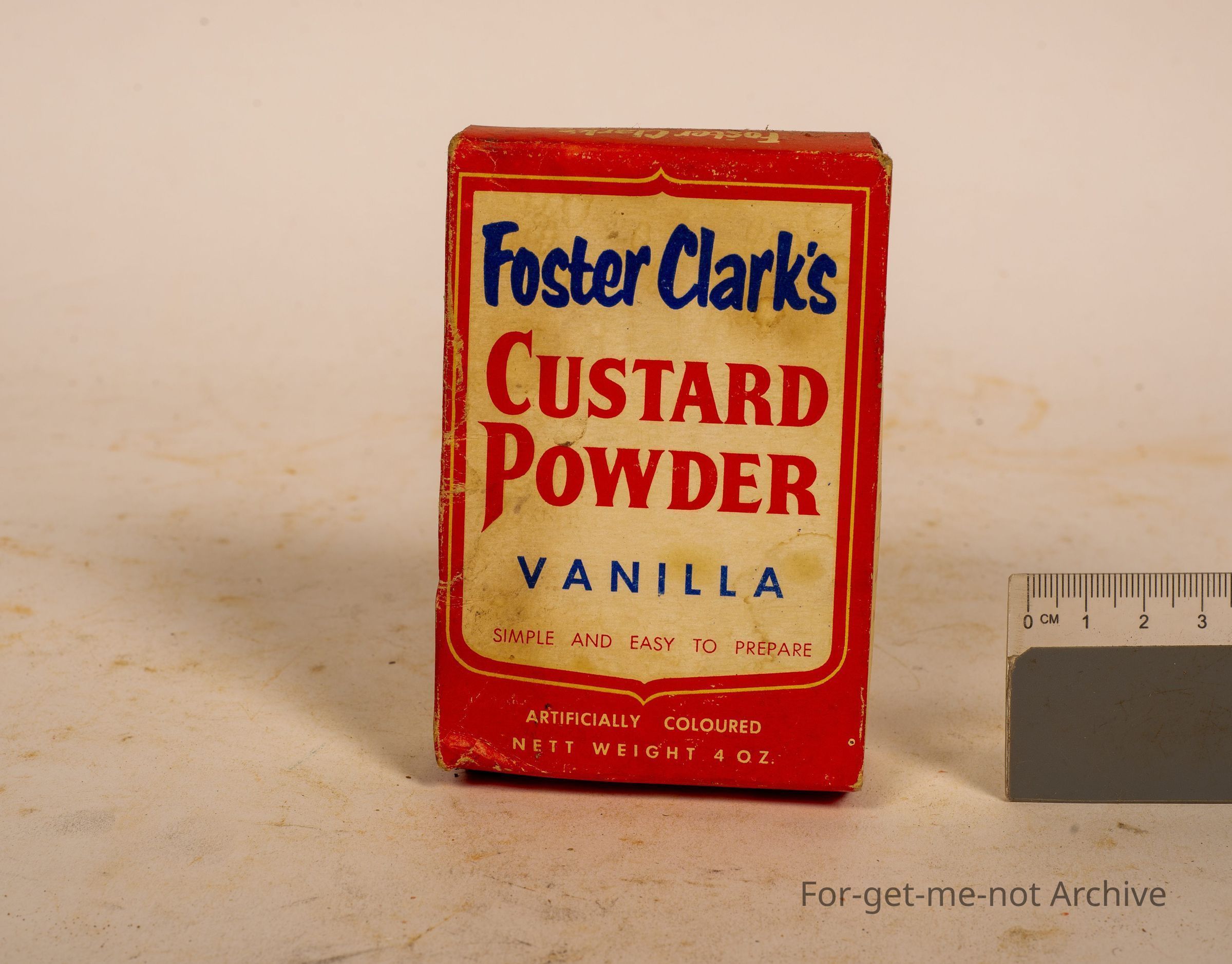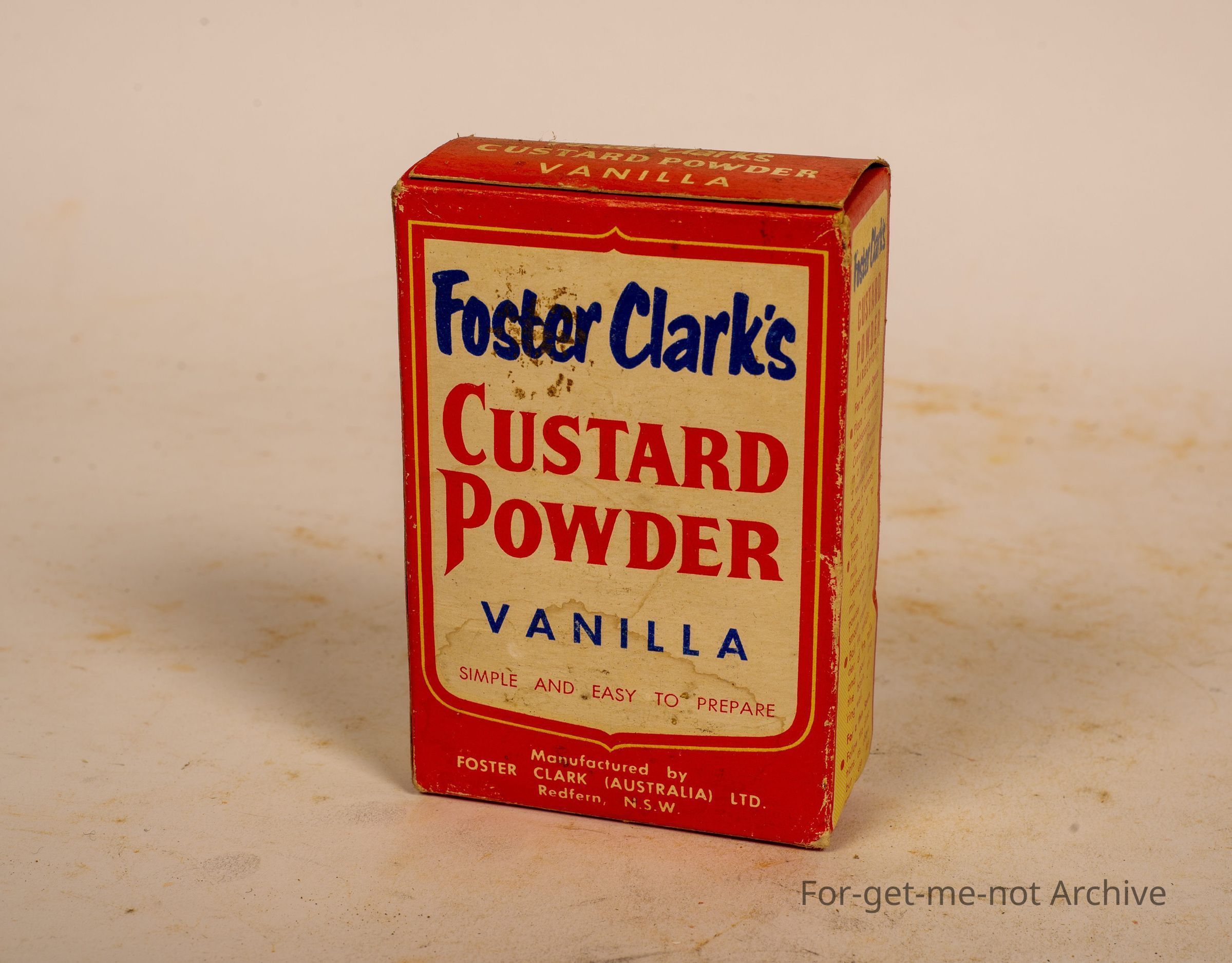 Is another cardboard box of Foster Clark's Custard Powder Vanilla, packed at Redfern, New South Wales. A 4 ounce box, they've got a bit of age on it.