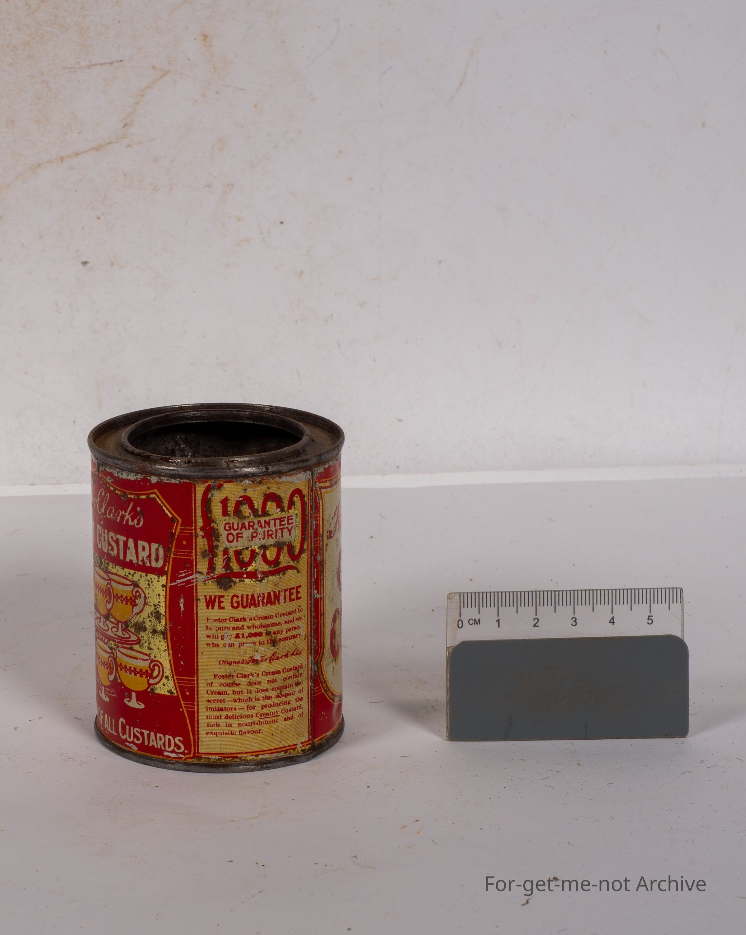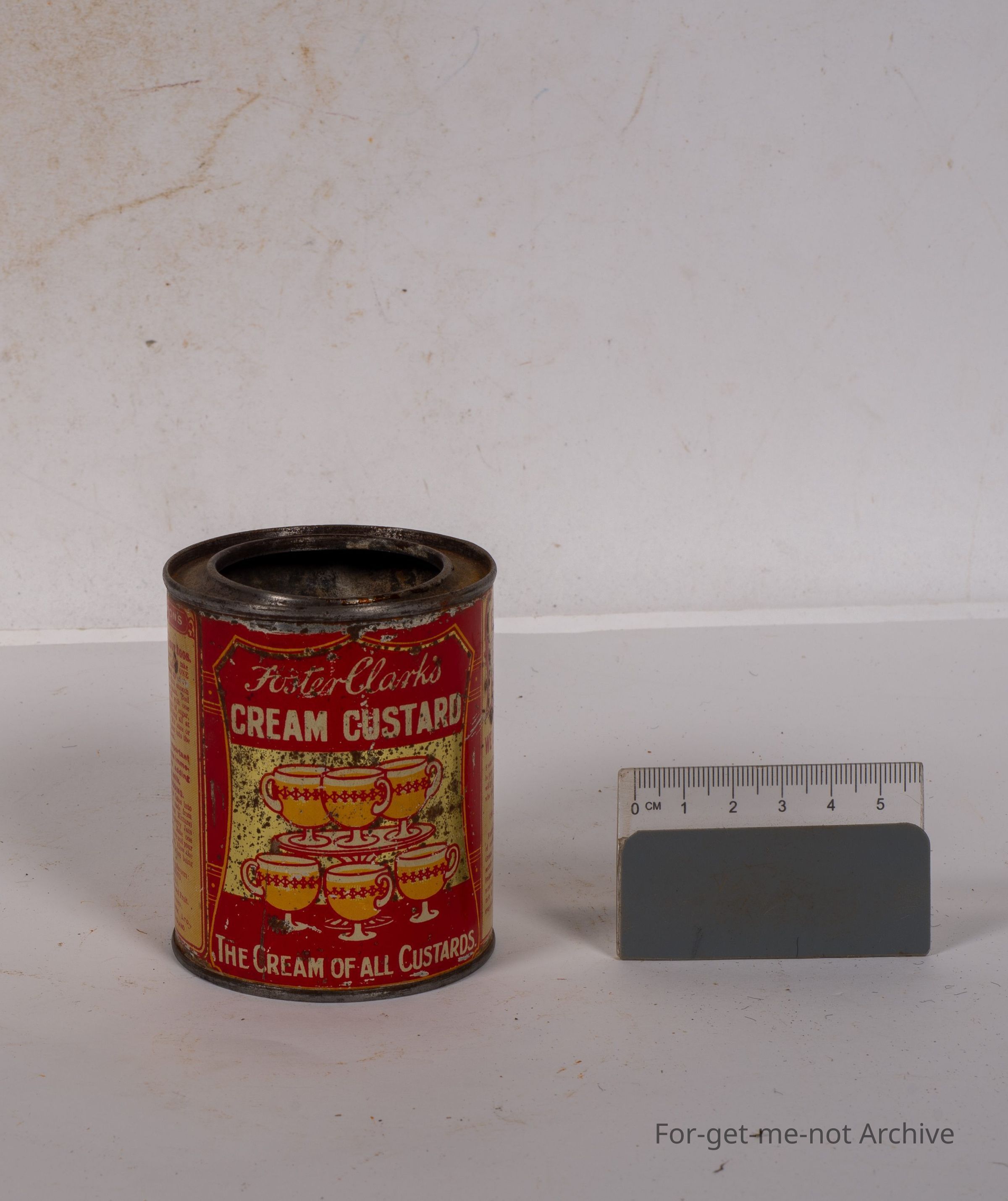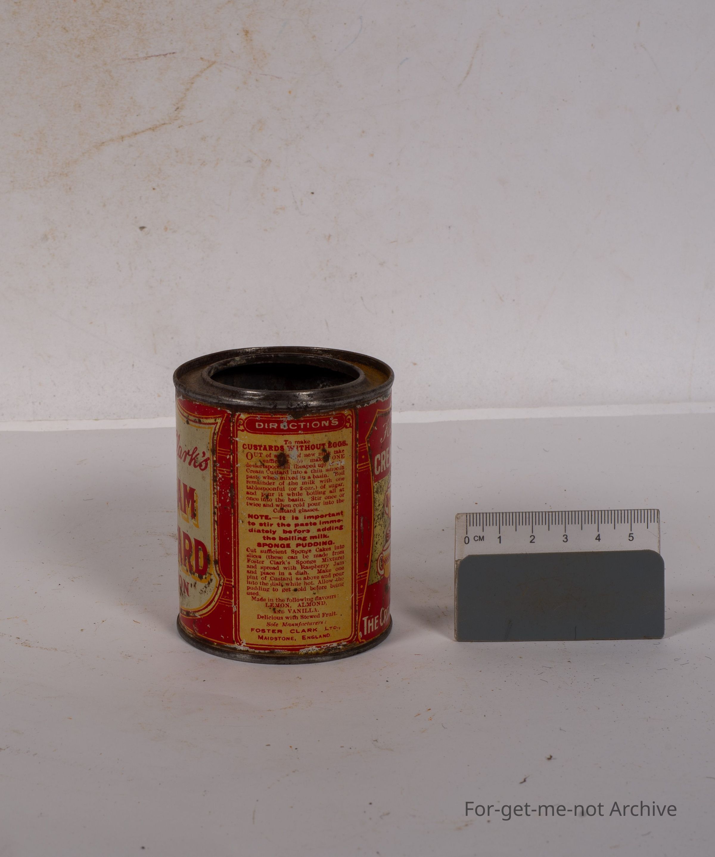 This is a small tin from Foster Clark cream custard, the cream of all custards. The flavour is lemon. Plenty of instructions. Foster Clark is from Maidstone England. In pretty good order, minus the lid,Collection