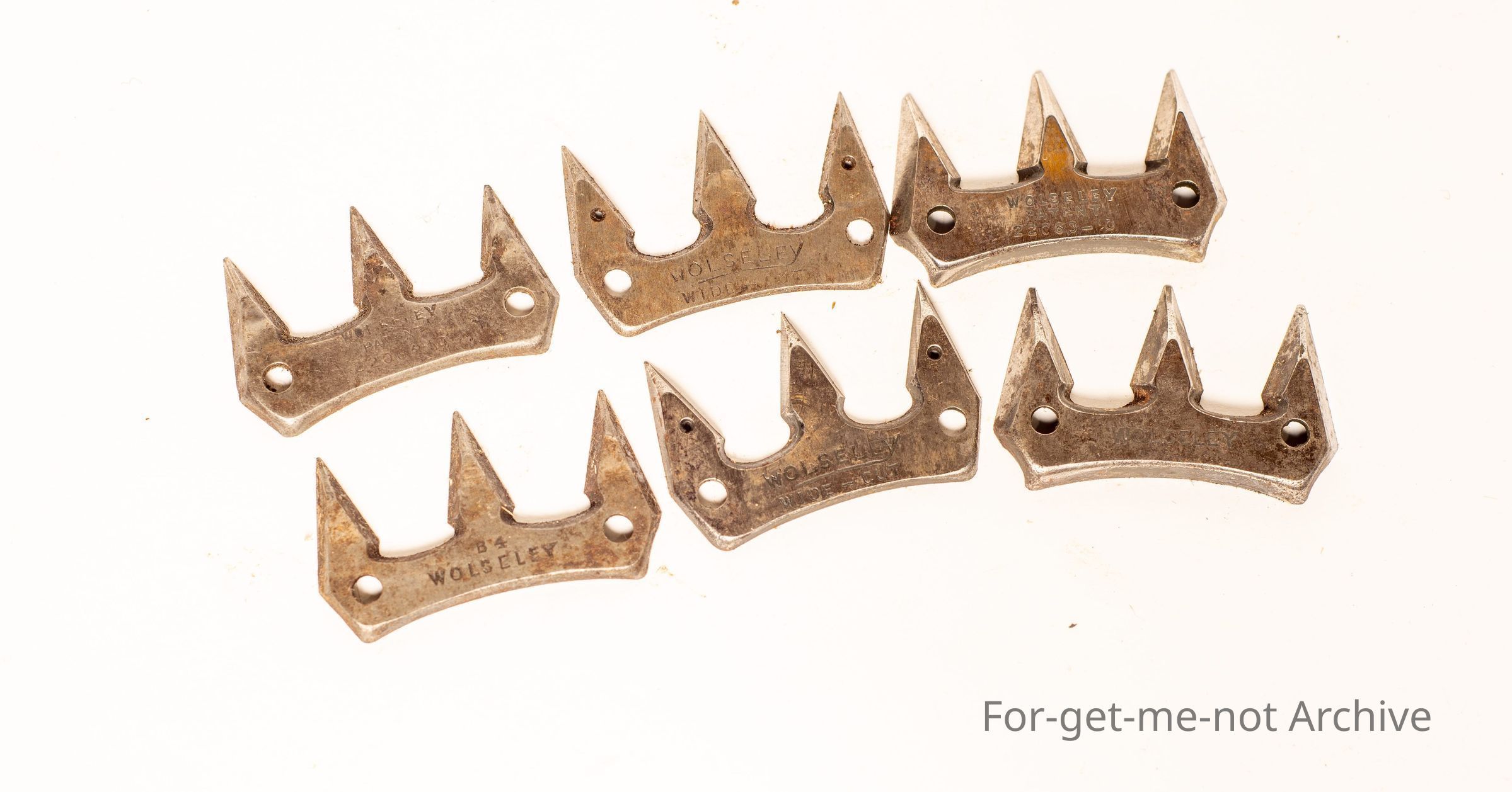A group of 6. Wolseley Narrow Shearing Cutters, all different names and in various states of wear, 6, 5