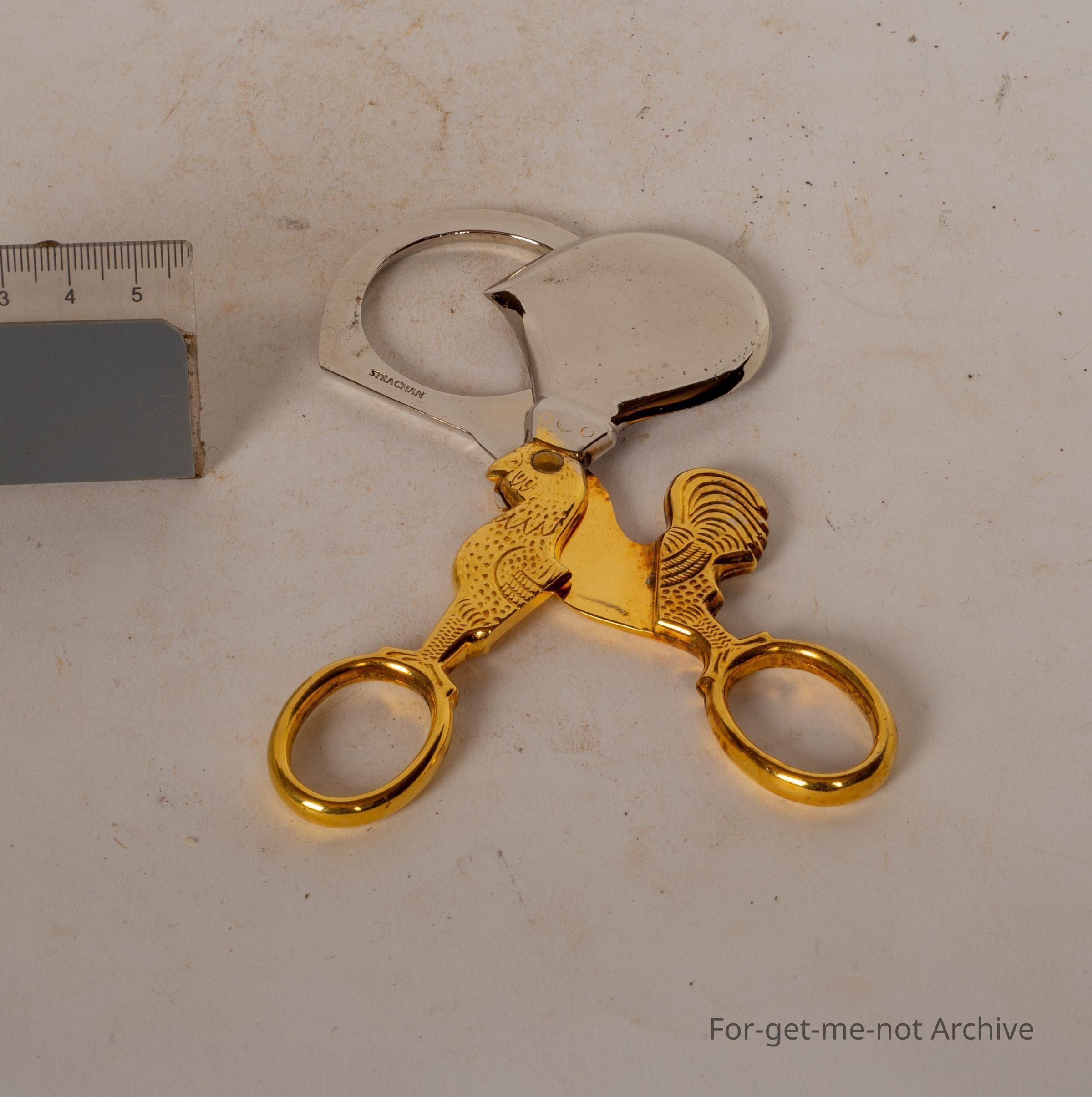 This is a bit of kitchen area, in beautiful water, in the shape of a rooster. When you open the 2 prongs, it is in fact the cutter for cutting the top off a boiled egg. Stamped strong, quite a quite a beautifully made teamCollection
