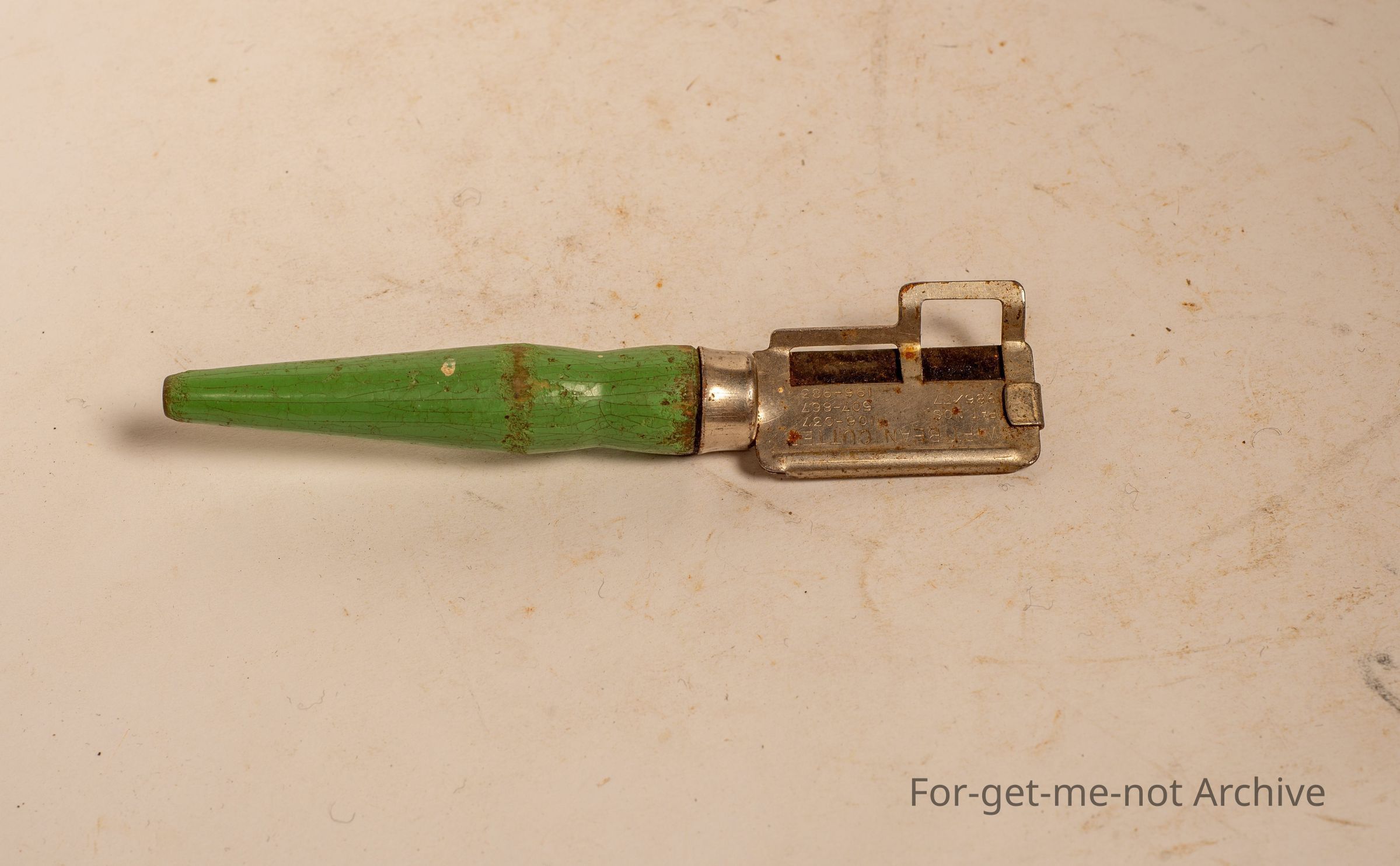 Little wooden handle bean cutter bean peeler called Swift Bean Cutter.