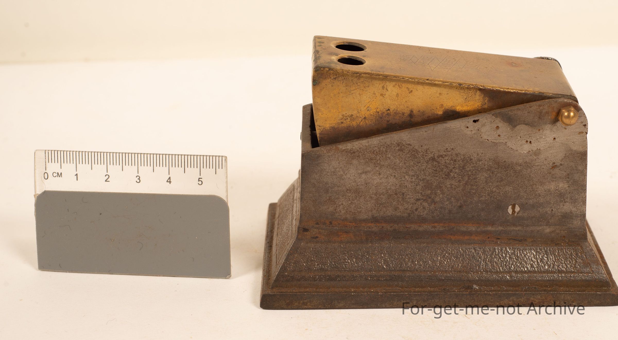 A cast iron and brass, cigar cutter for cutting the end off for army raisin, stamped in the top. This is probably quite an early old piece
