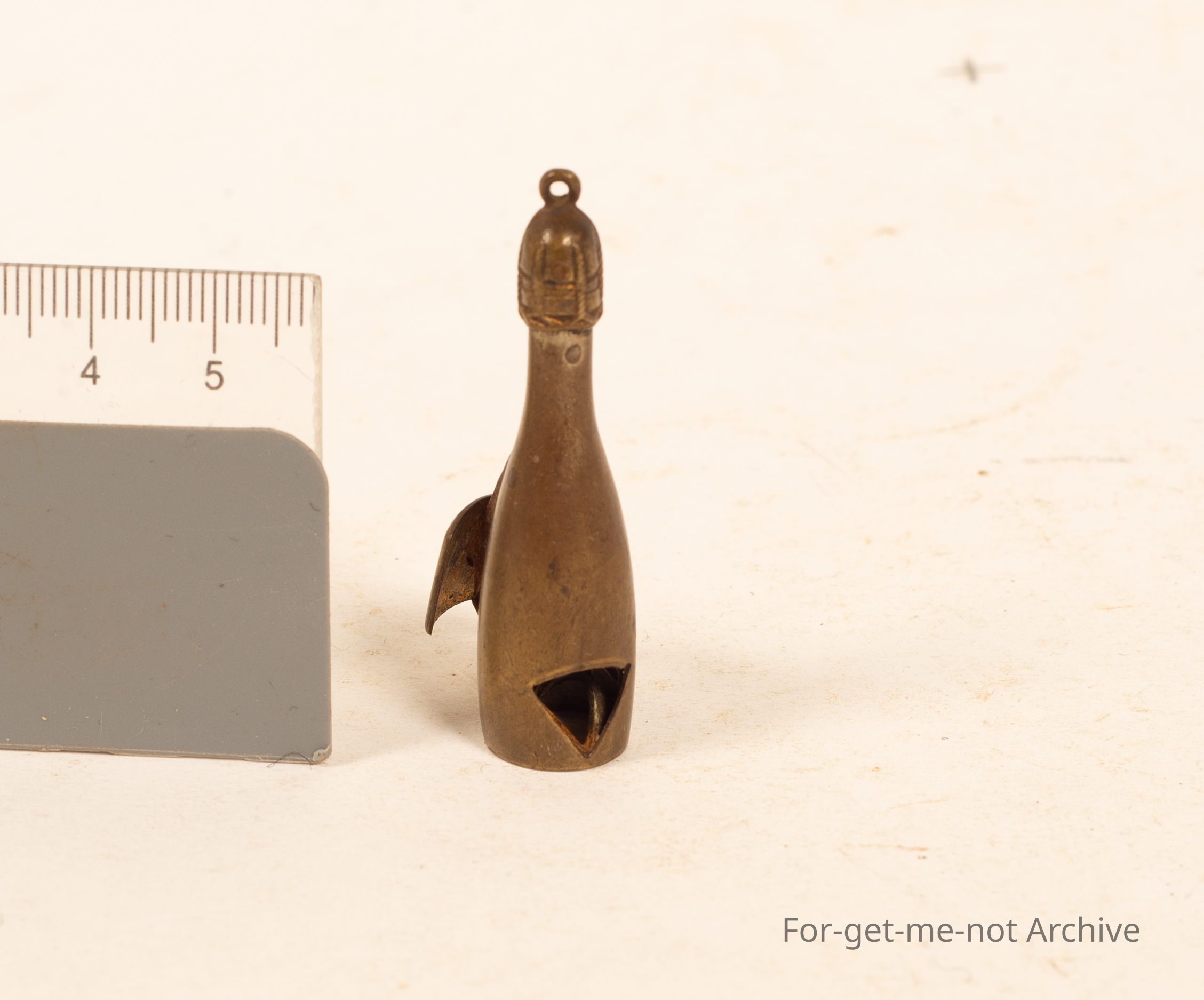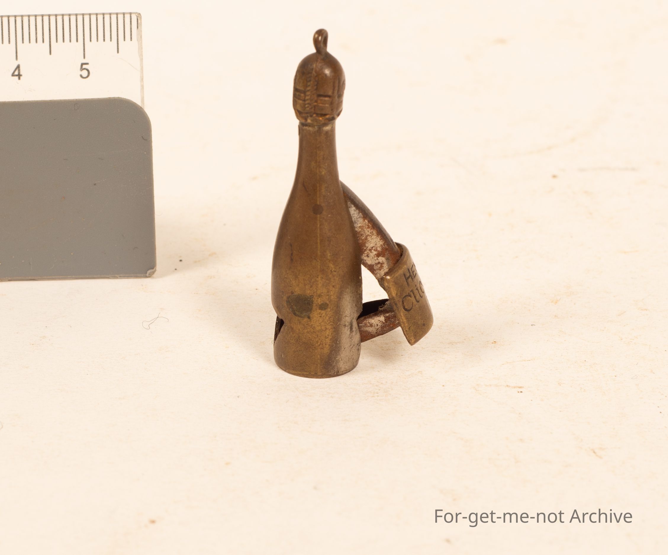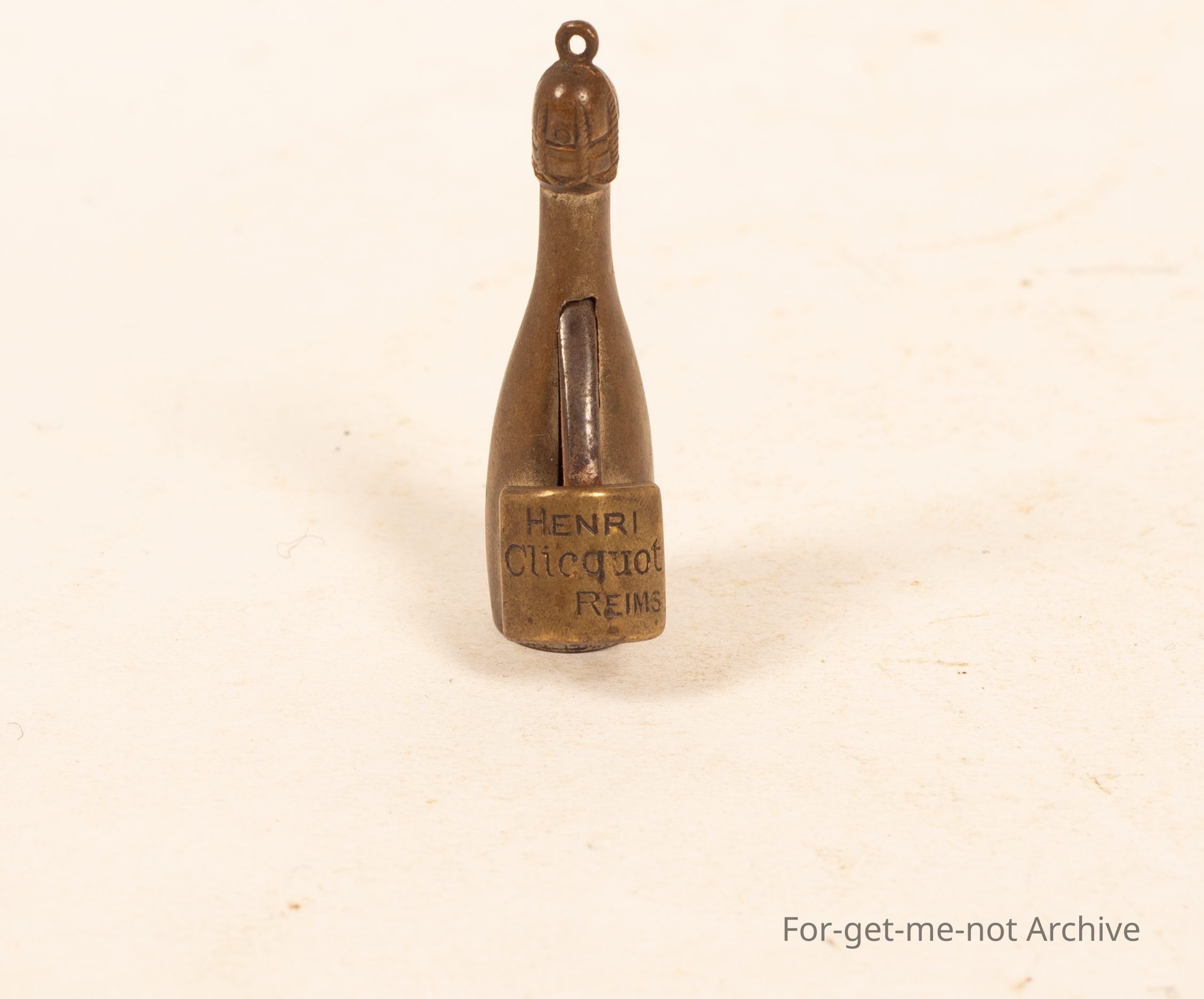 A small, advertising cigar cutter Branded "Henryi Clicquot reims" in the shape of a champagne bottle