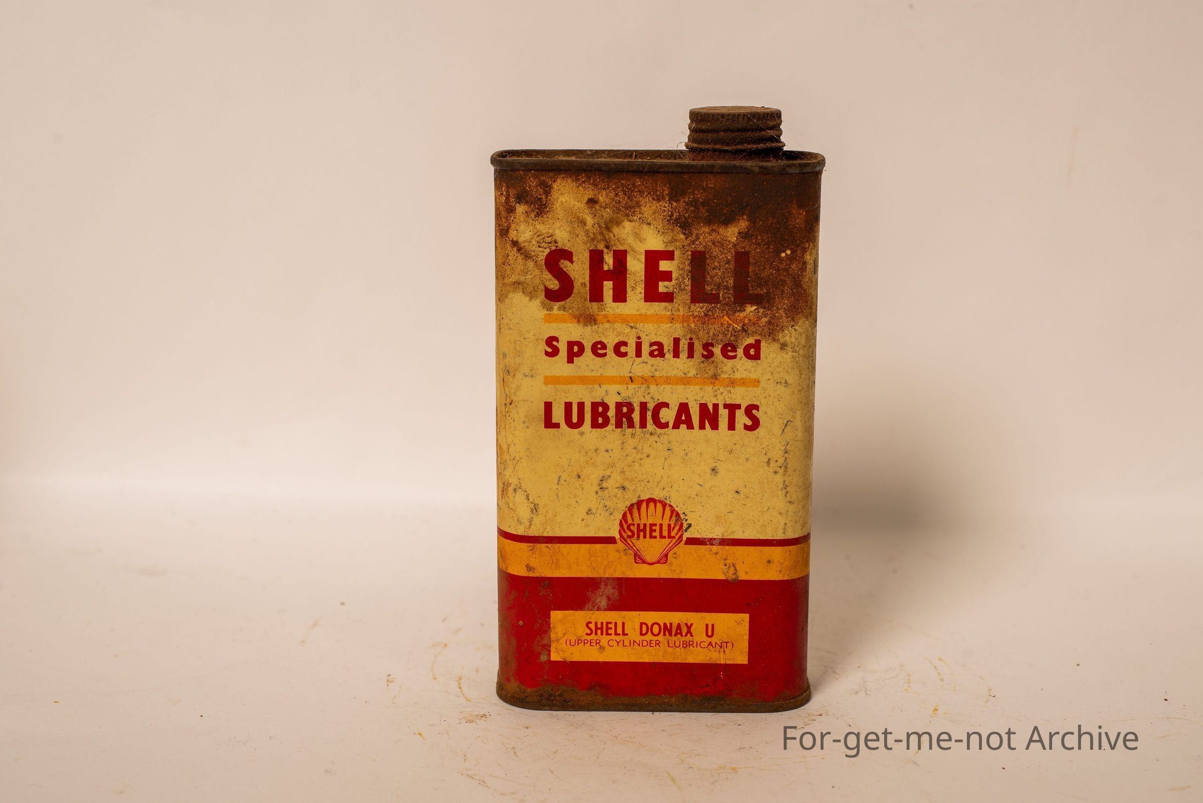 Shell Specialized Lubricants Tin, upper cylinder lubricant. This tin is in, just ordinary condition. Shell Donax U