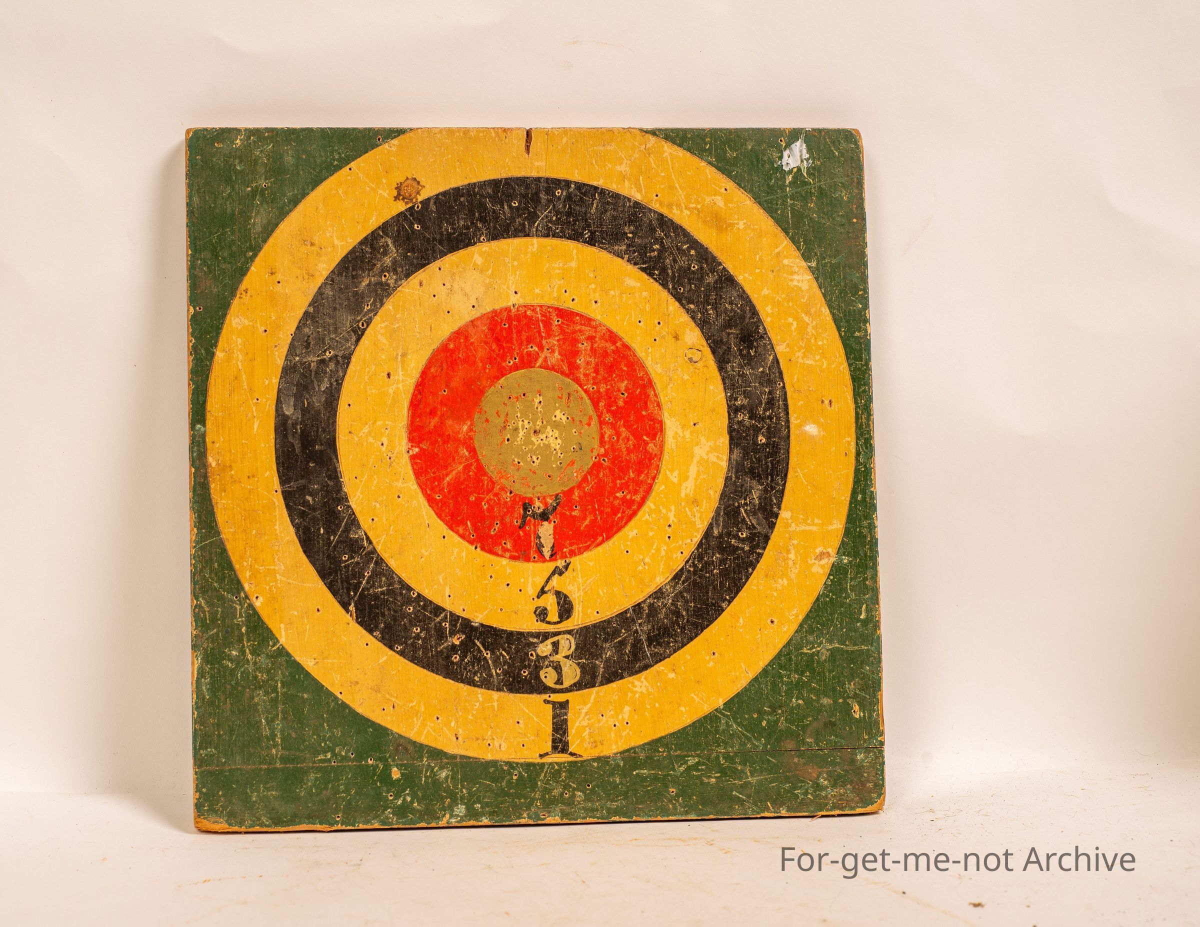 Wooden, like a dartboard. I'd say that's what it is,