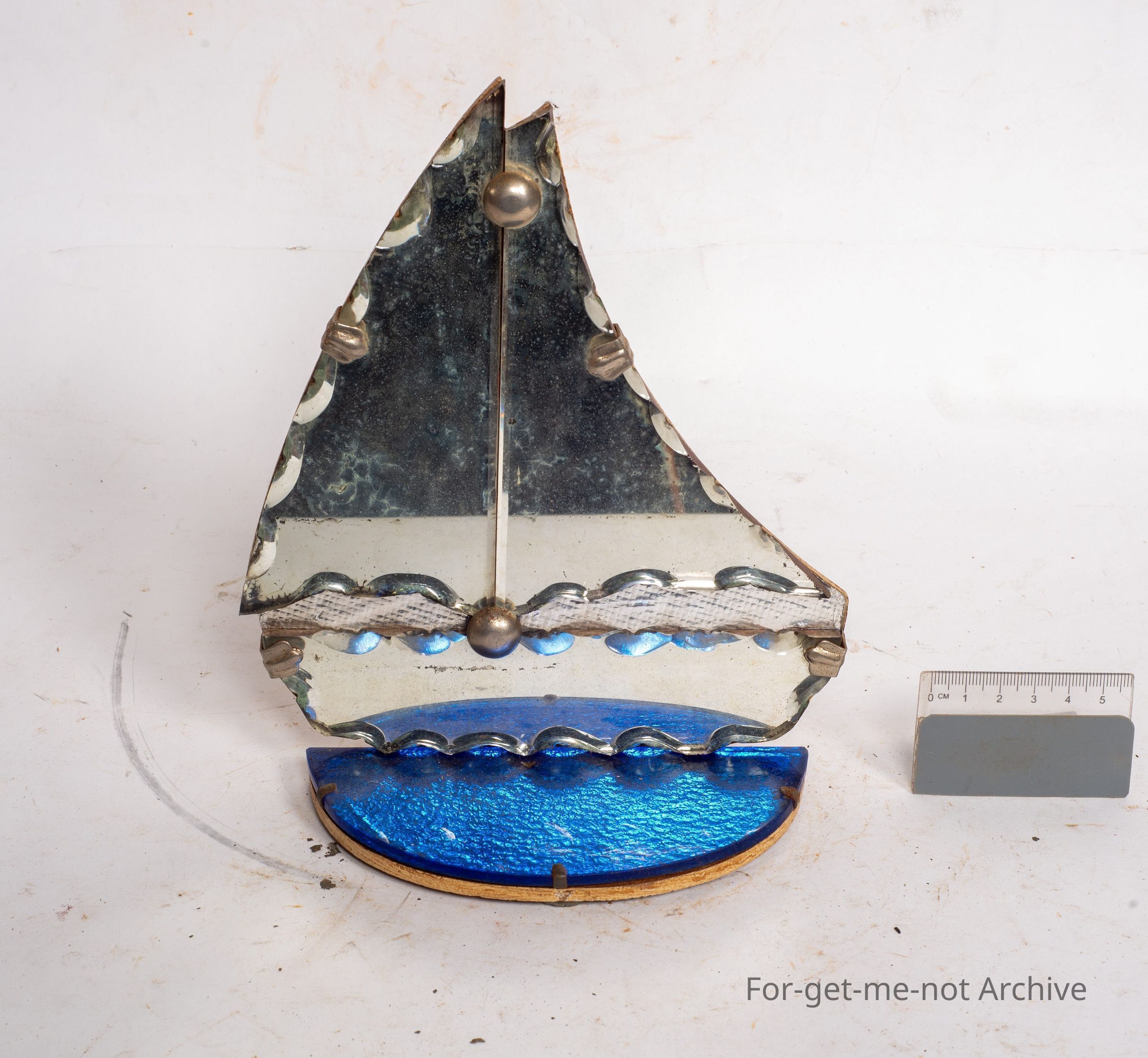 This is a, one of the pieces has a decorative mirror cut into the shape of a yacht, with a beautiful glass blue base. A very attractive little piece. Well, weren't they made by some guy in Adelaide and they're quite a popular decor piece of its time. They're made in Adelaide. There was a story done recent.Collection