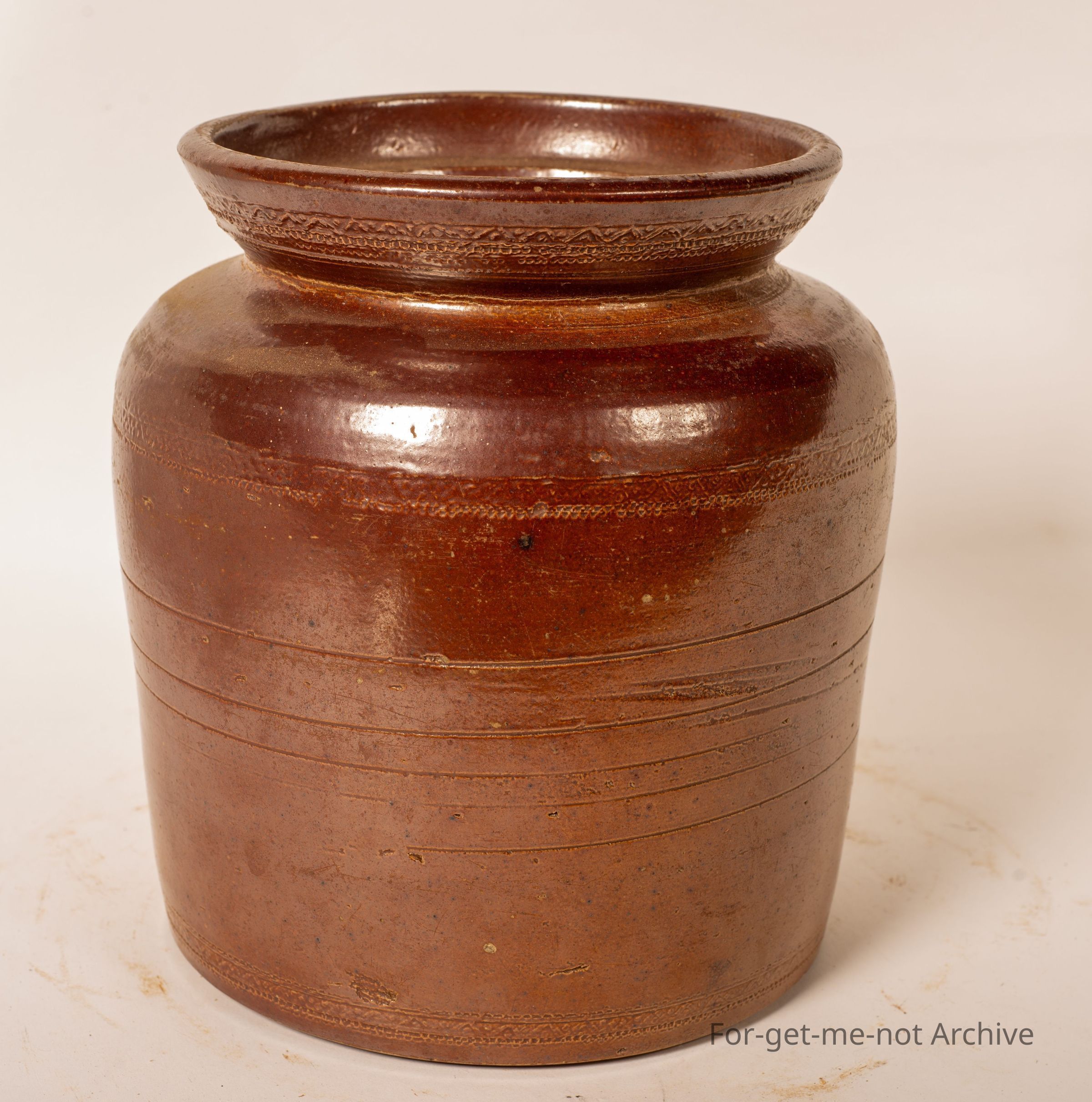 This is a storage jar with a high neck collar. The very distinctive glaze, of Delk, Pottery and Filter Works, Nunawading, Melbourne. No stamping. It has quite distinctive collar work. Lovely storage, no lidCollection