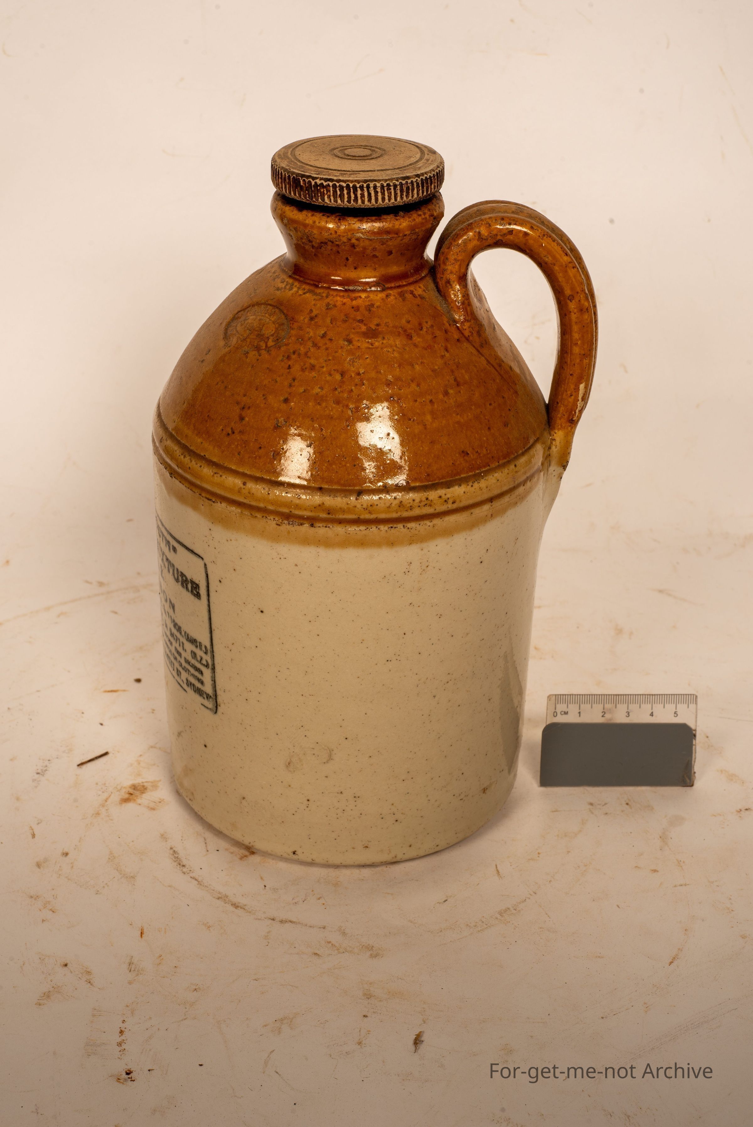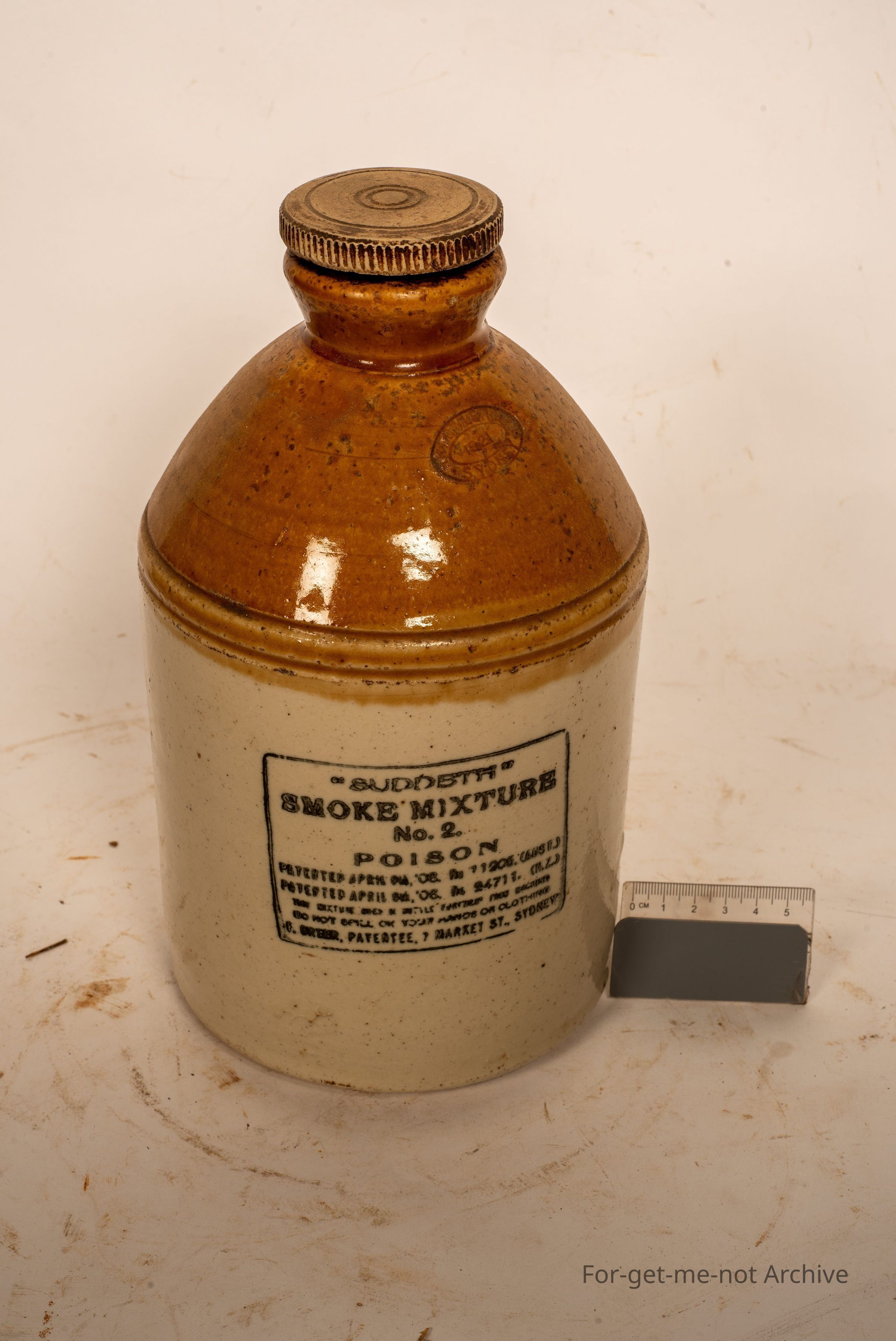 This is another small Demi John. Complete handle. Stopper. No chips. No cracks. This is the small size of the Suddath Smoke Mixture 2 Poison, ink stamped with all that information. This smaller one is a lot harder to find than the larger one. Most of them, minus their handleCollection